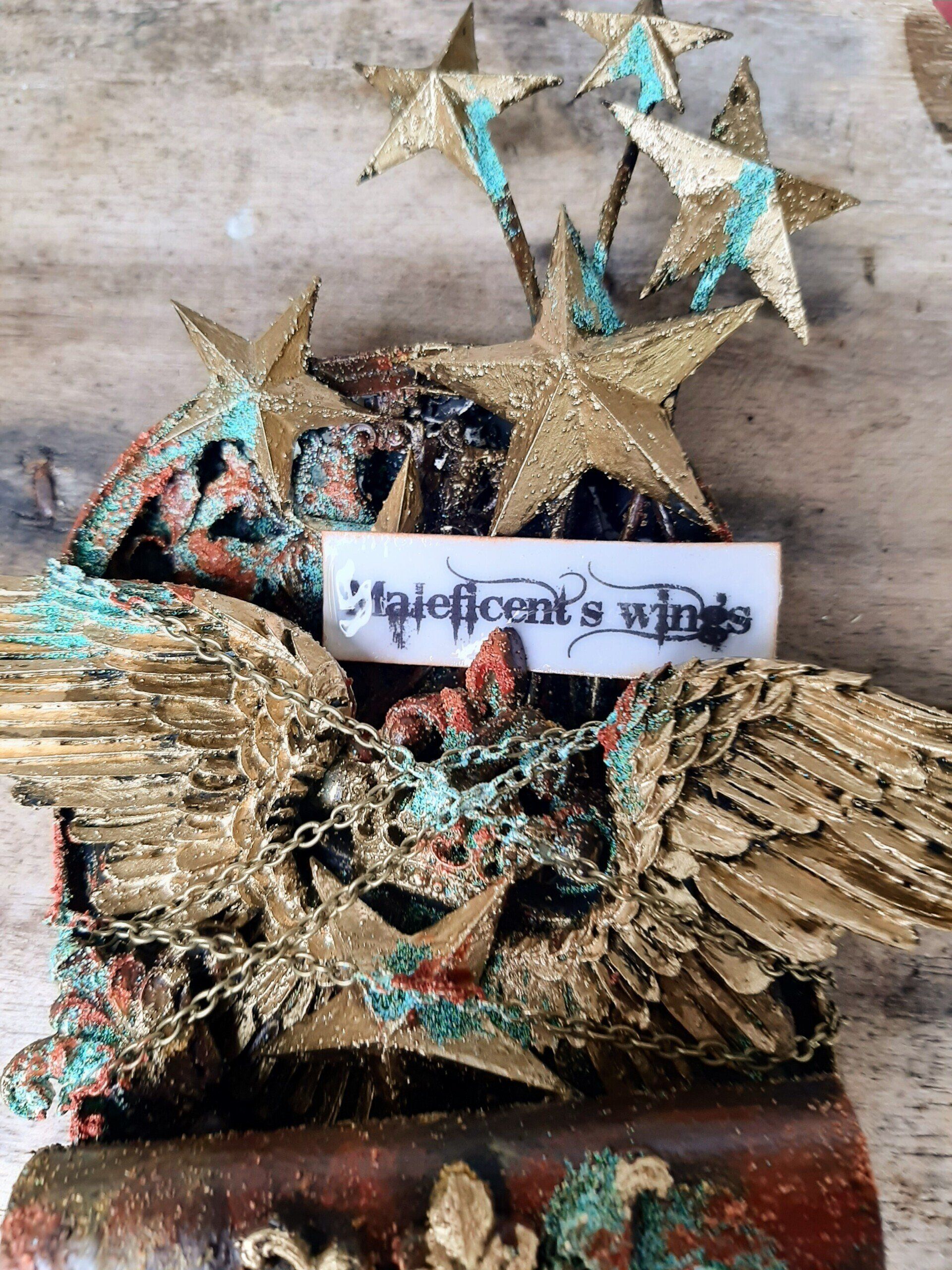 Gestaltet in einer leeren Heringsdose! MixedMedia at it's best! Die Flügel der dunklen Fee aus Dornröschen - ca. 23x18cm... 29,-€ auf Anfrage - Ein Anleitungsvideo gibt es in der Rubrik "Bastelanleitungen/ Videos"