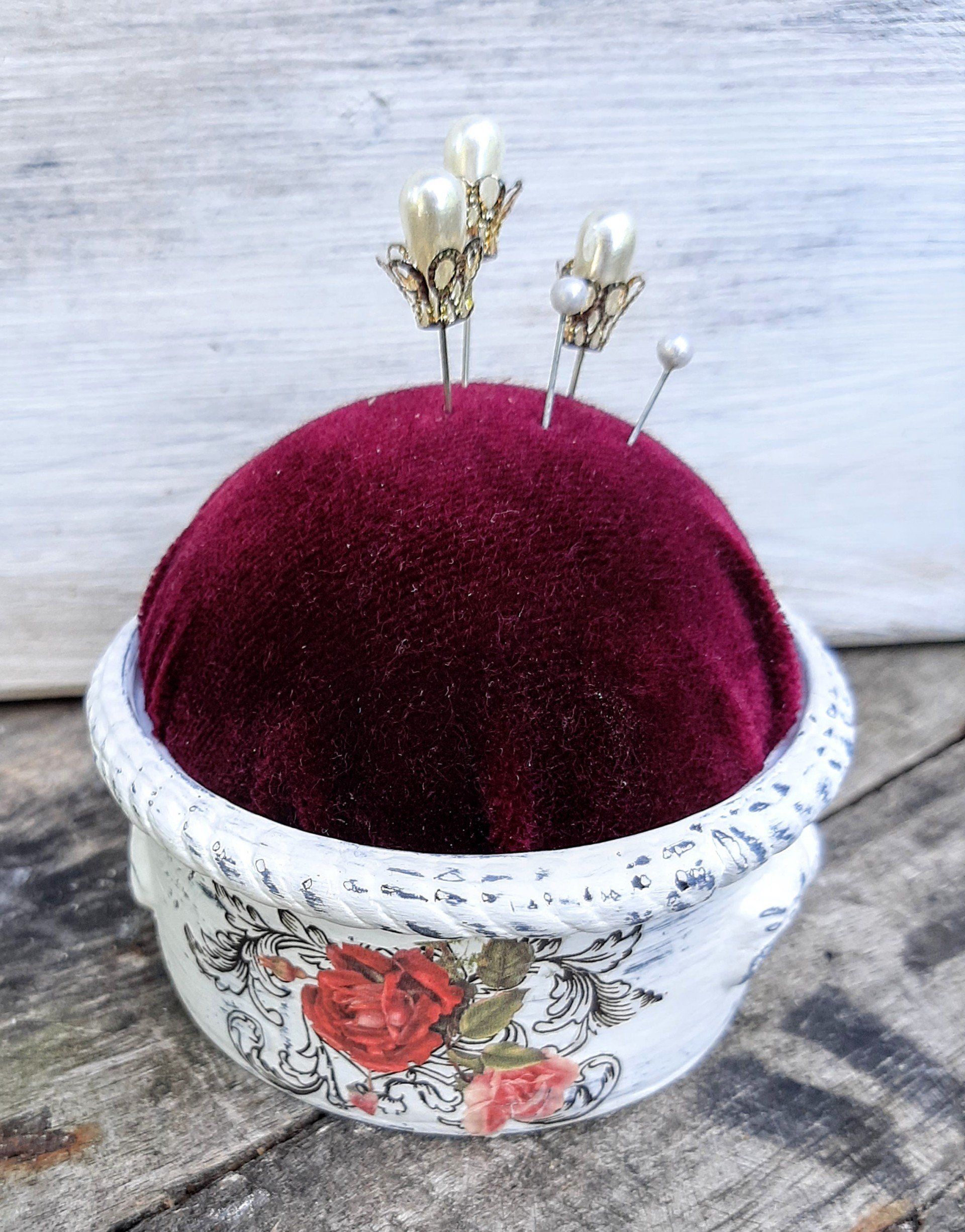Vintage Nadelkissen im Shabby Chic Style, Kissen mit echtem Samt, ca. 10cm Durchmesser - 9,50€ auf Anfrage