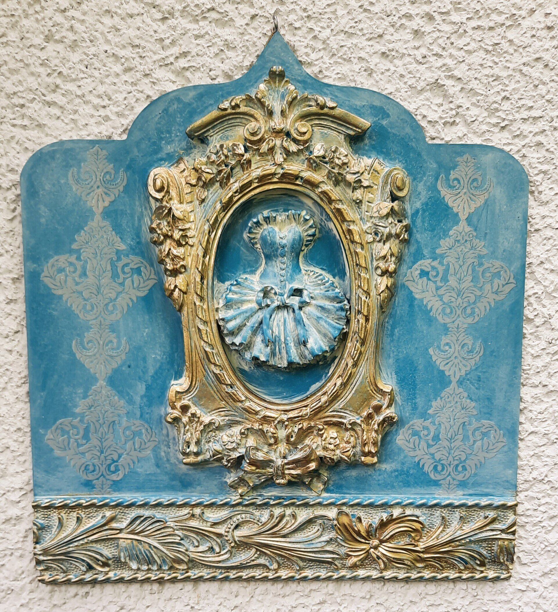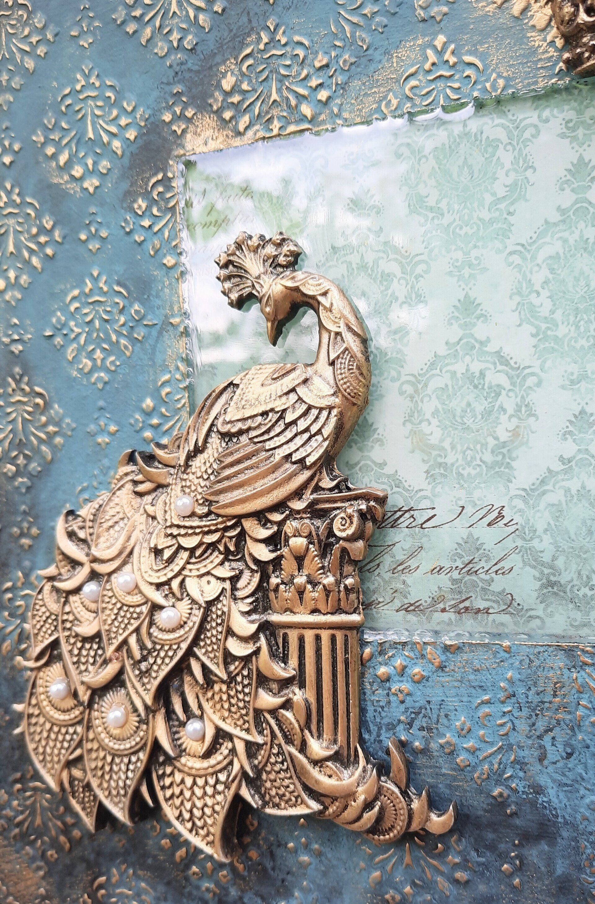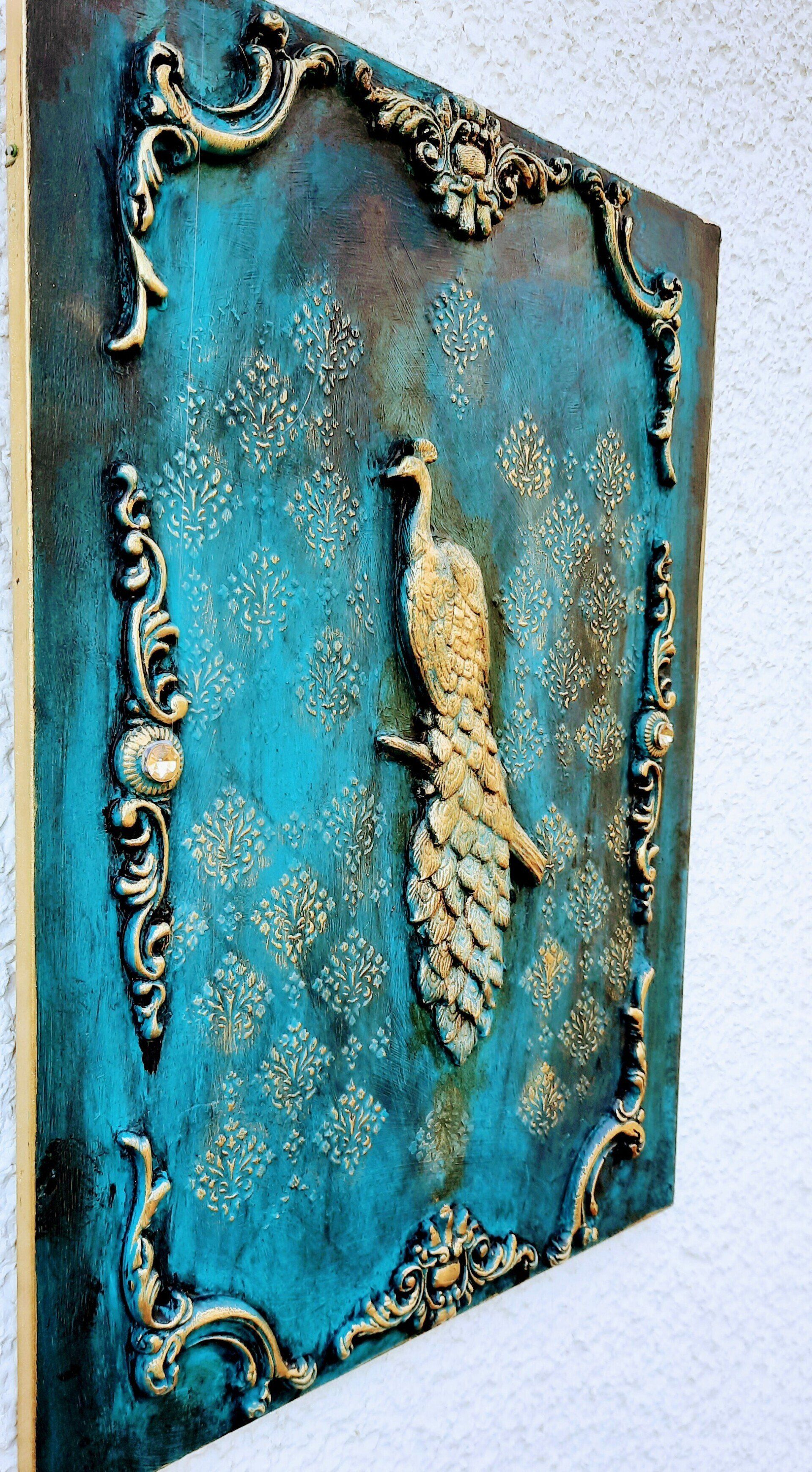 Barockes Deko-Shild 40x30cm aufwändig gestaltet. Pfau-Motiv und Ornamente aus Resin gegossen ---- 35,-€ auf Anfrage