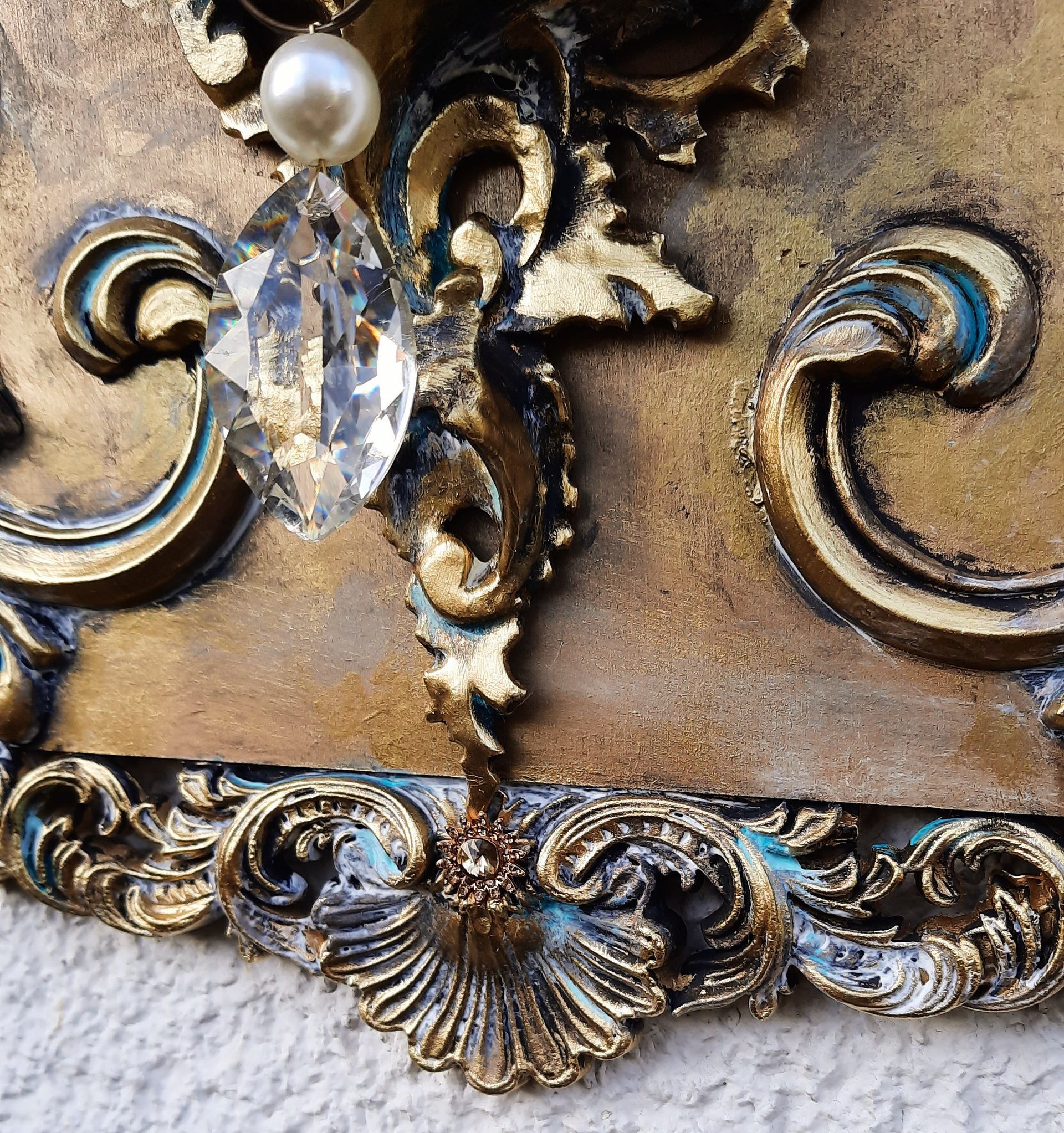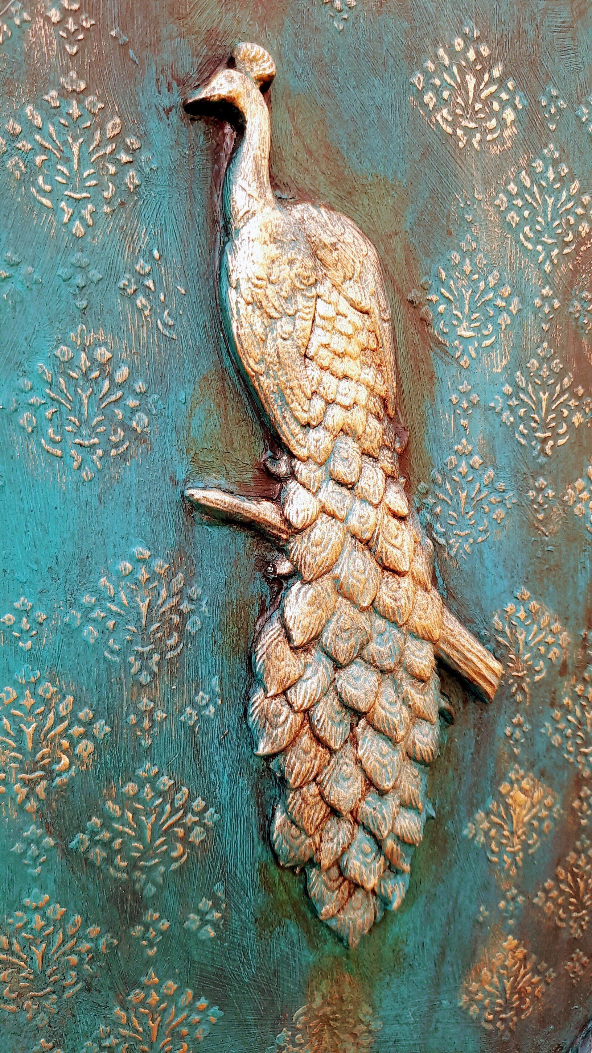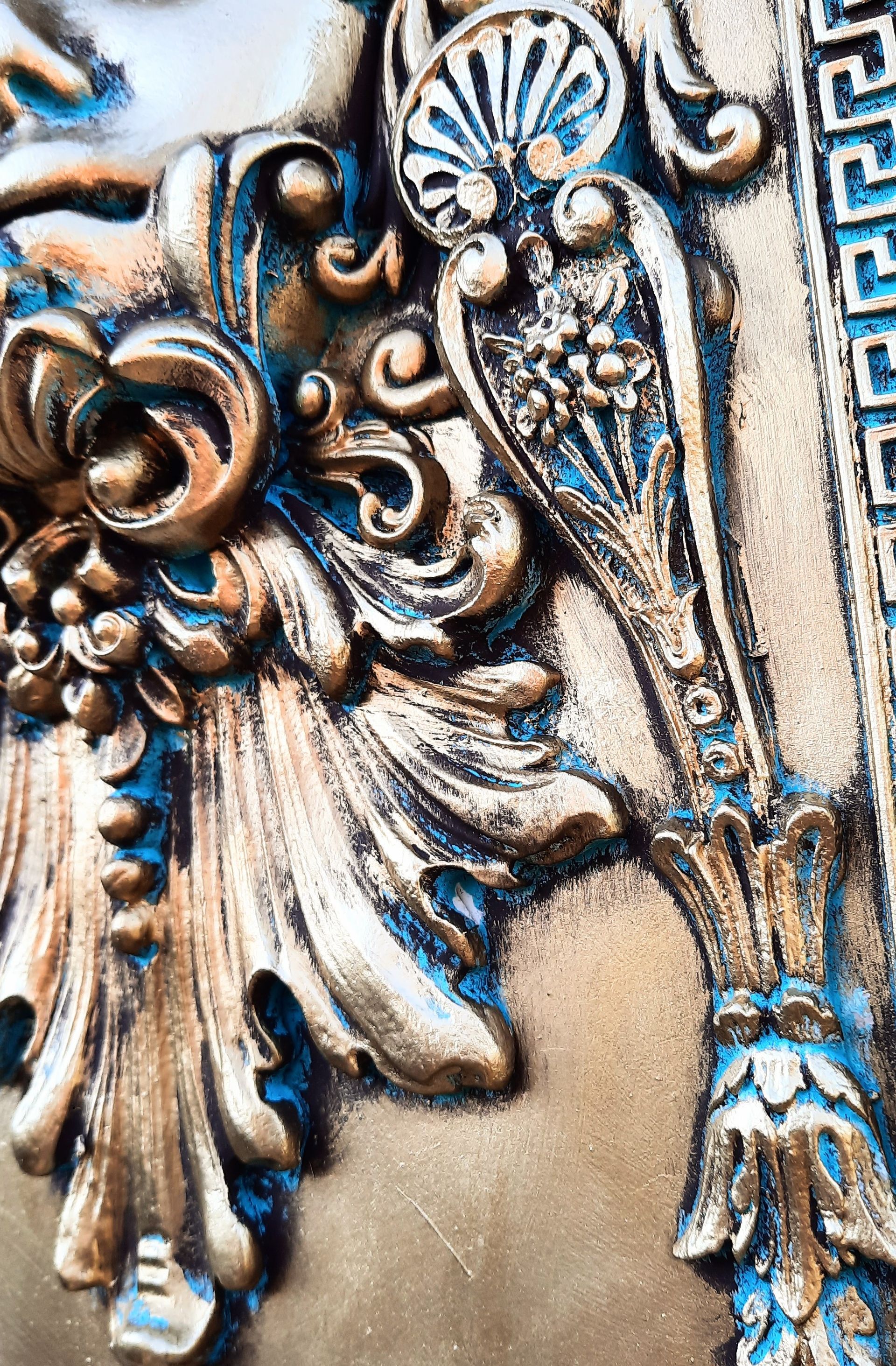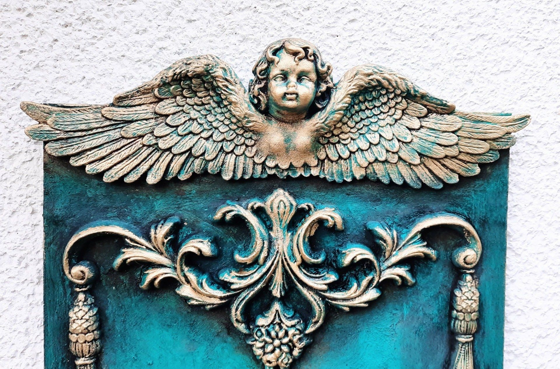 Barockes Deko-Shild 40x30cm aufwändig gestaltet. Pfau-Motiv und Ornamente aus Resin gegossen ---- 35,-€ auf Anfrage