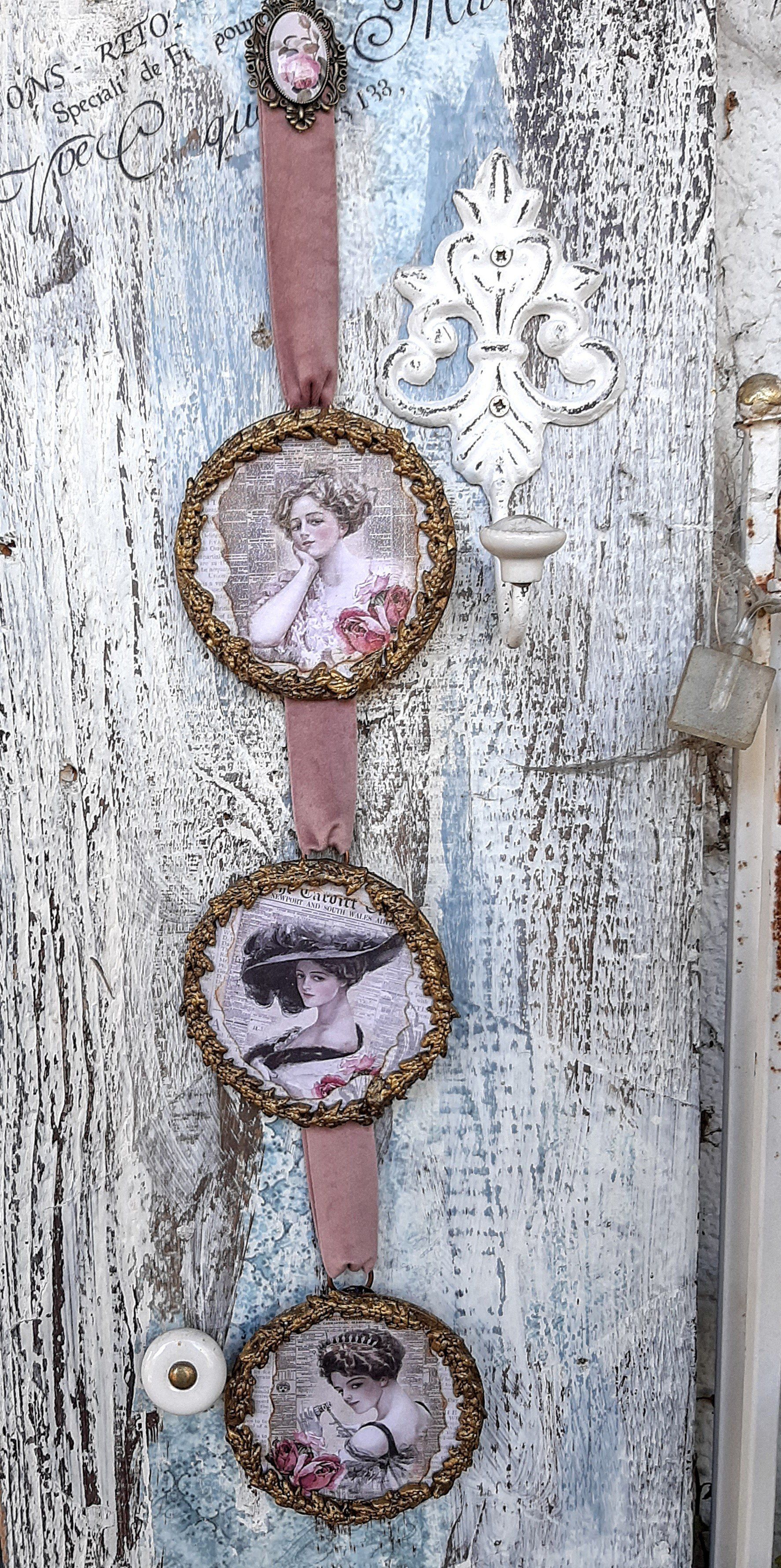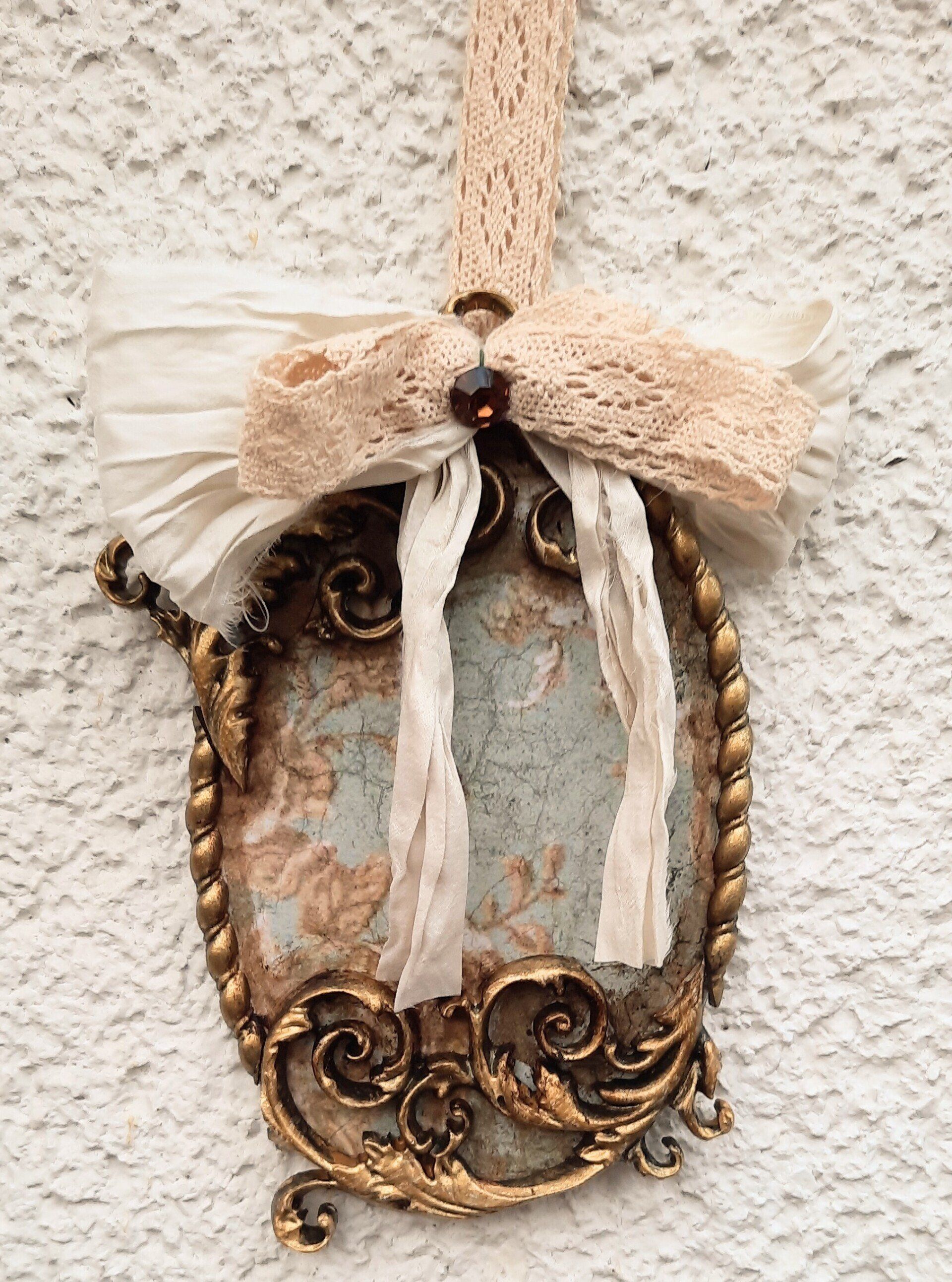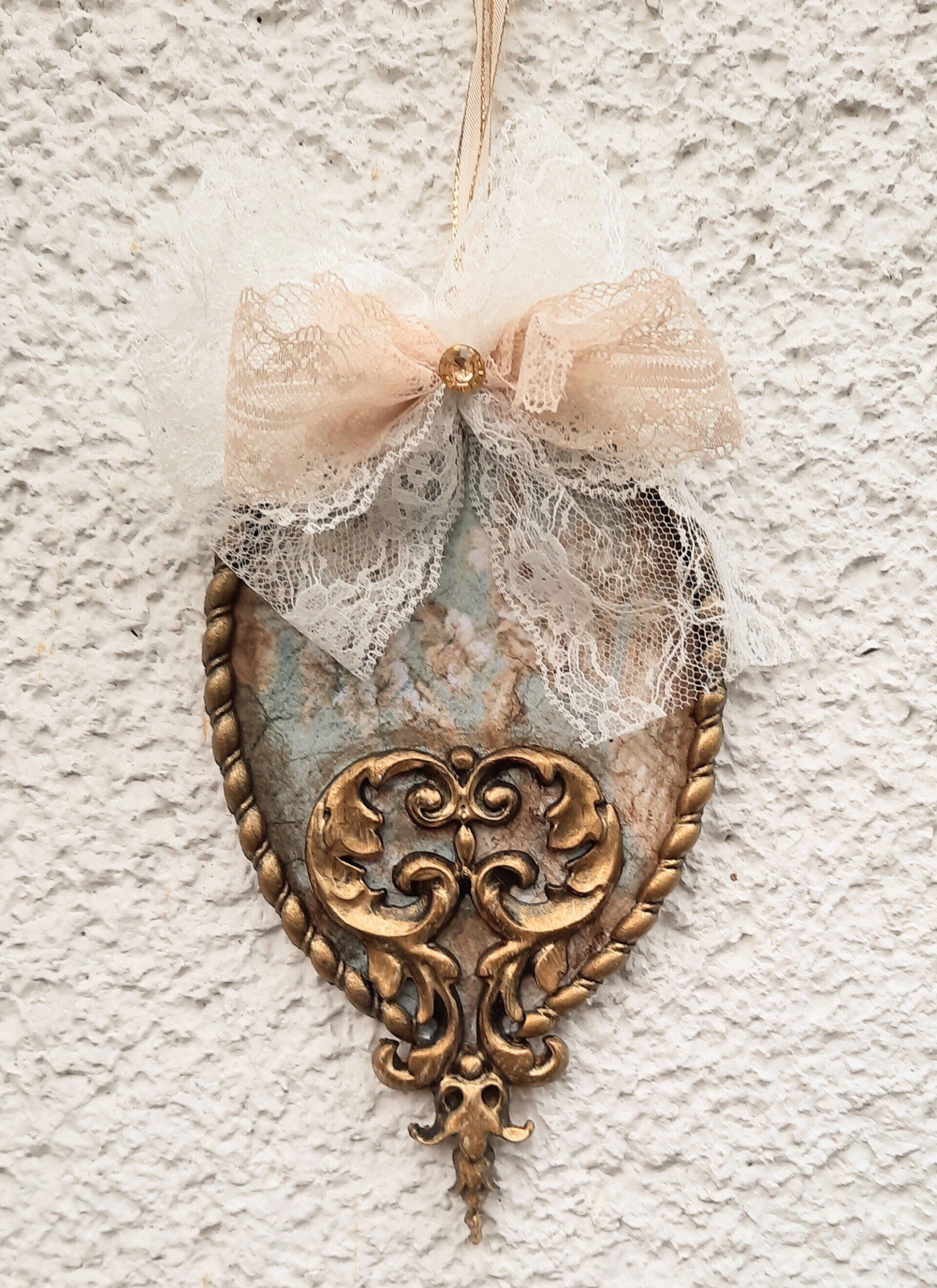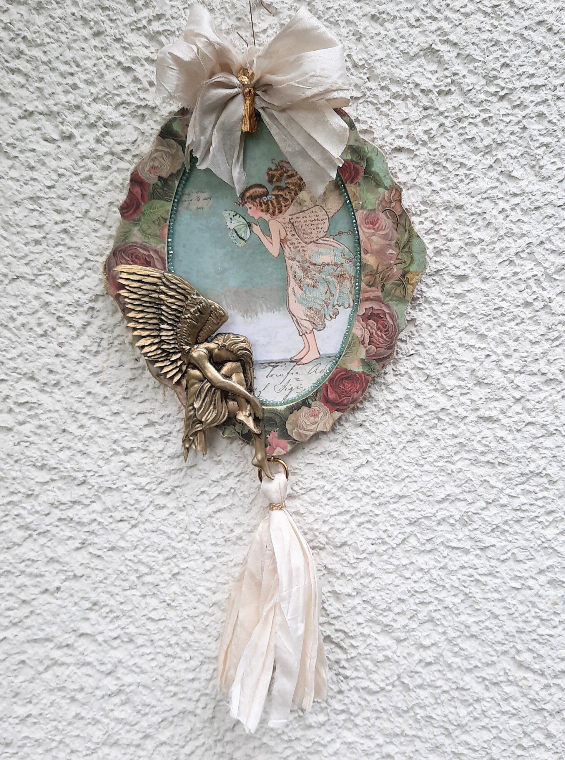 Wunderschöner Wandhänger, aufwändig gestaltet im MixedMedia - Vintage Look. Komplett ca. 52cm lang - - - 25,-€ auf Anftage -Ein Anleitungsvideo gibt es in der Rubrik "Bastelanleitungen/Videos"