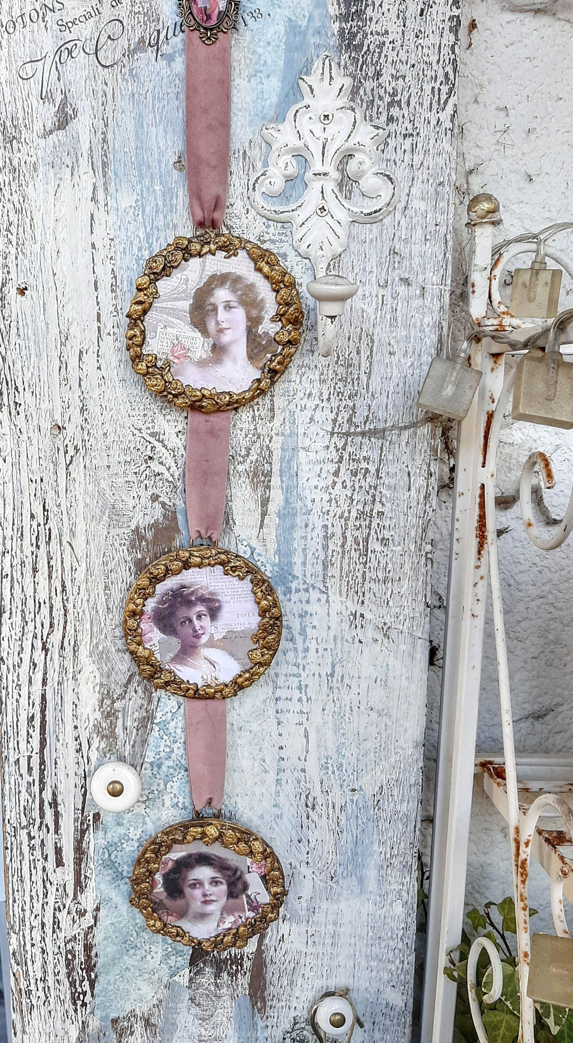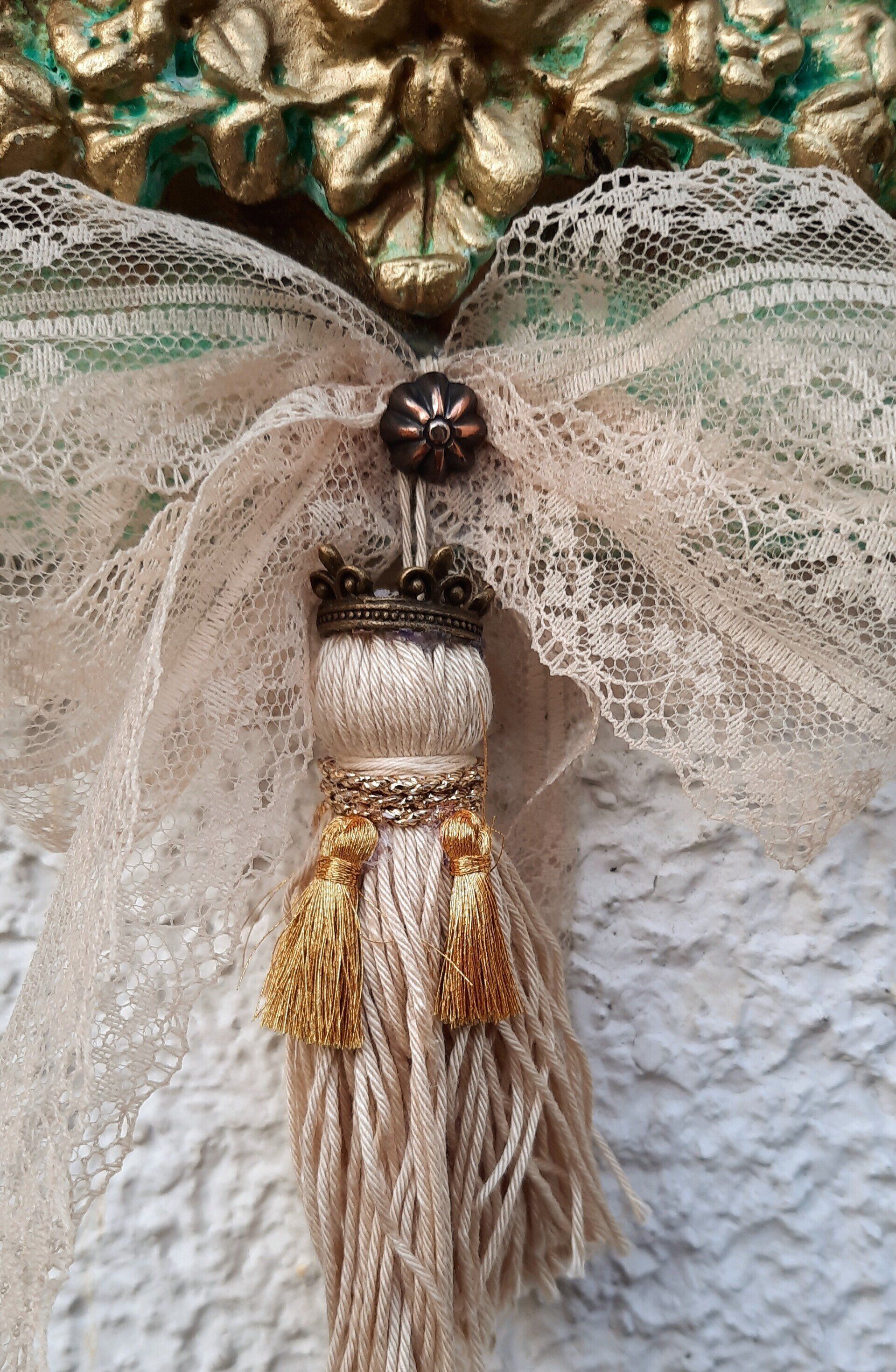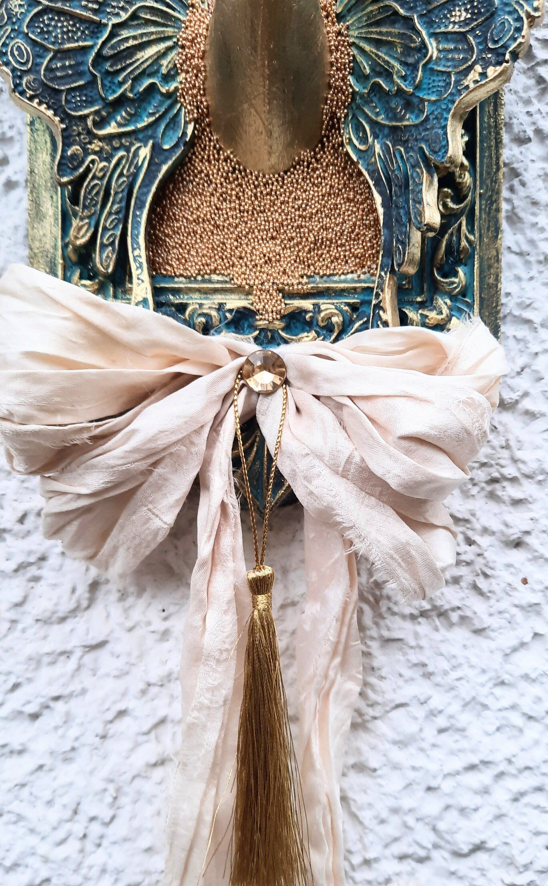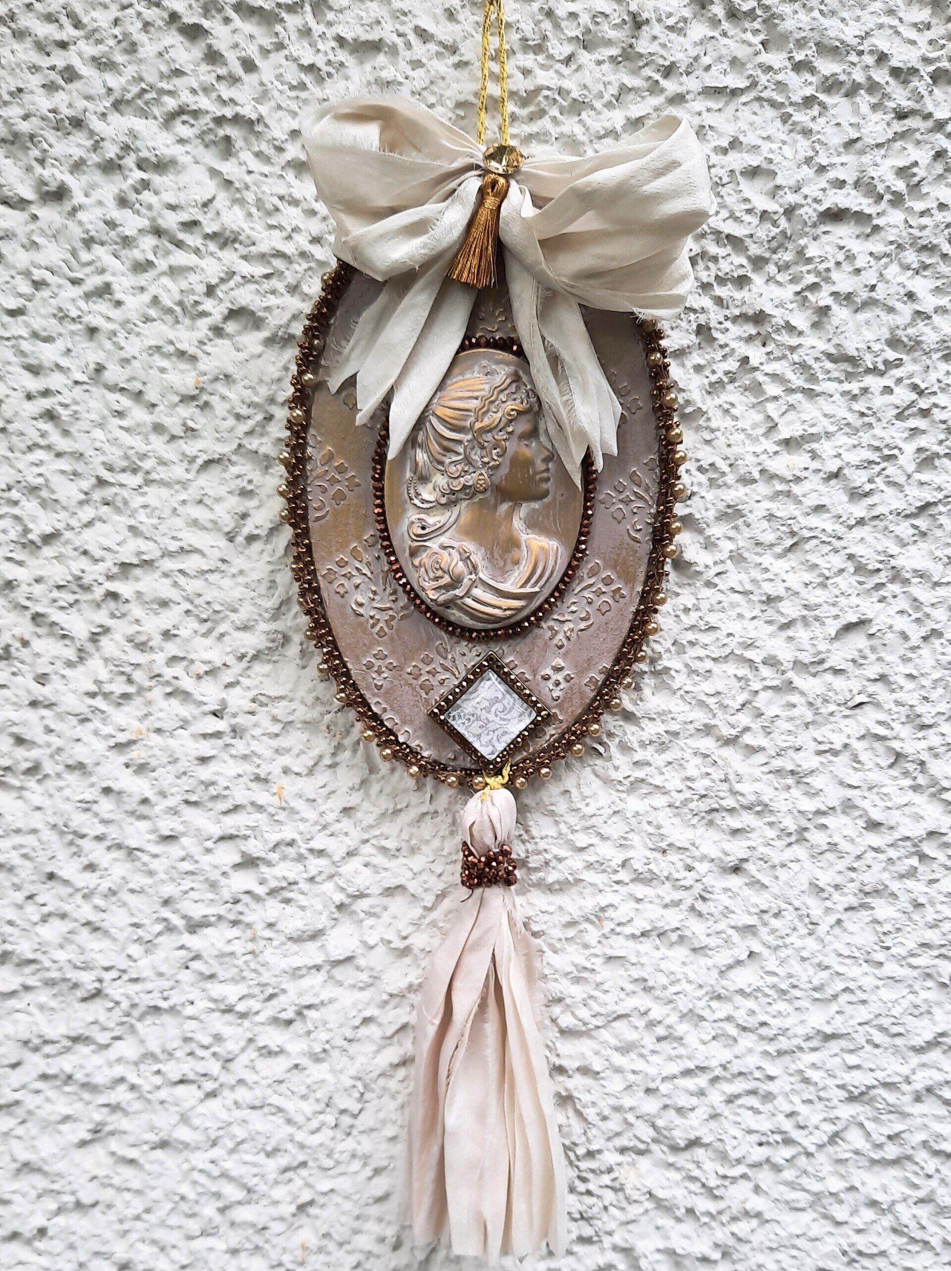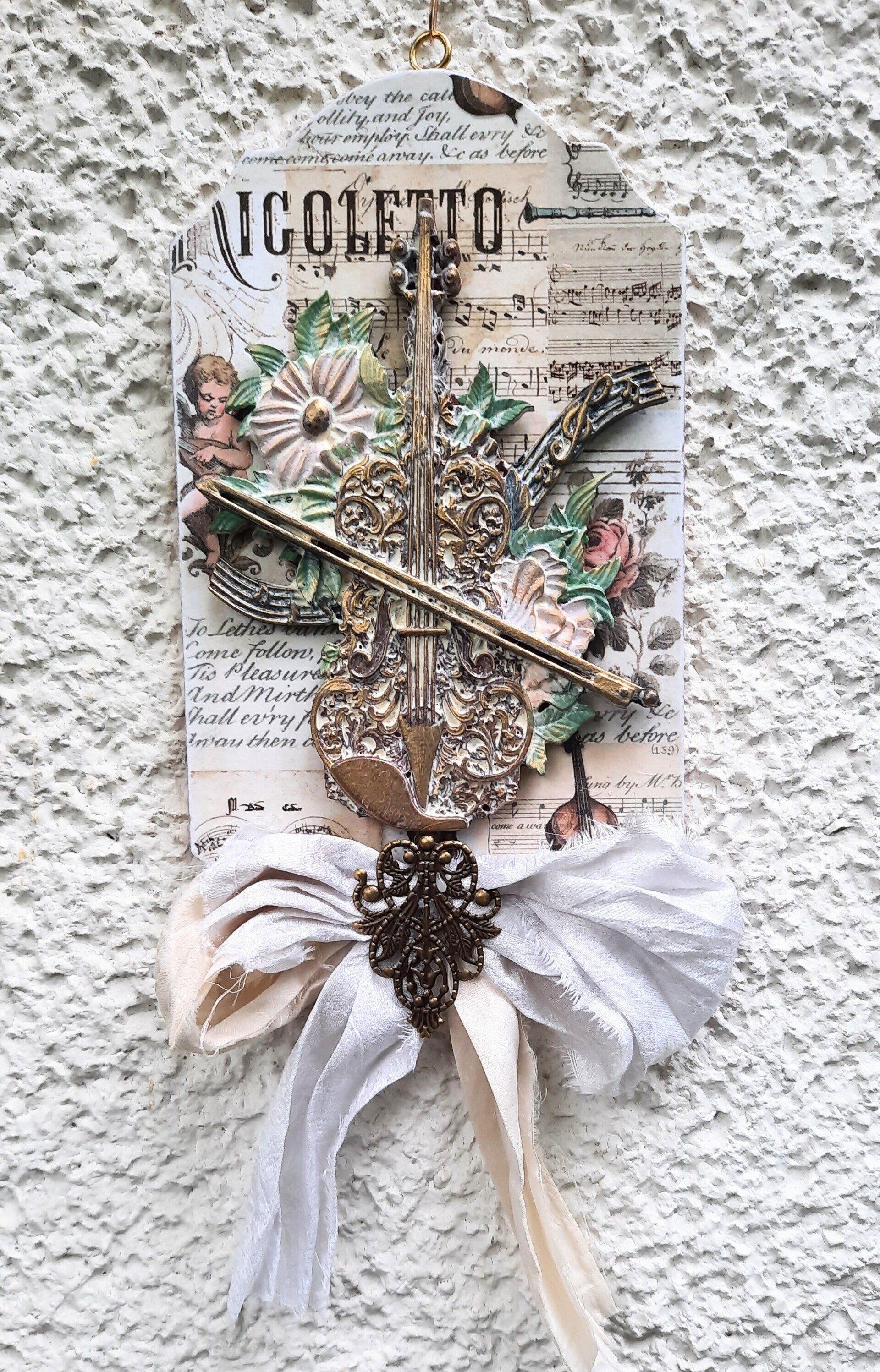 Wunderschöner Wandhänger, aufwändig gestaltet im MixedMedia - Vintage Look. Komplett ca. 52cm lang - - - 25,-€ auf Anftage -Ein Anleitungsvideo gibt es in der Rubrik "Bastelanleitungen/Videos"