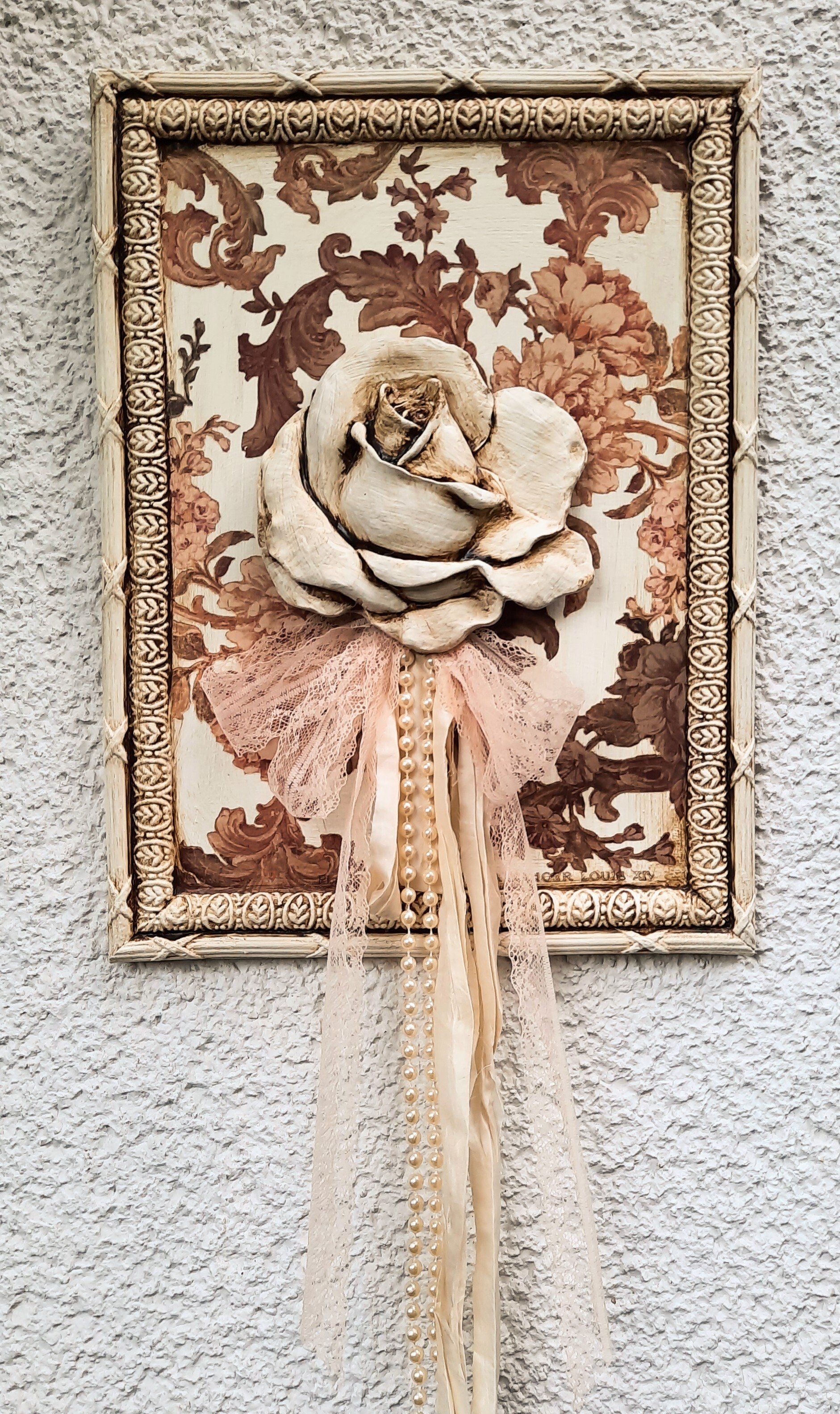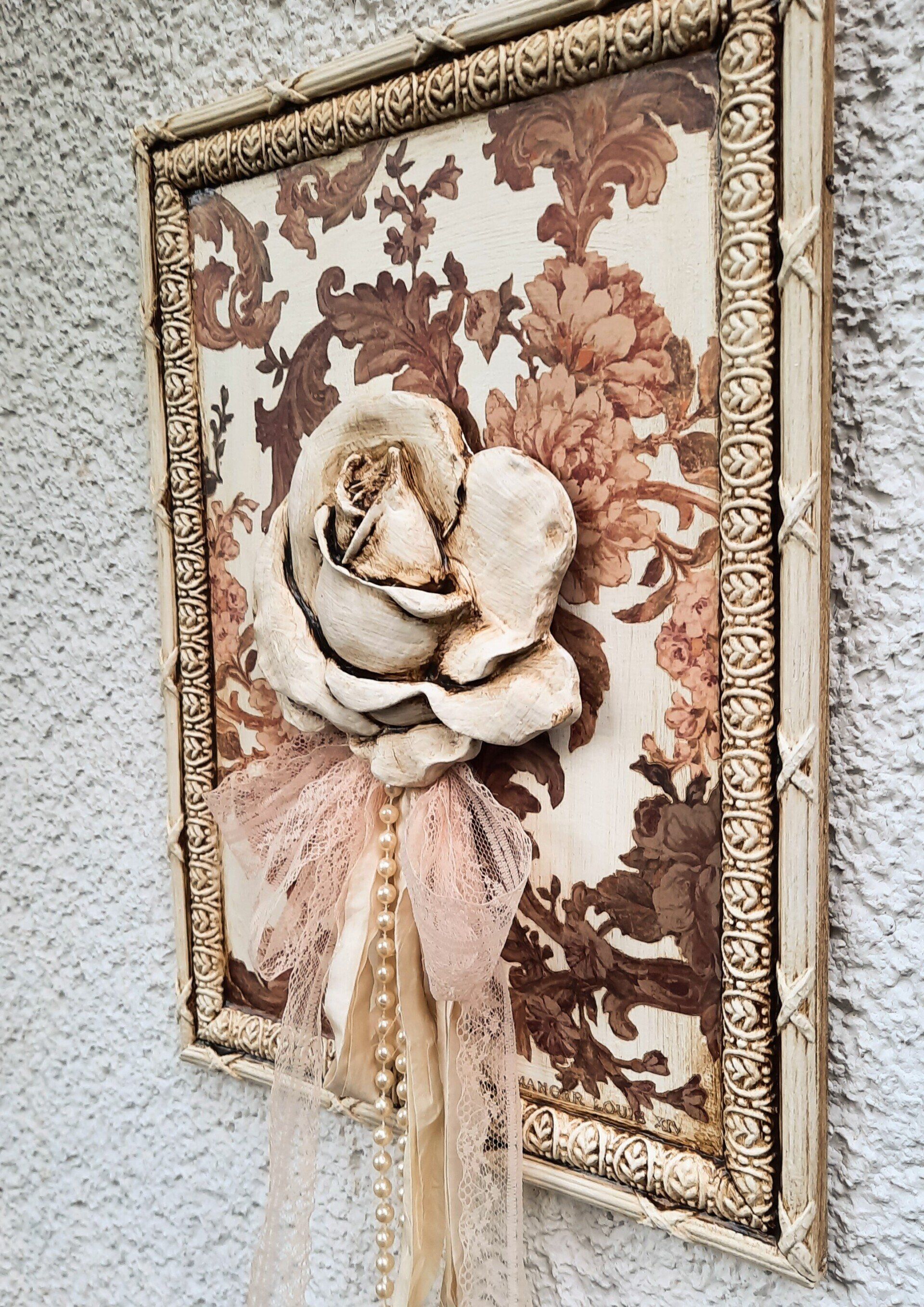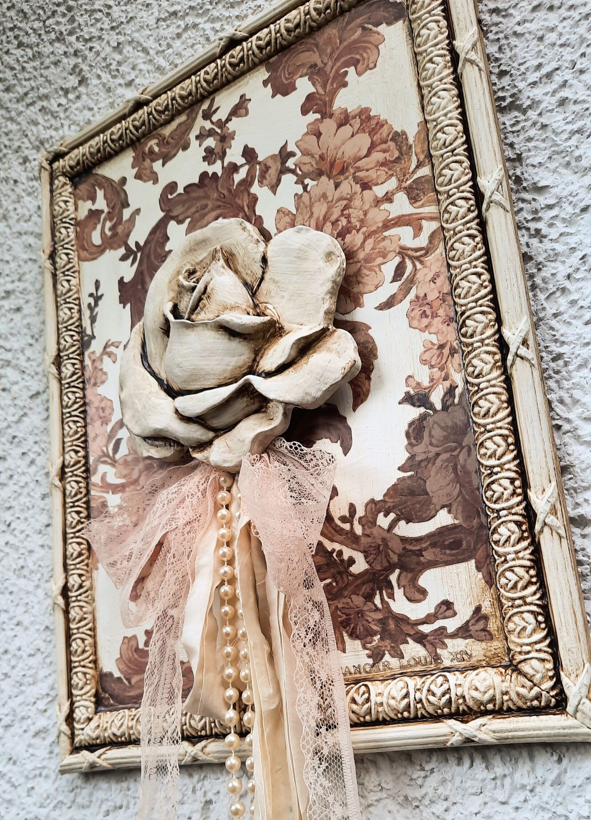 MixedMedia Bild auf MDF 40x40cm, Eine mondäne Rosendame im Vintage/ Shabby Look - 39,-€ auf Anfrage