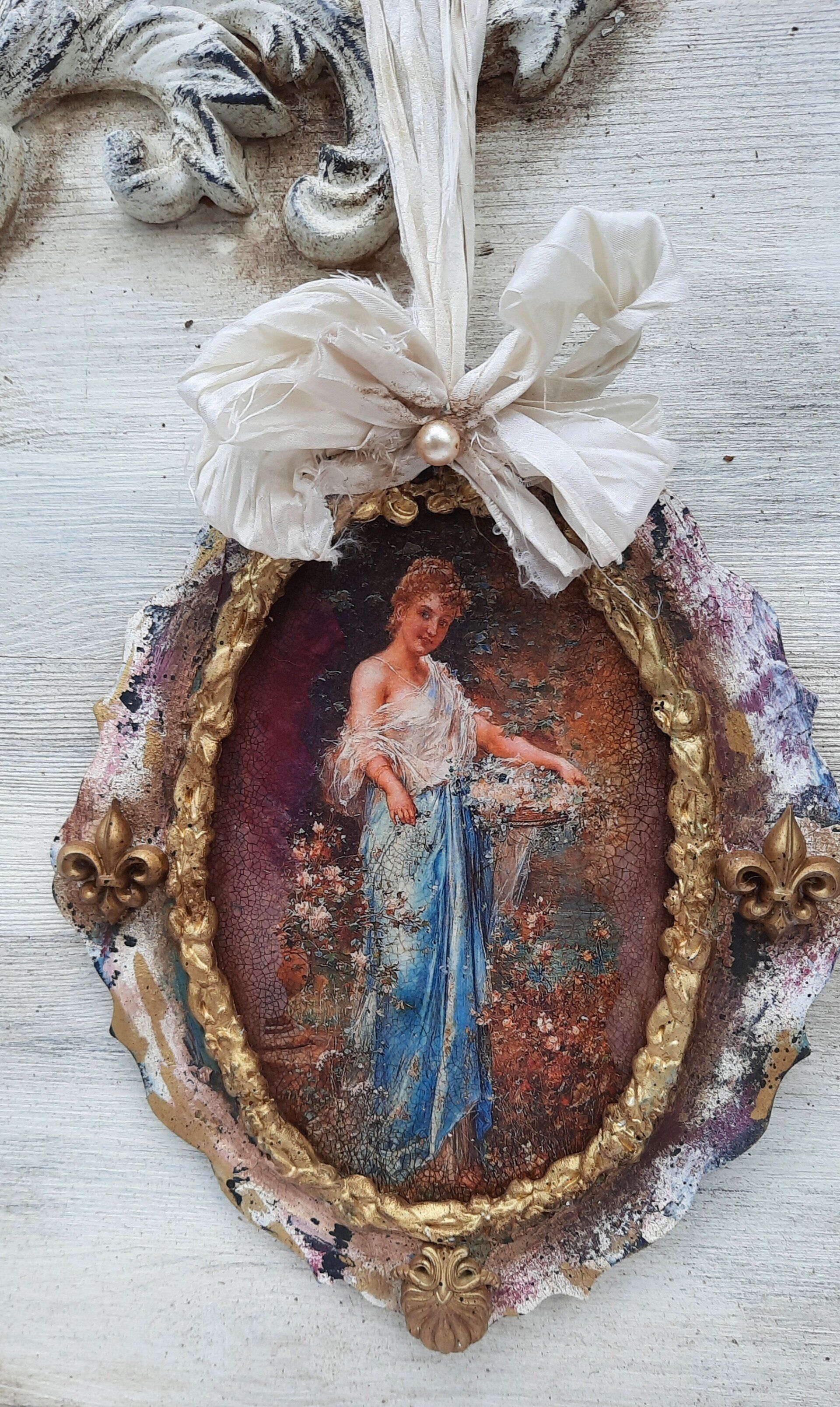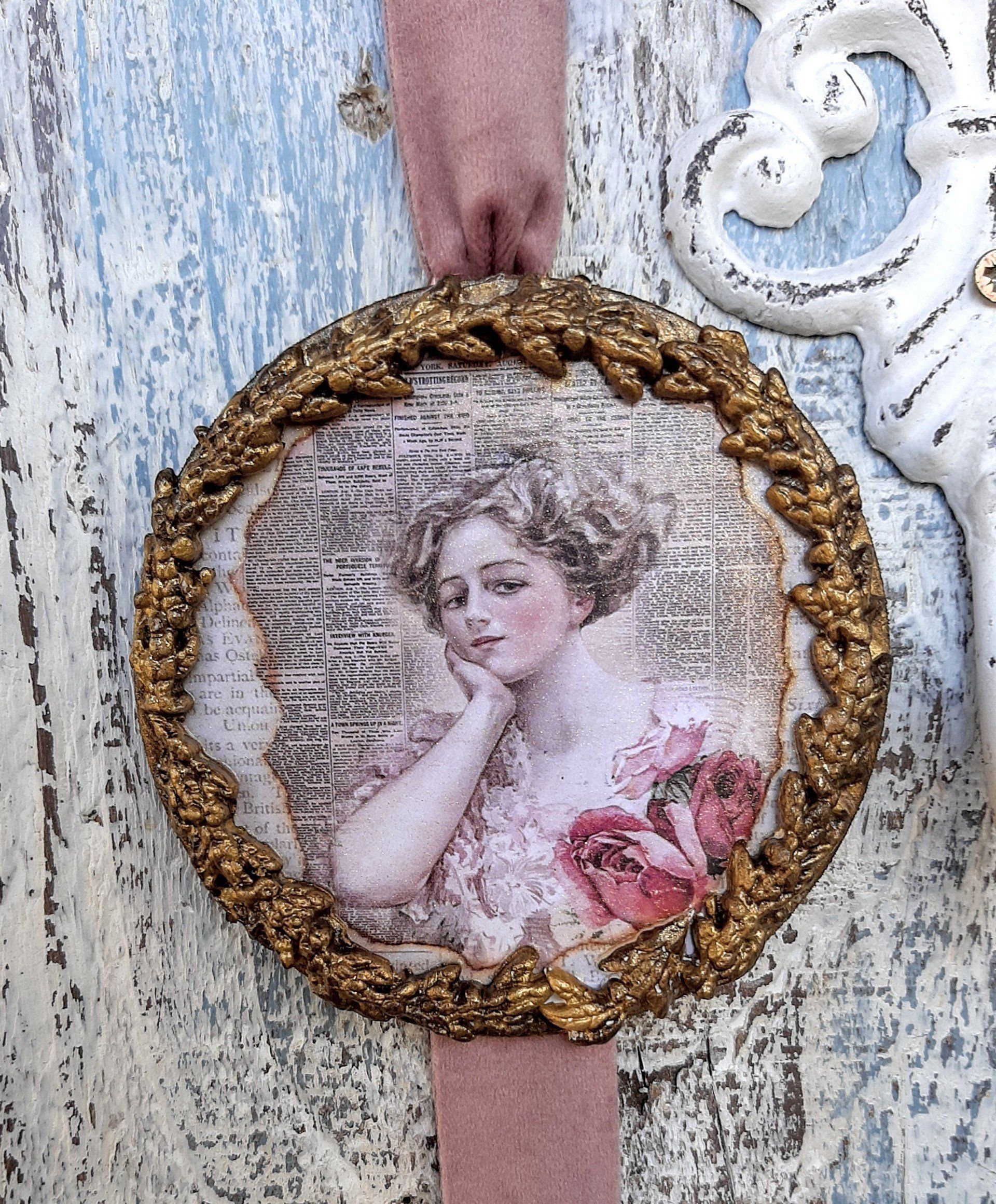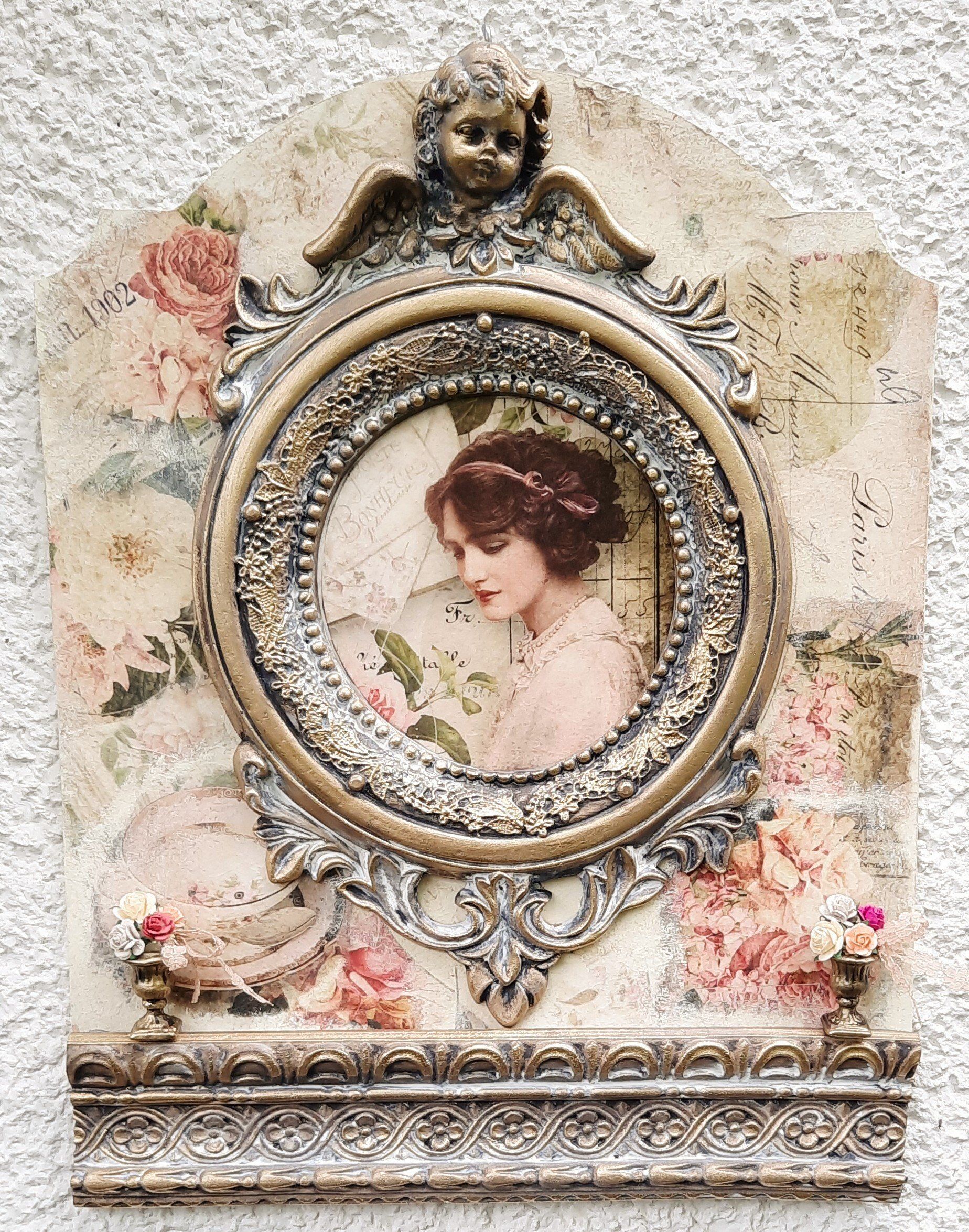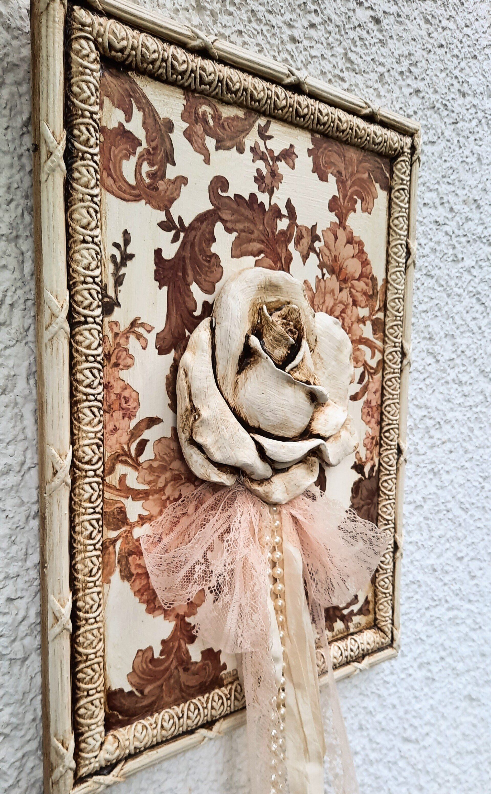 MixedMedia Bild auf MDF 40x40cm, Eine mondäne Rosendame im Vintage/ Shabby Look - 39,-€ auf Anfrage