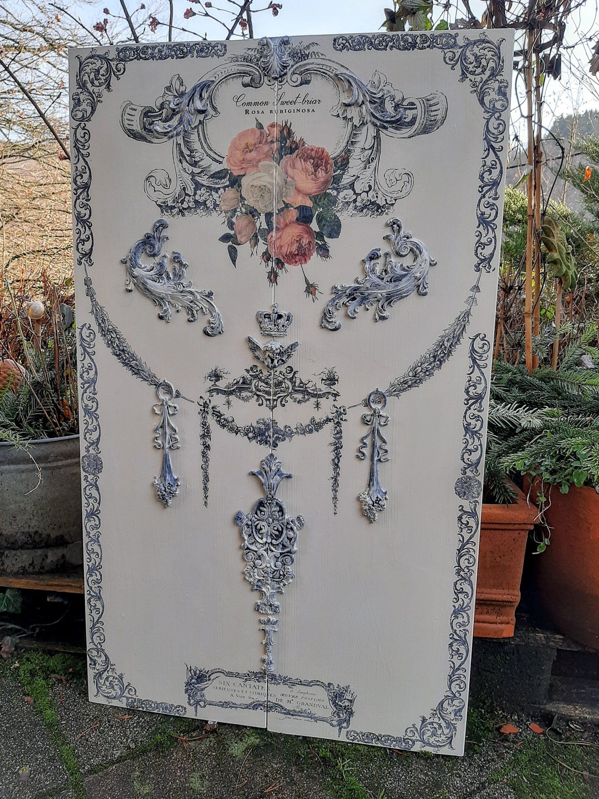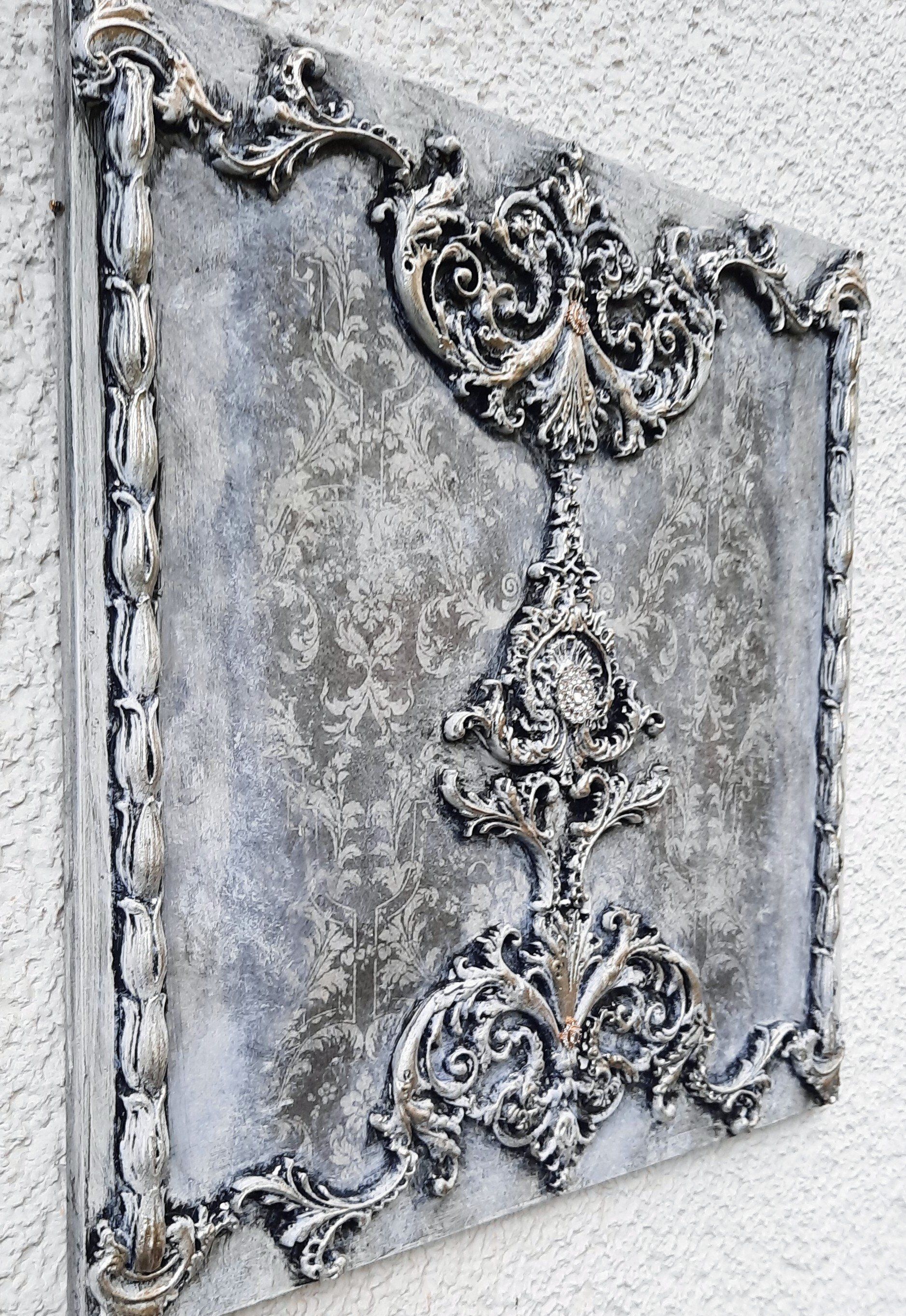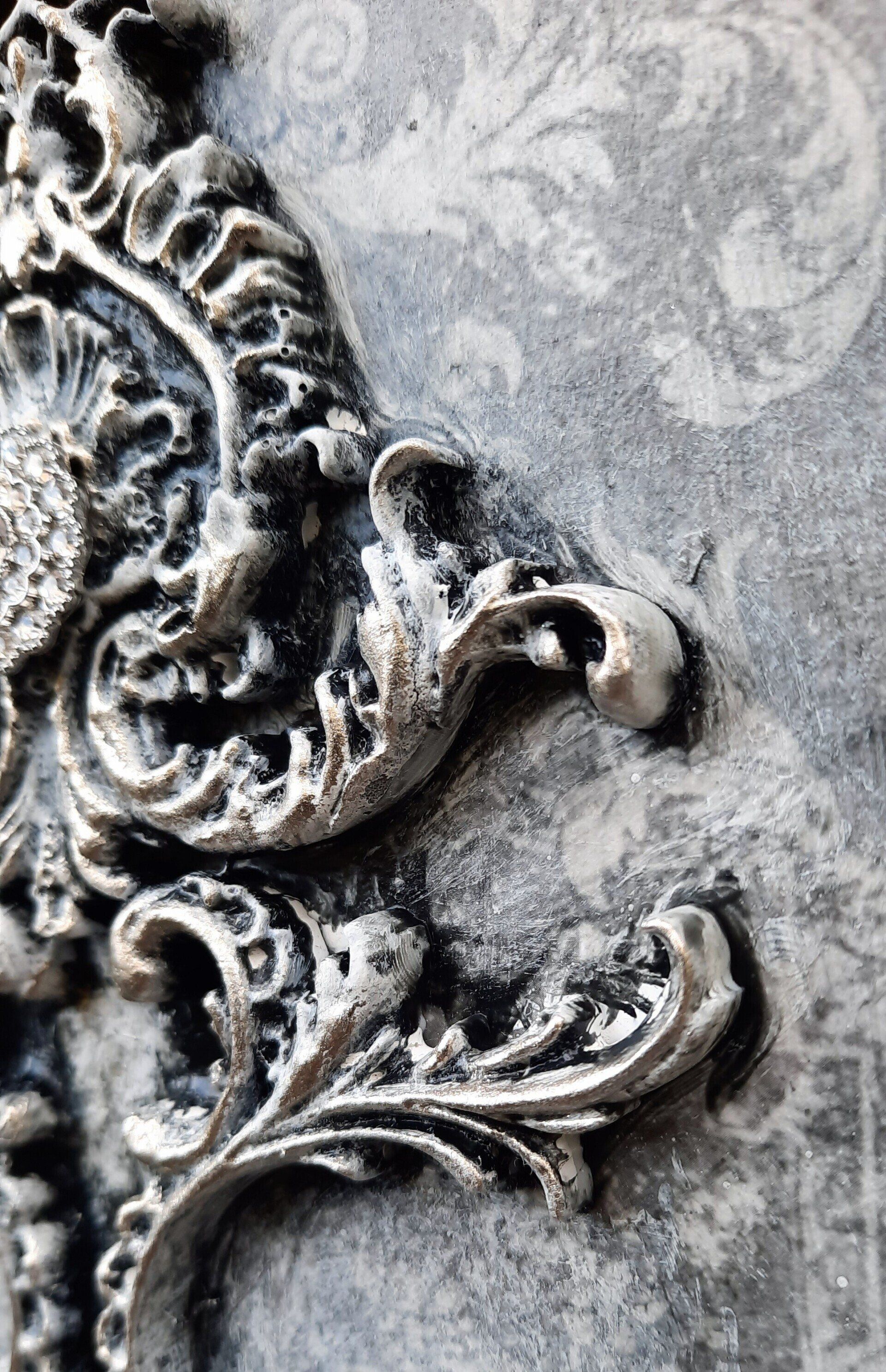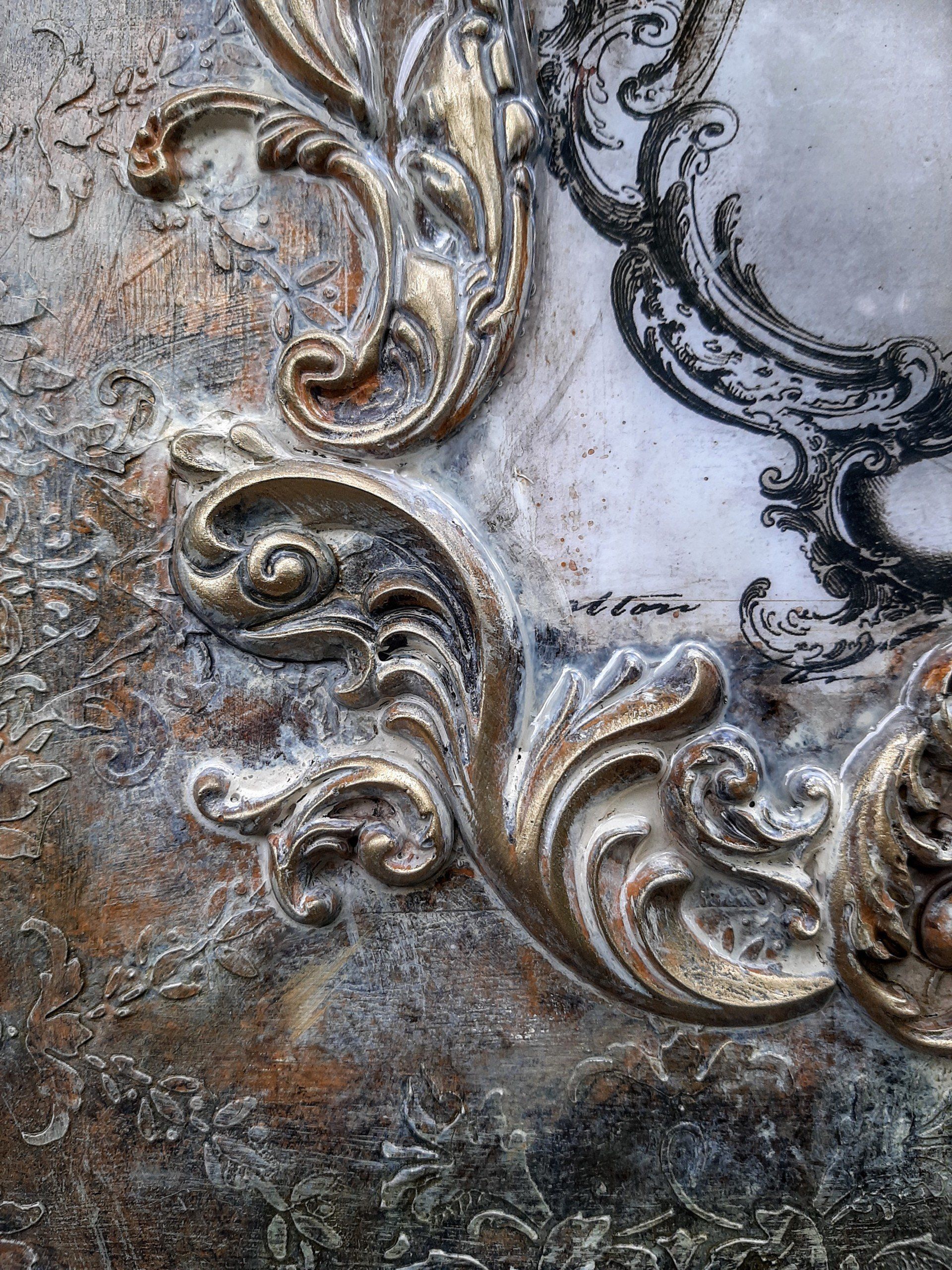 MixedMedia Panel 40x40cm, gestaltet mit Rokoko Ornamenten - 39,-€ auf Anfrage
