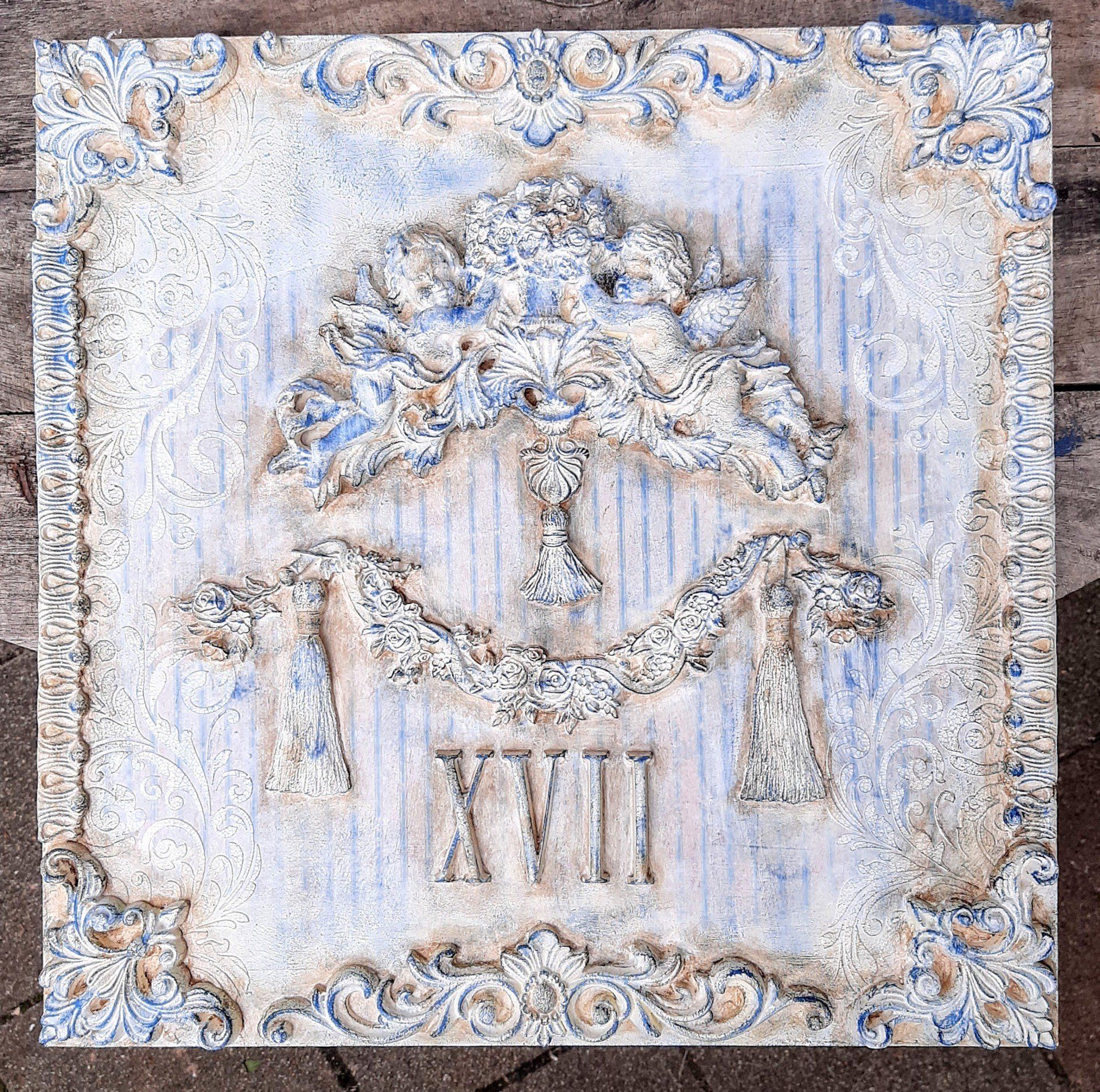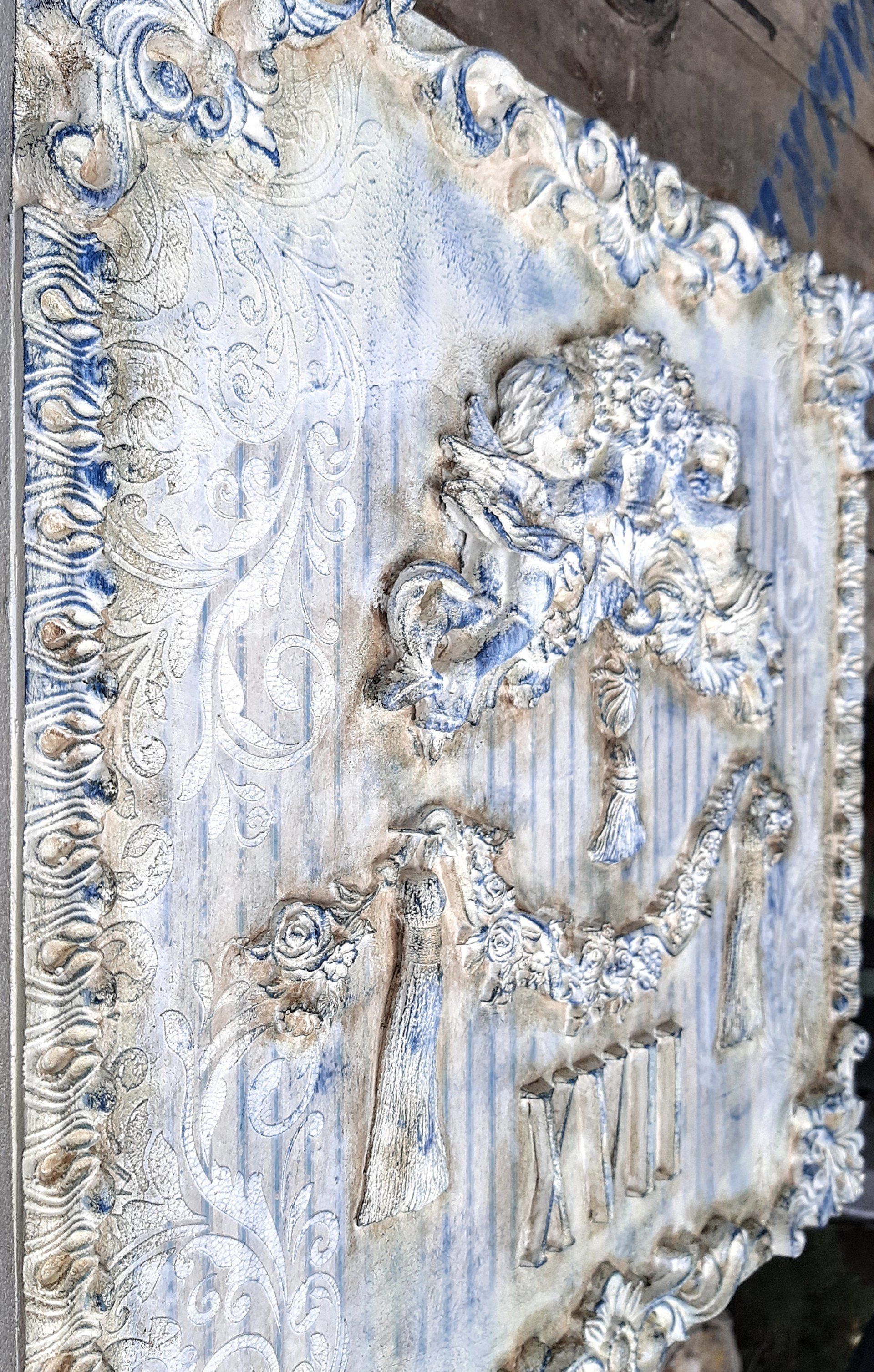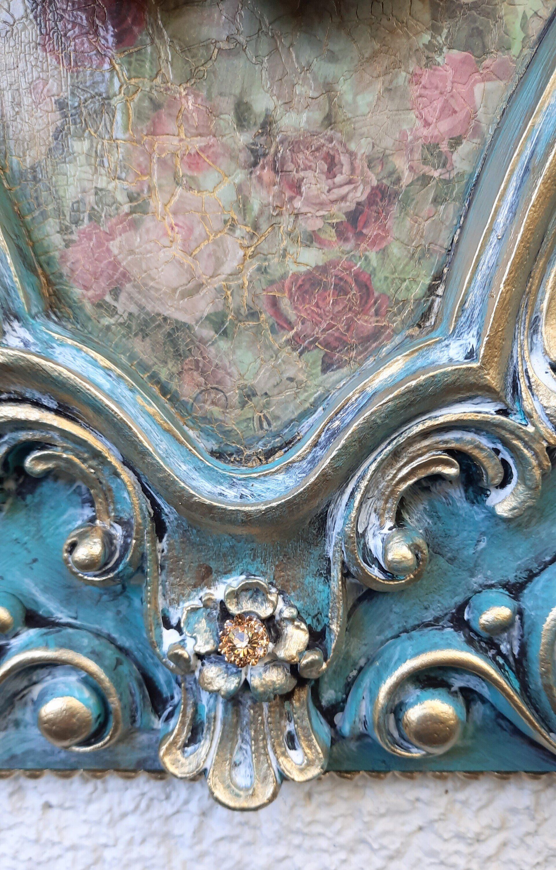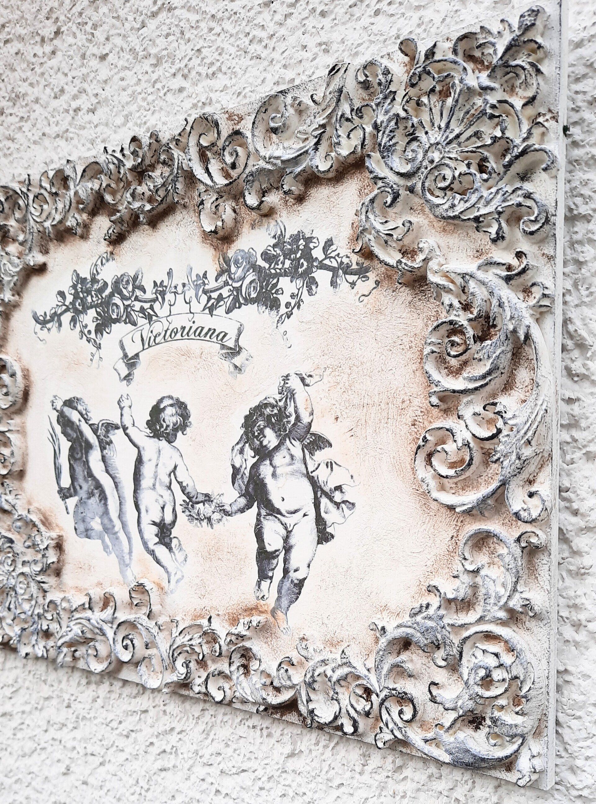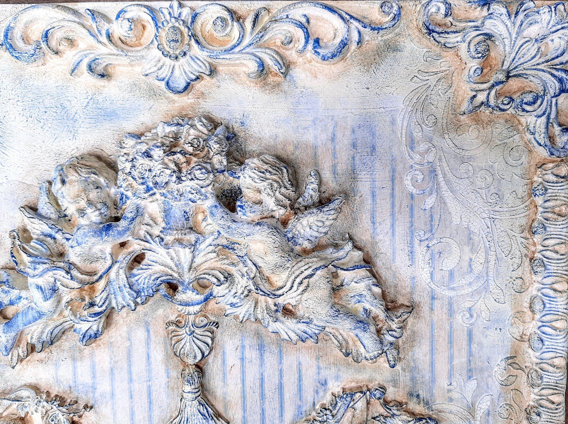 MixedMedia Panel 40x40cm, gestaltet mit Rokoko Ornamenten - 39,-€ auf Anfrage