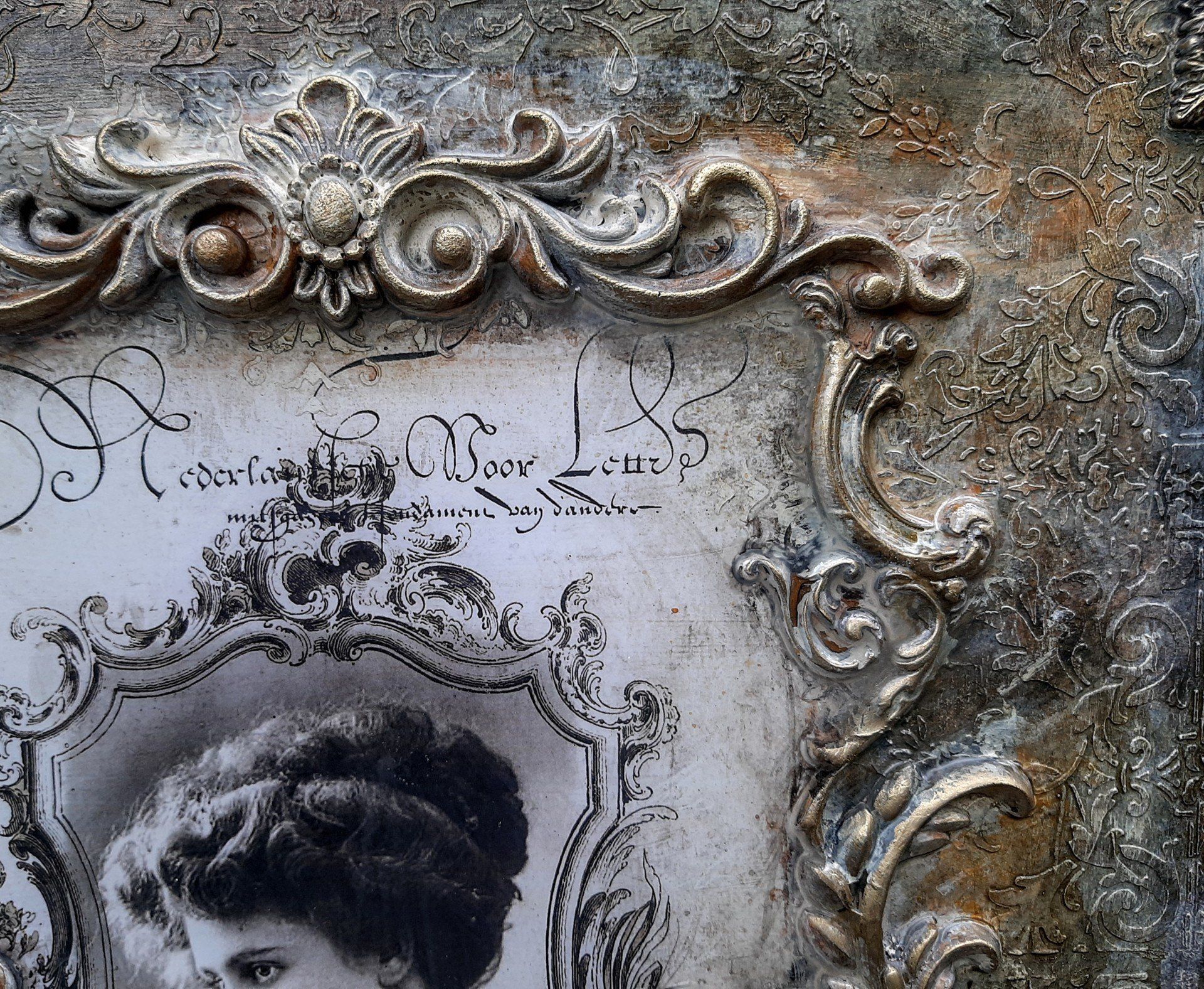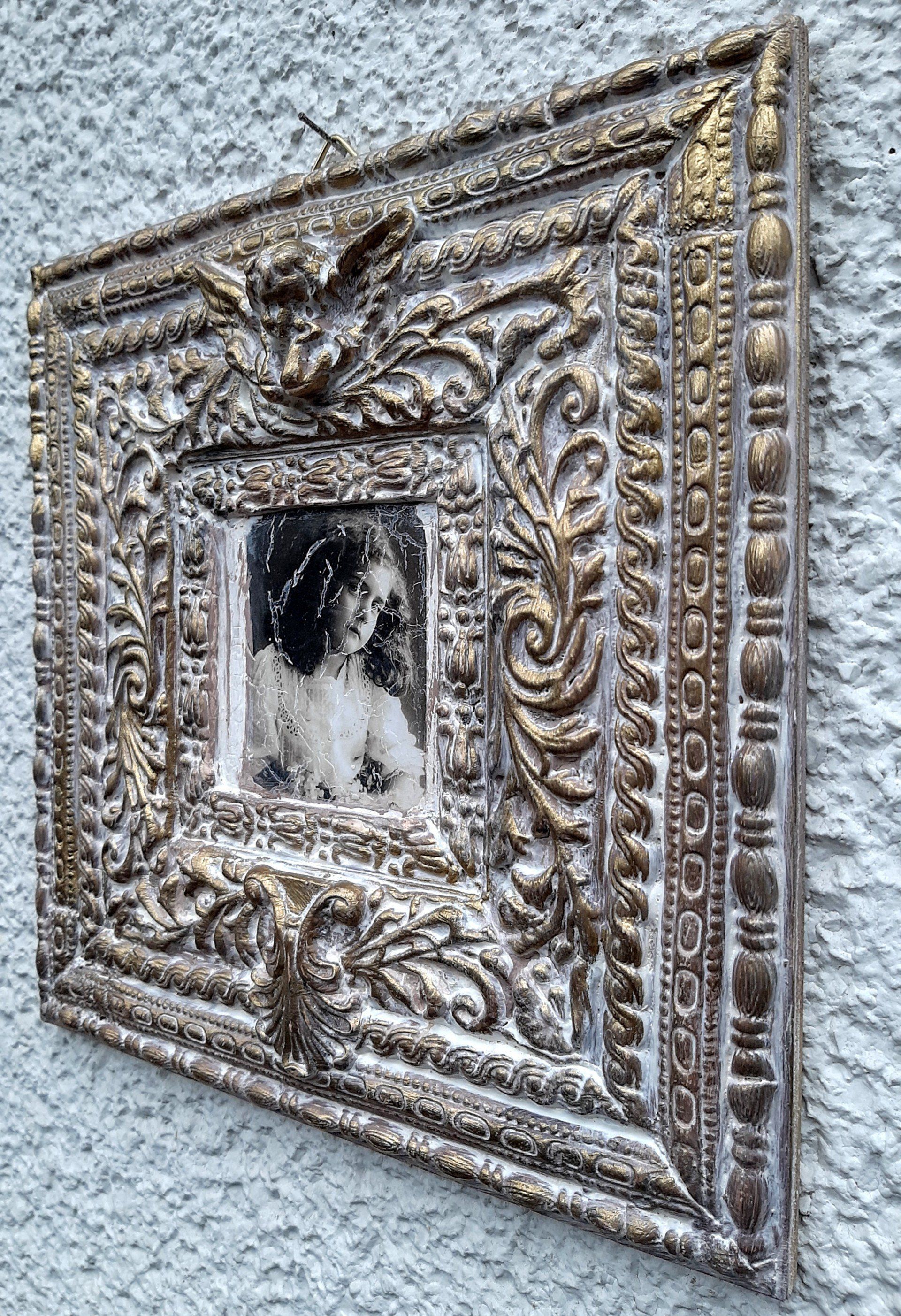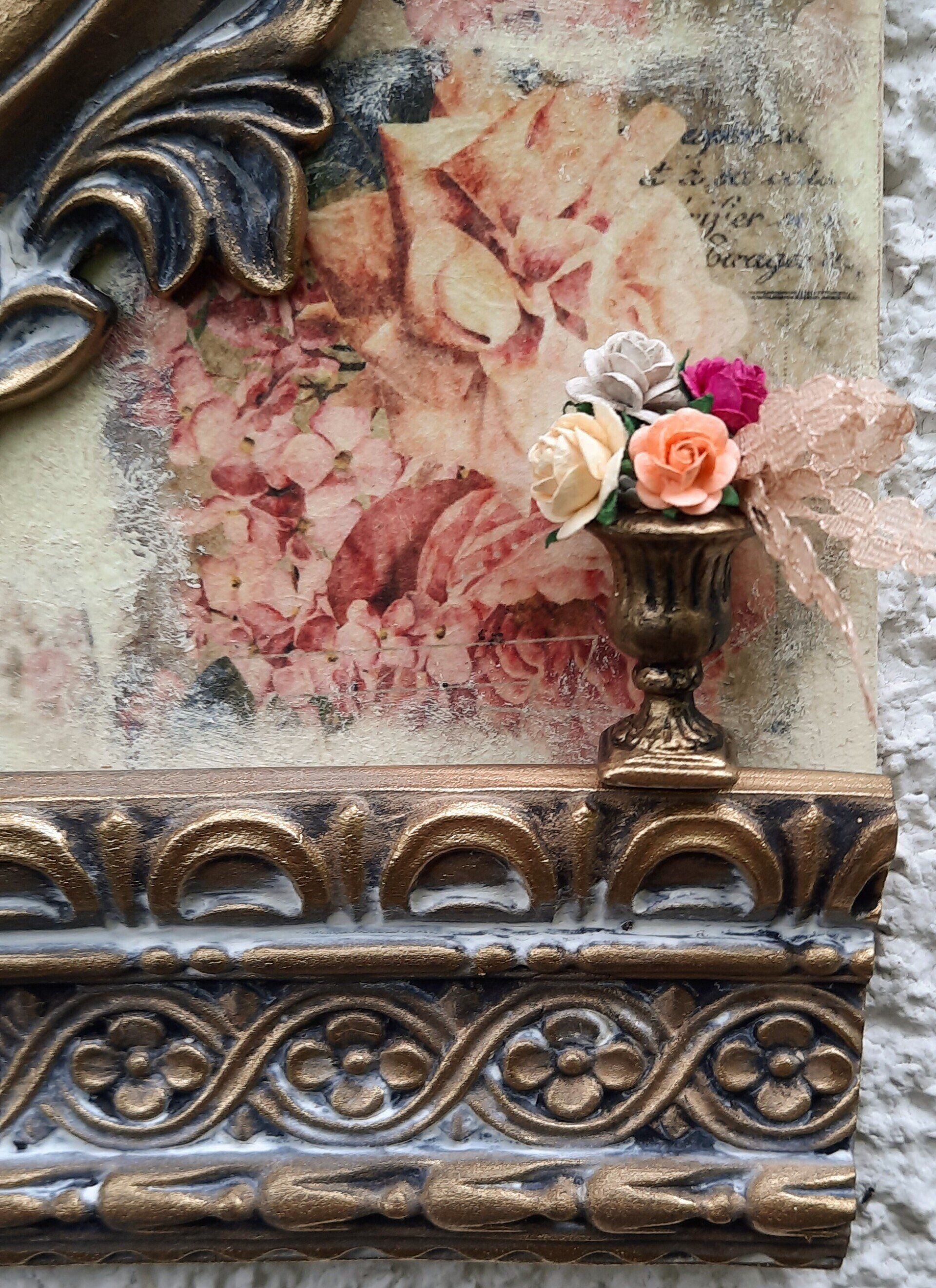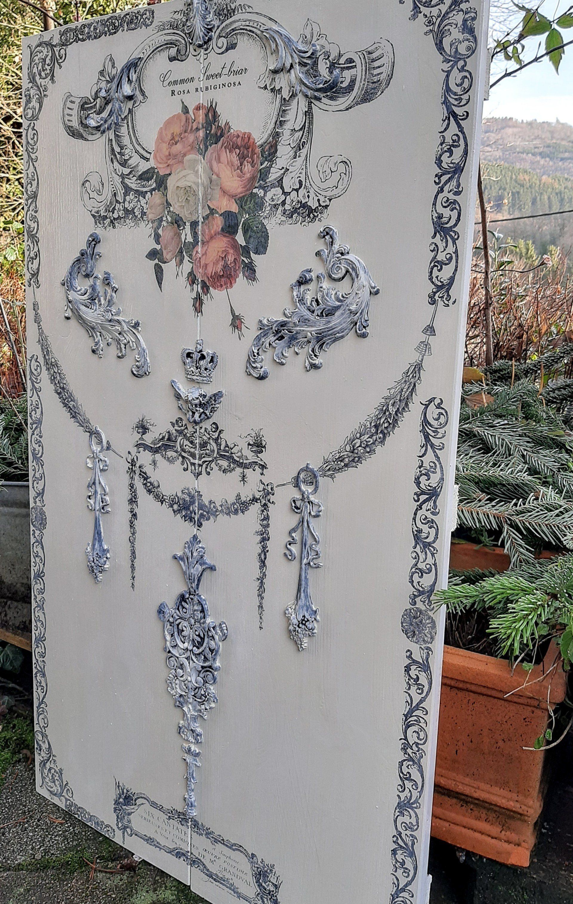 MixedMedia Panel 40x40cm, gestaltet mit Rokoko Ornamenten - 39,-€ auf Anfrage