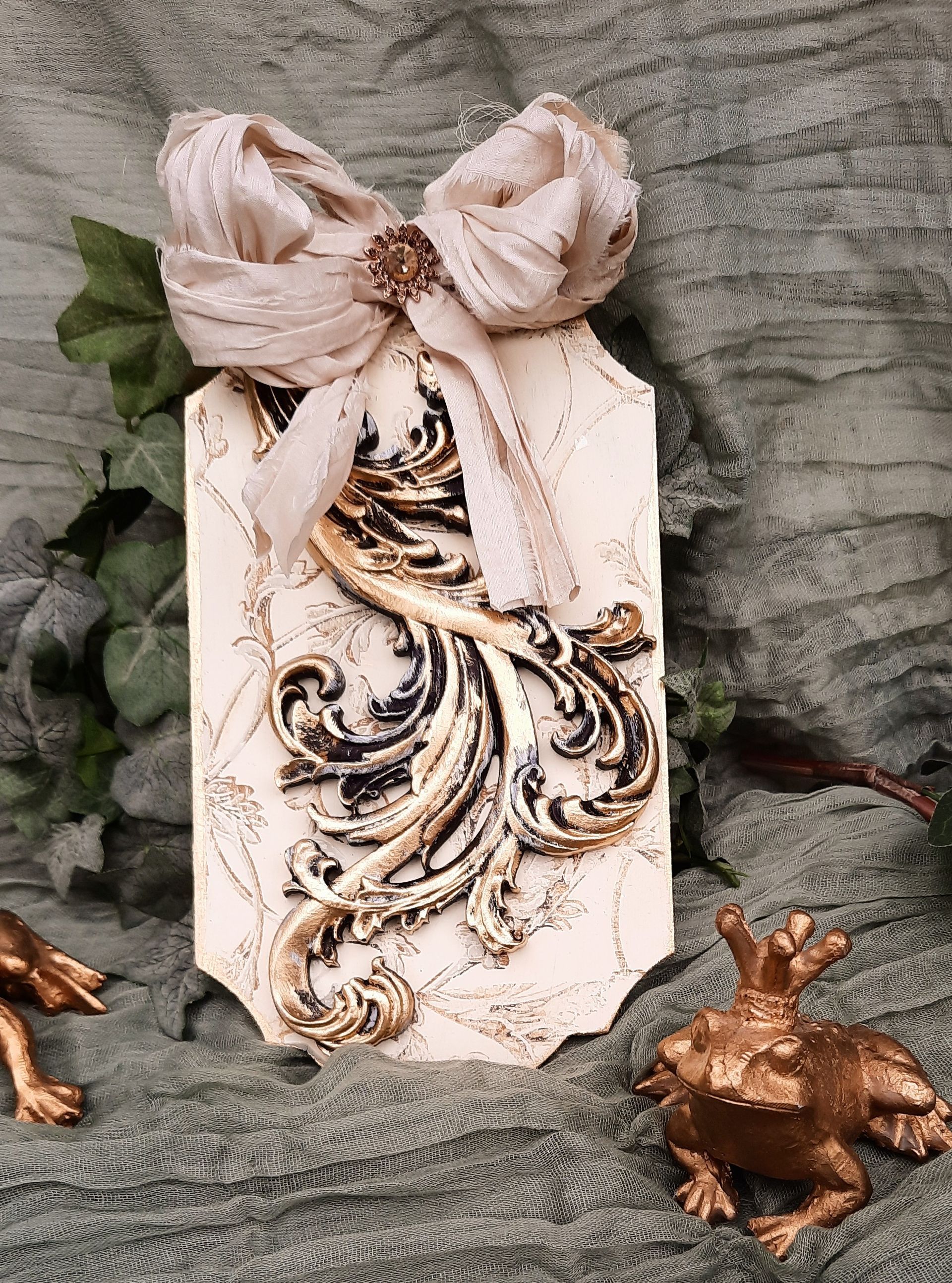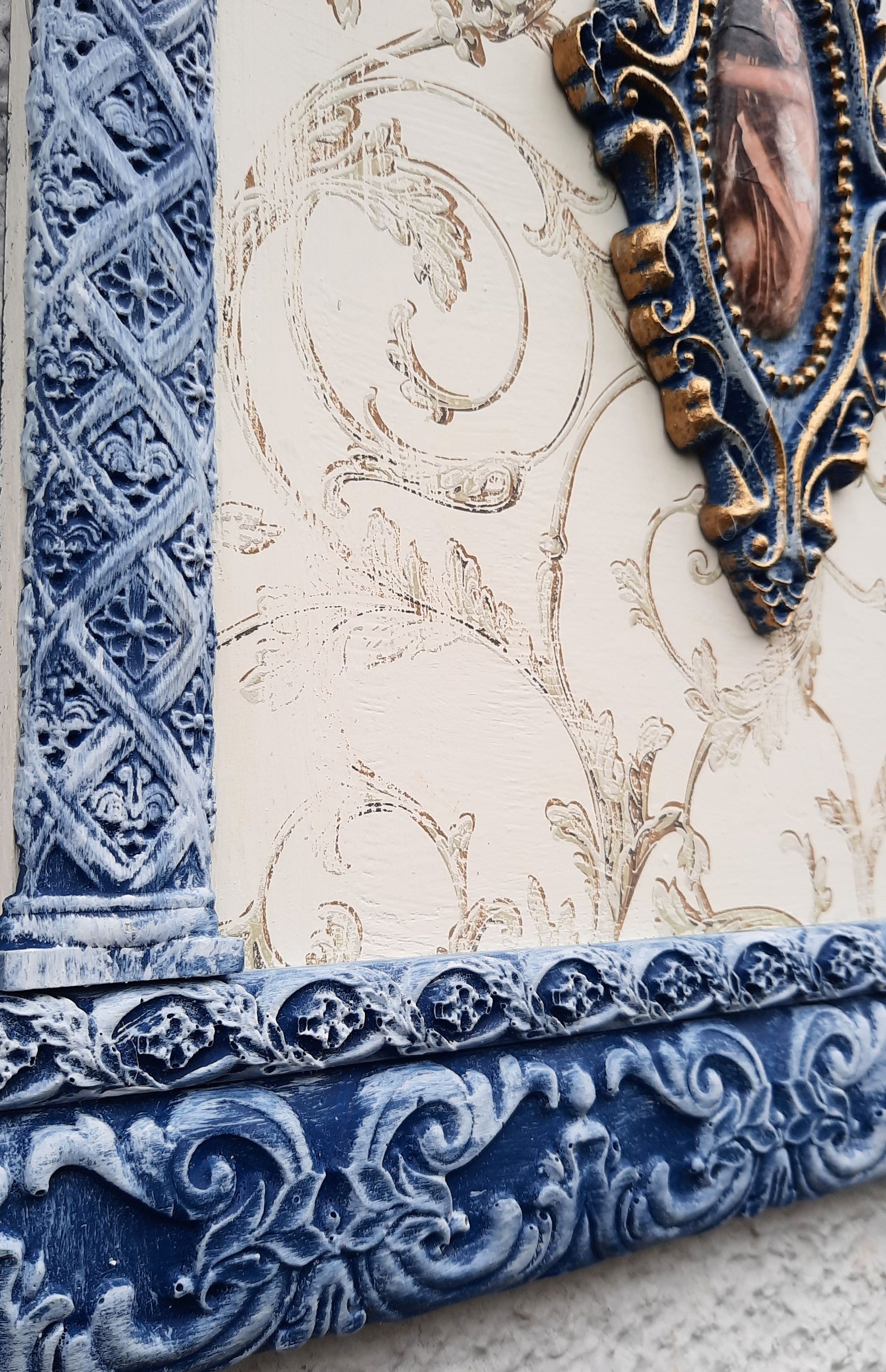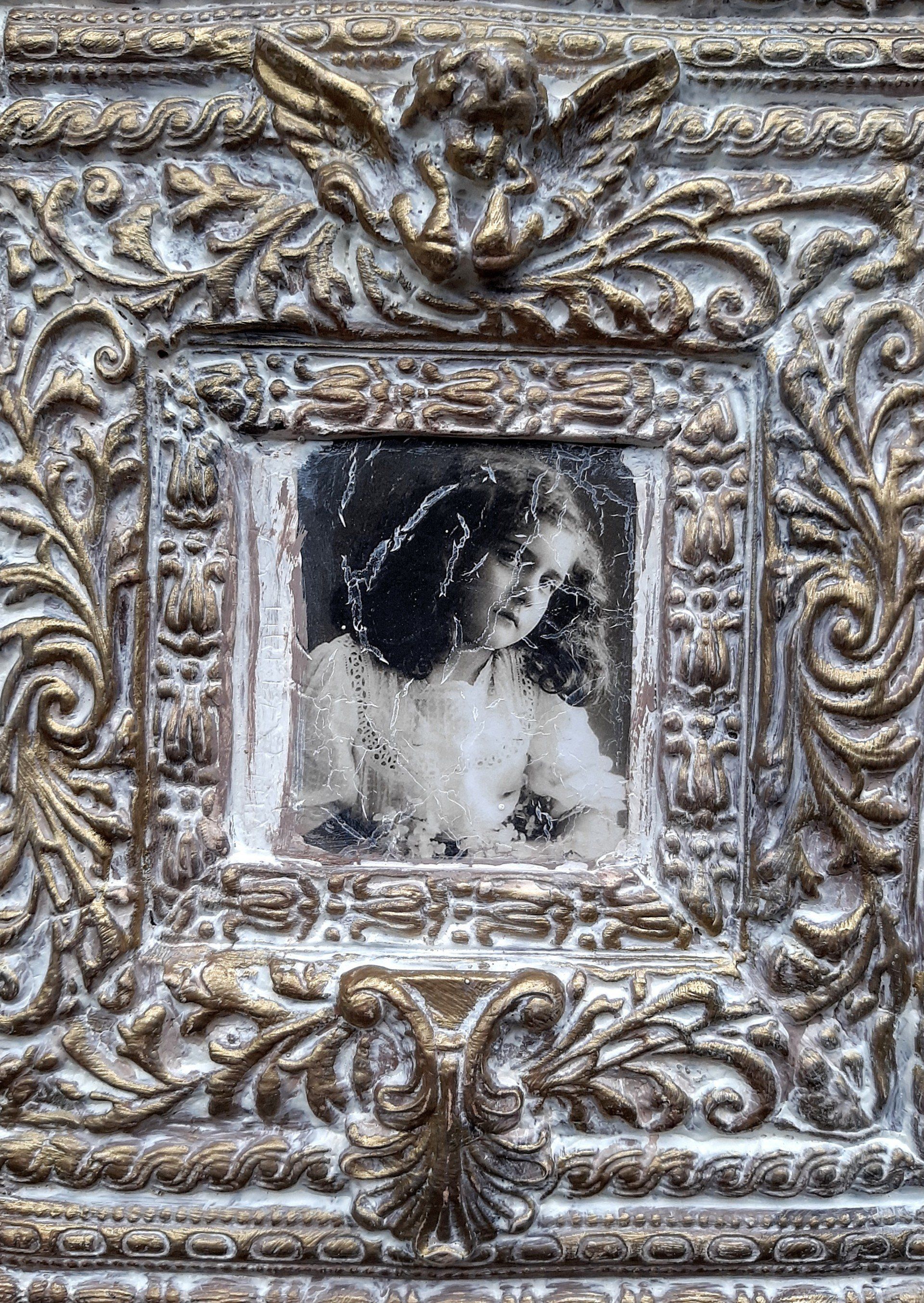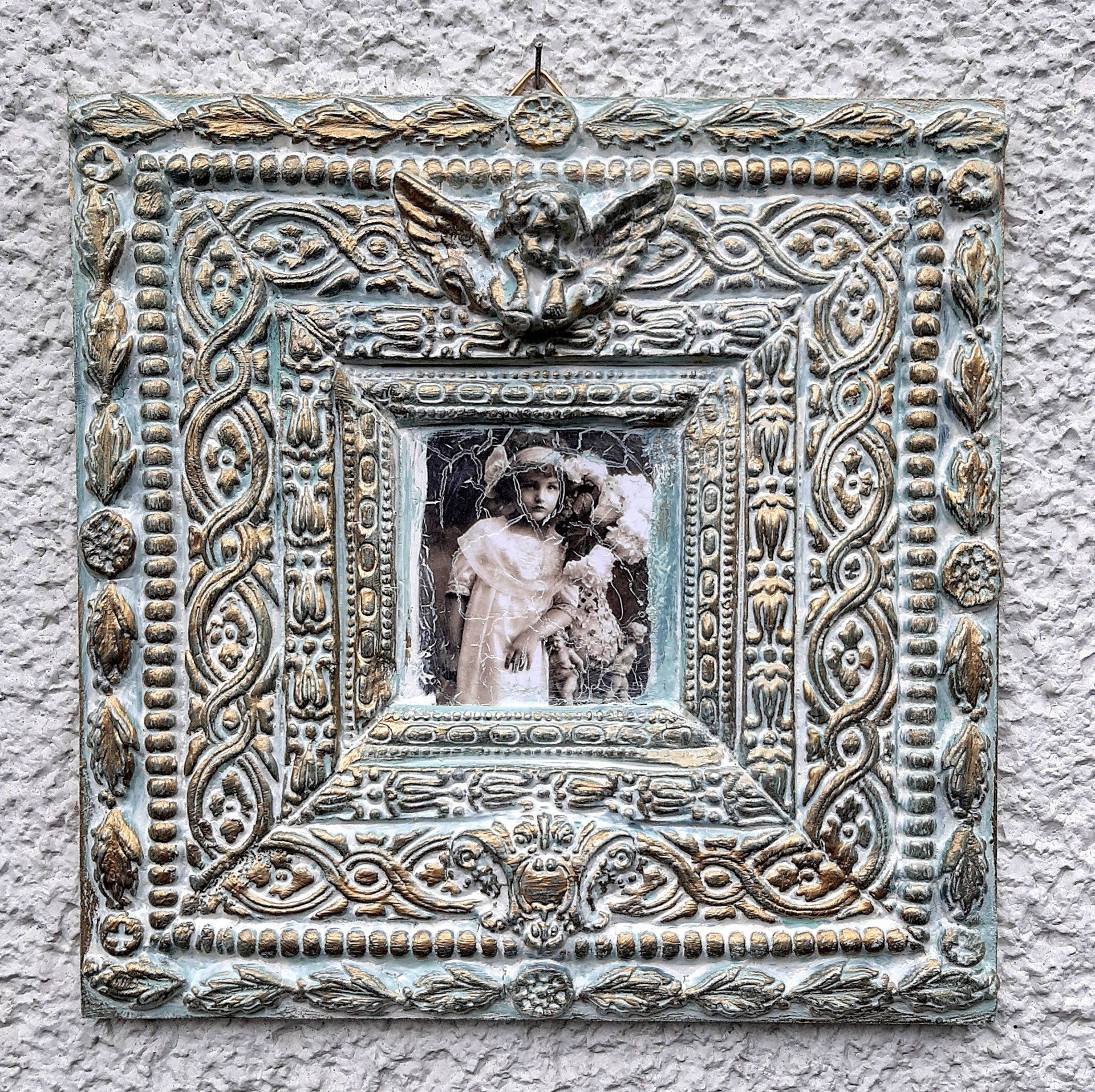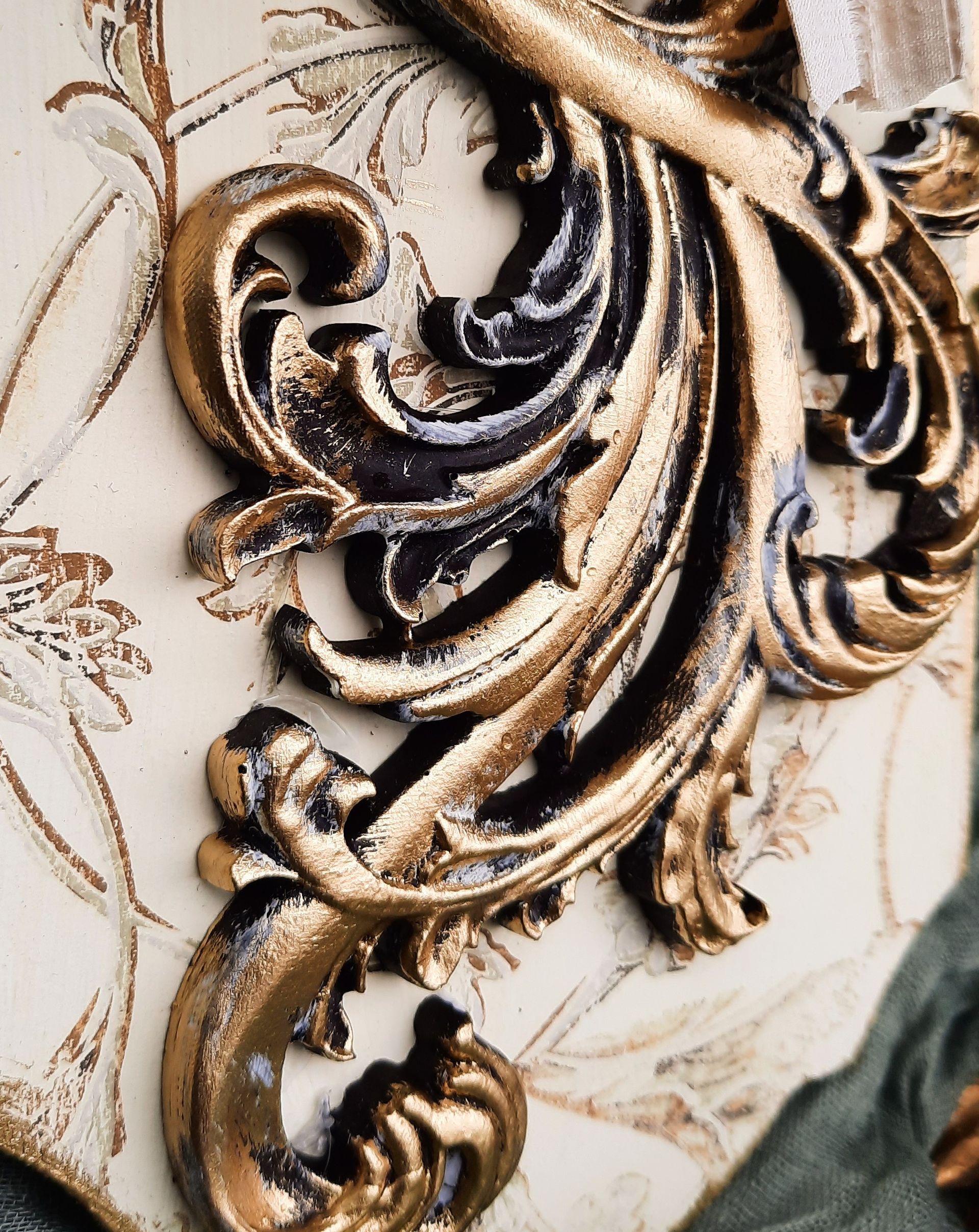 MixedMedia Panel 40x40cm, gestaltet mit Rokoko Ornamenten - 39,-€ auf Anfrage