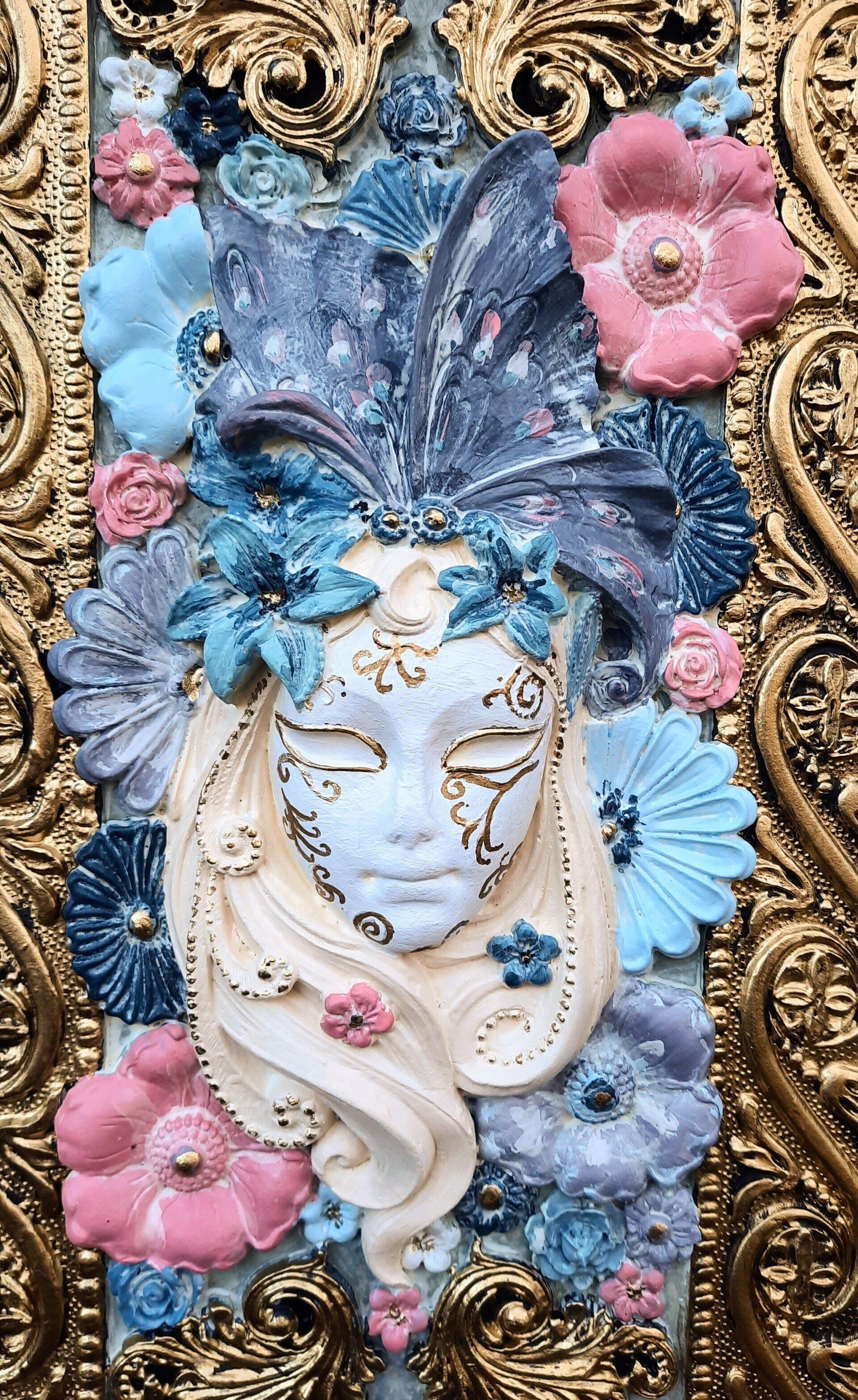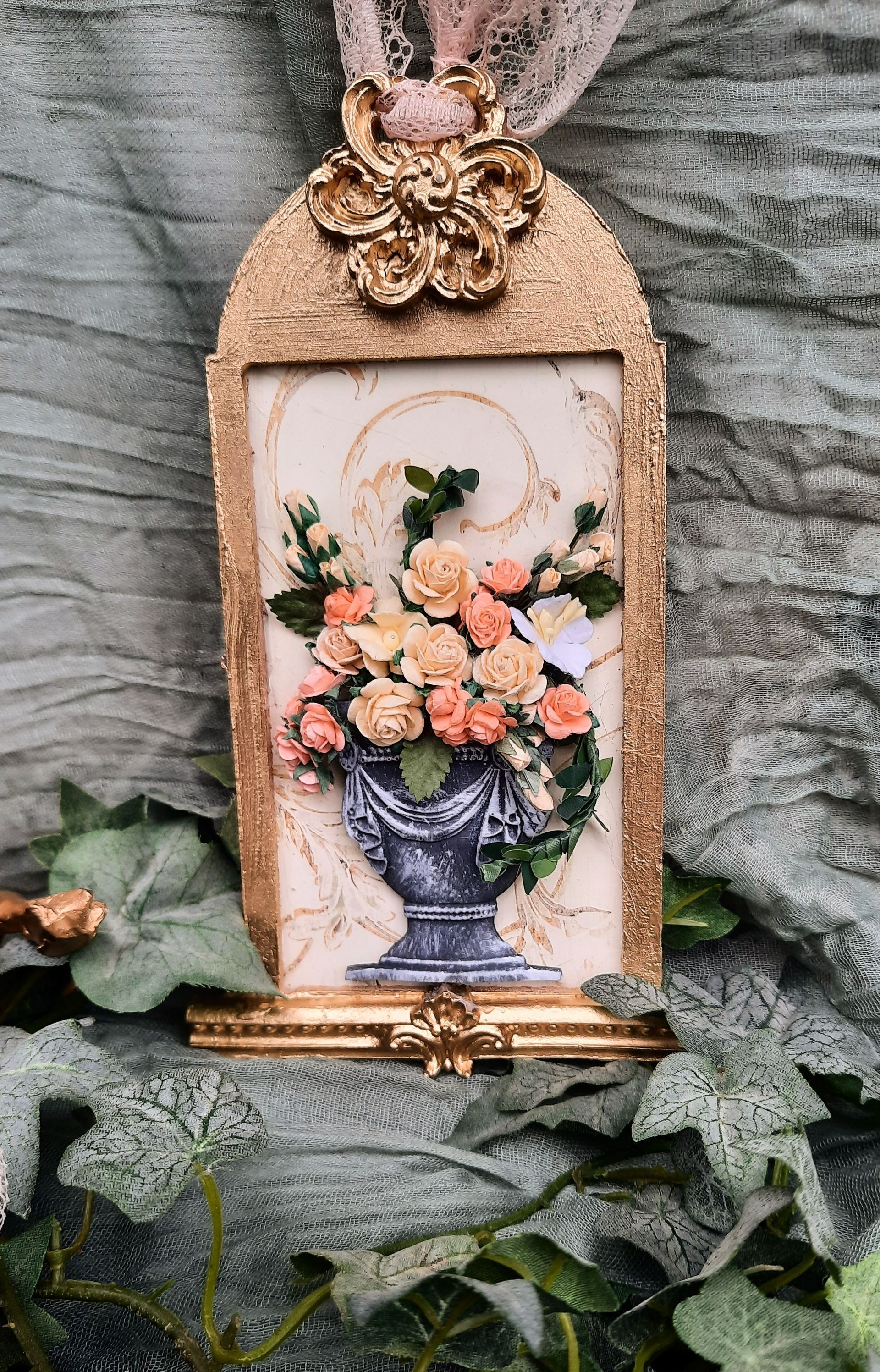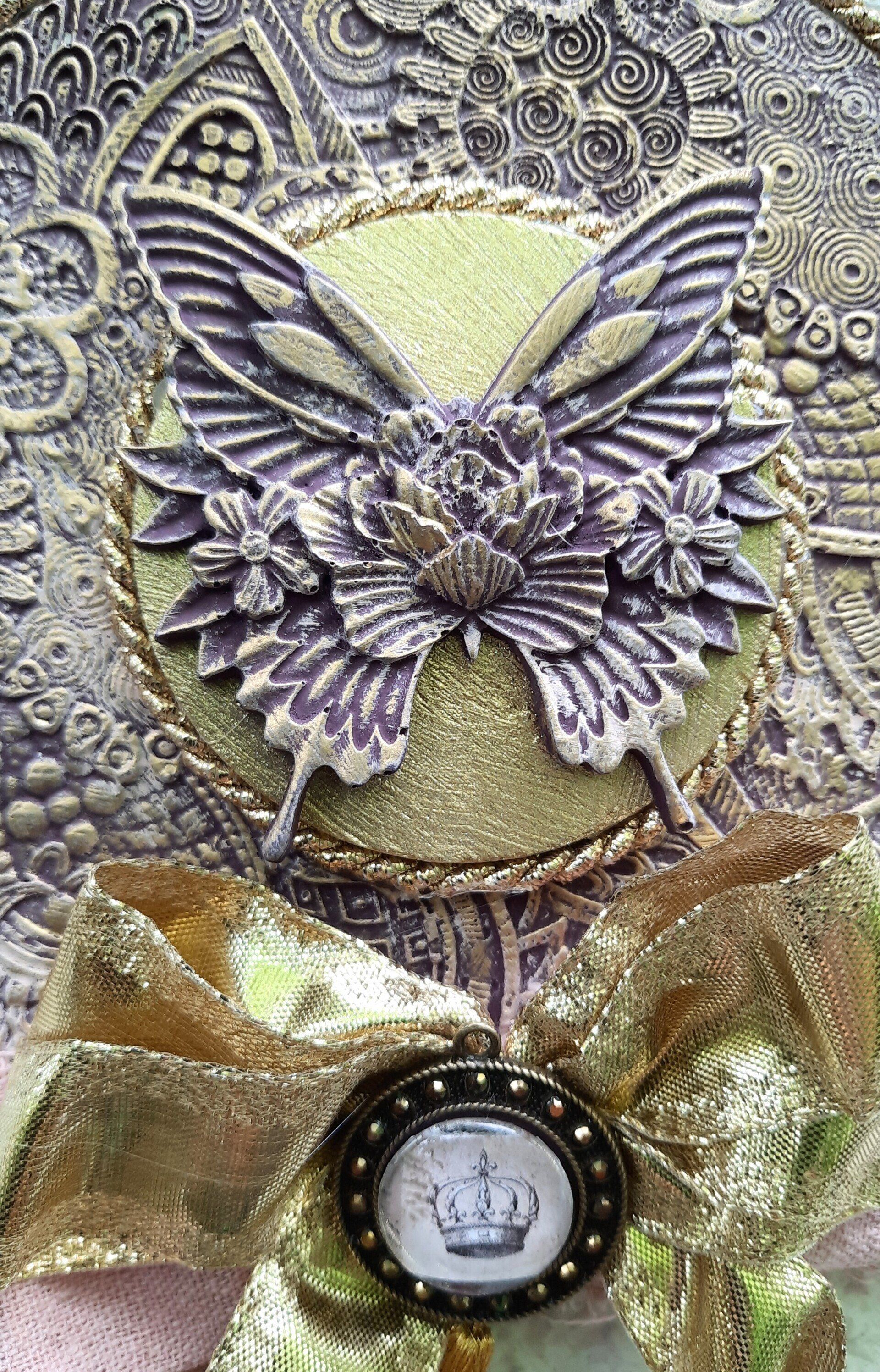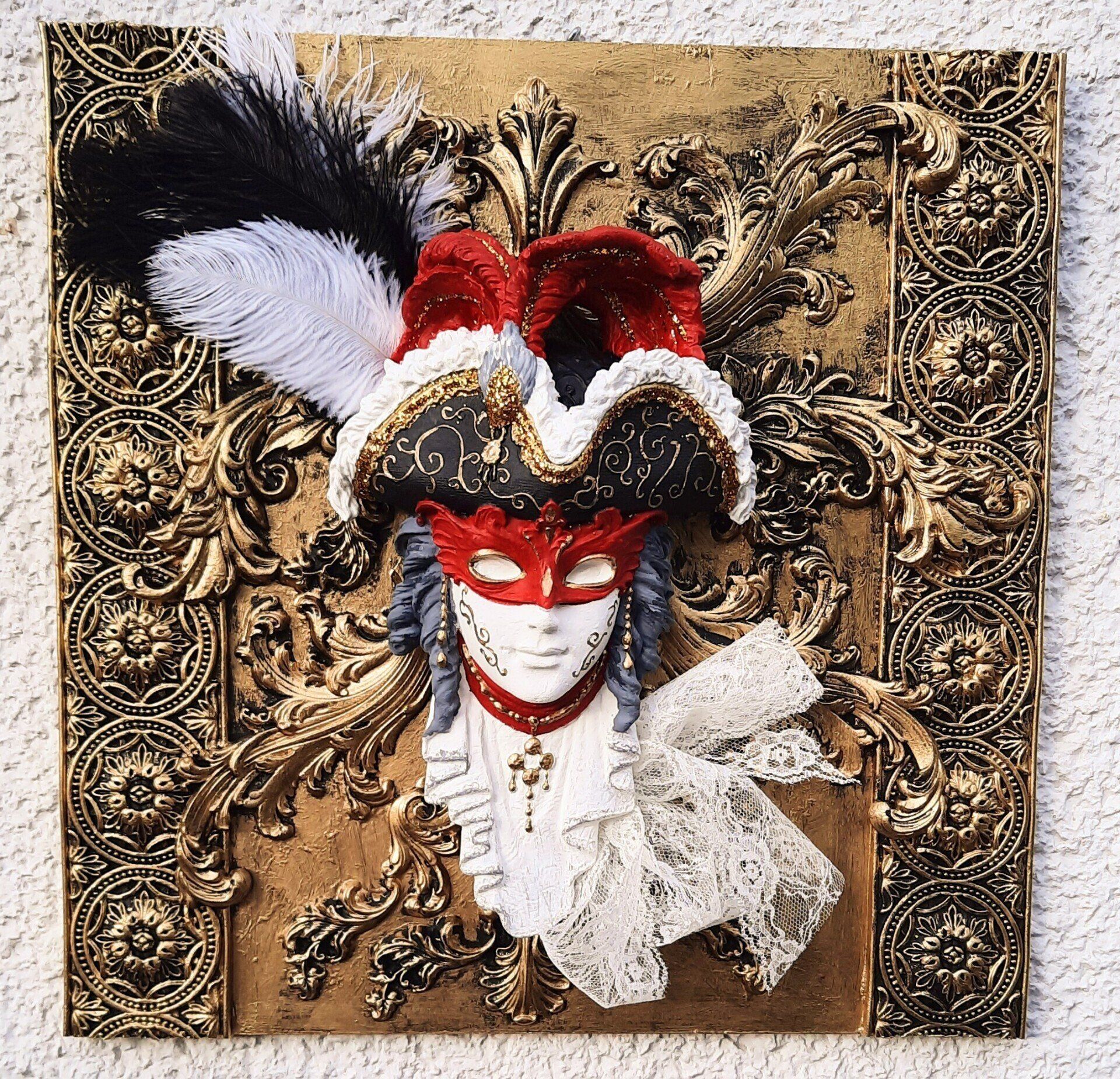 MixedMedia Projekt in Jugendstil-Optik, eine opulent gestaltete MDF Platte 30x30cm auf einer gestalteten 40x40cm Platte -