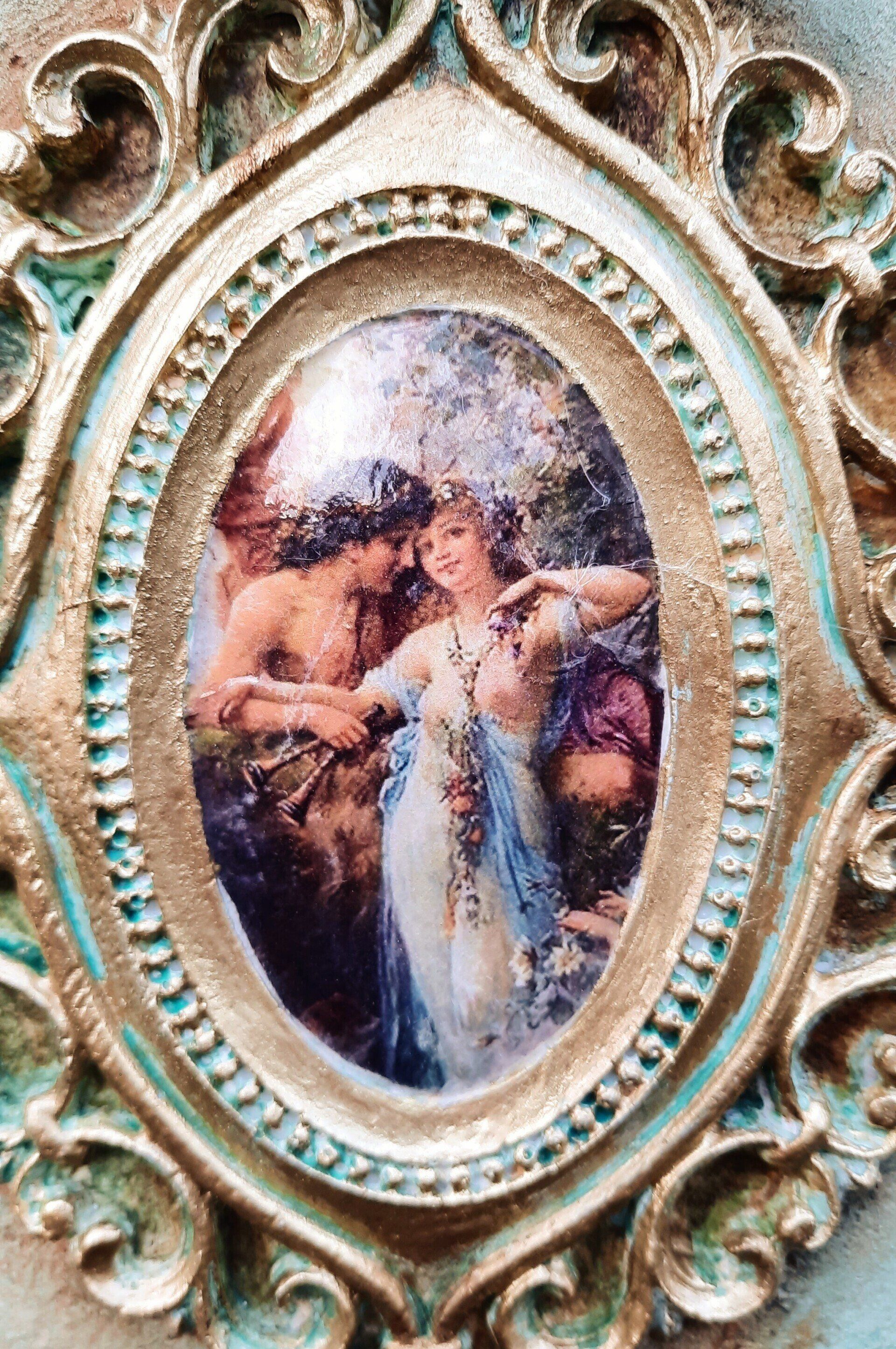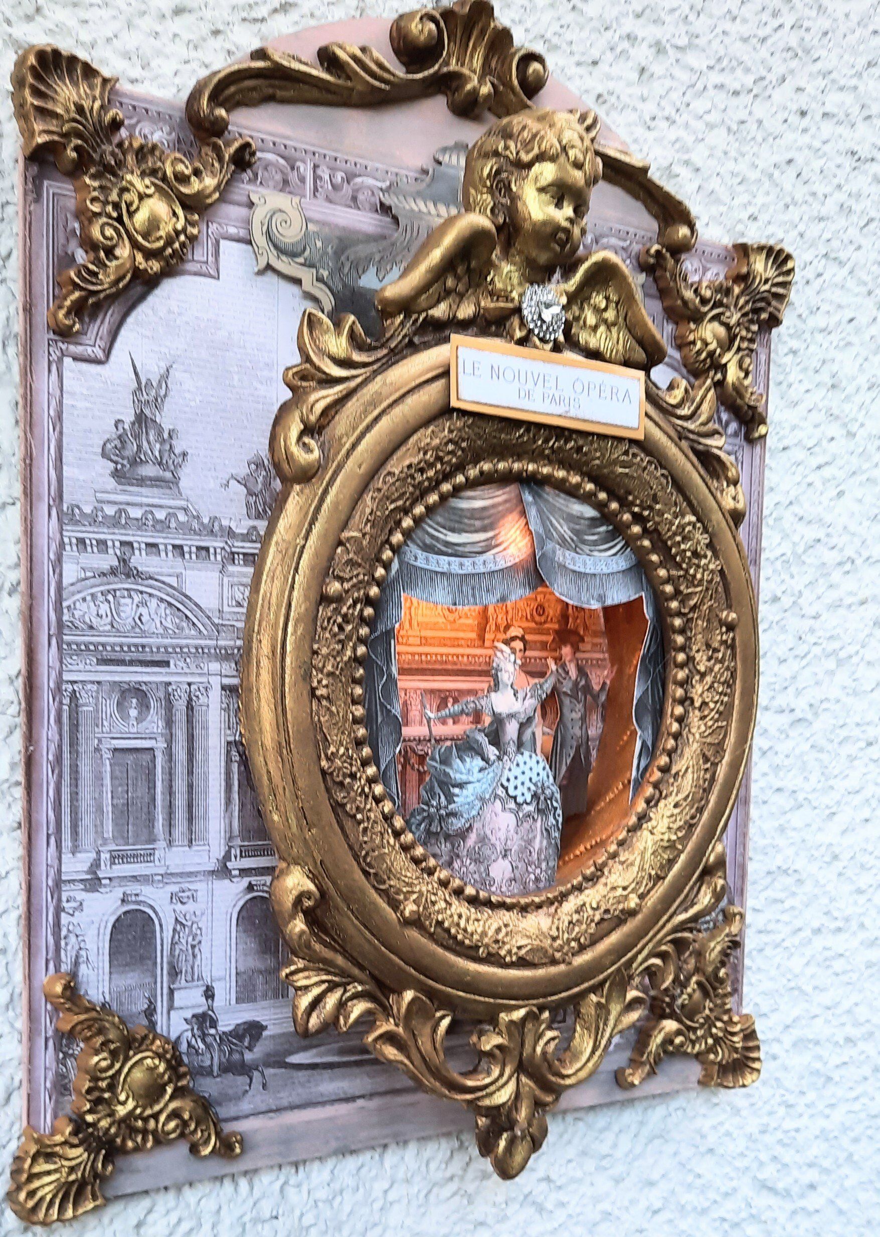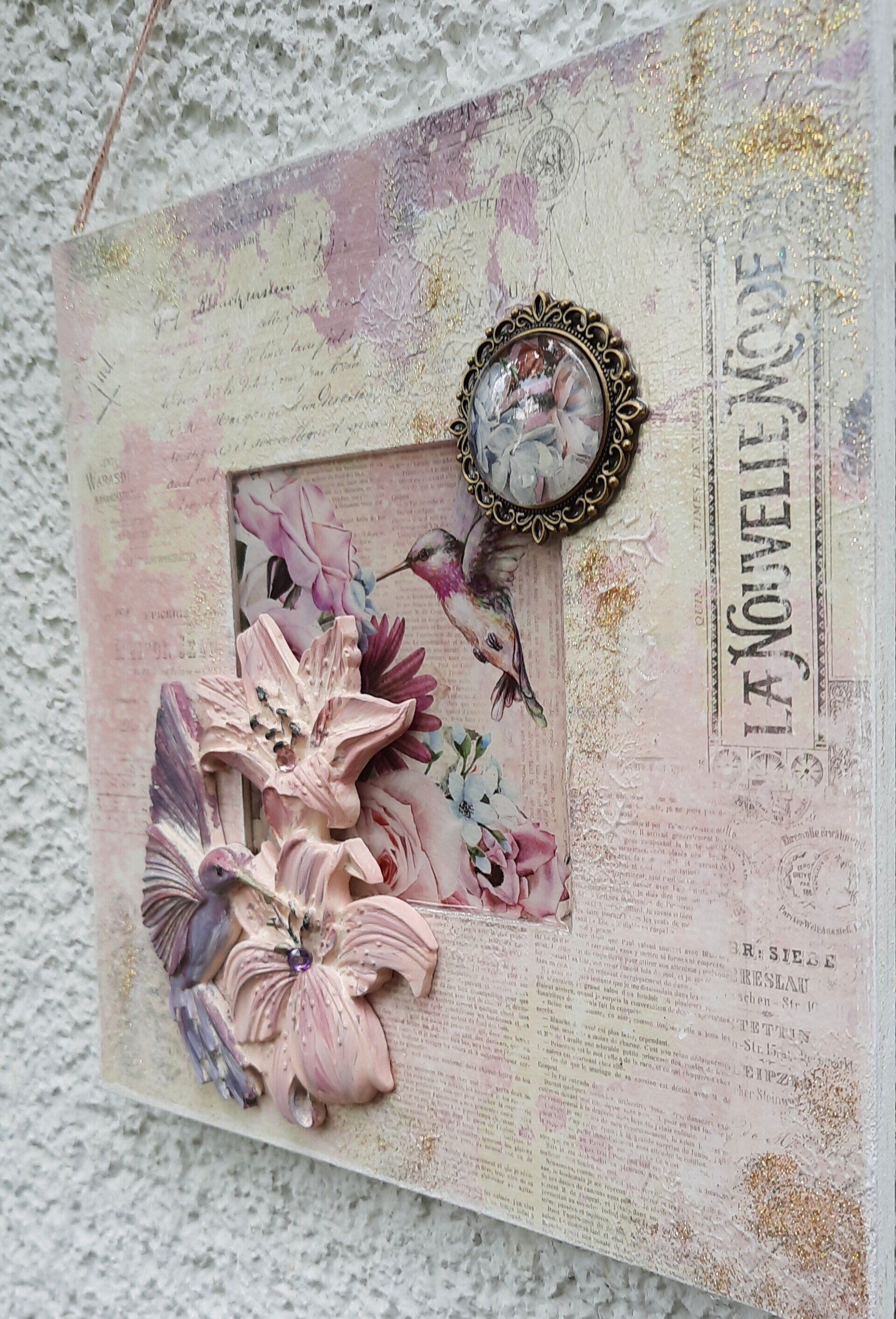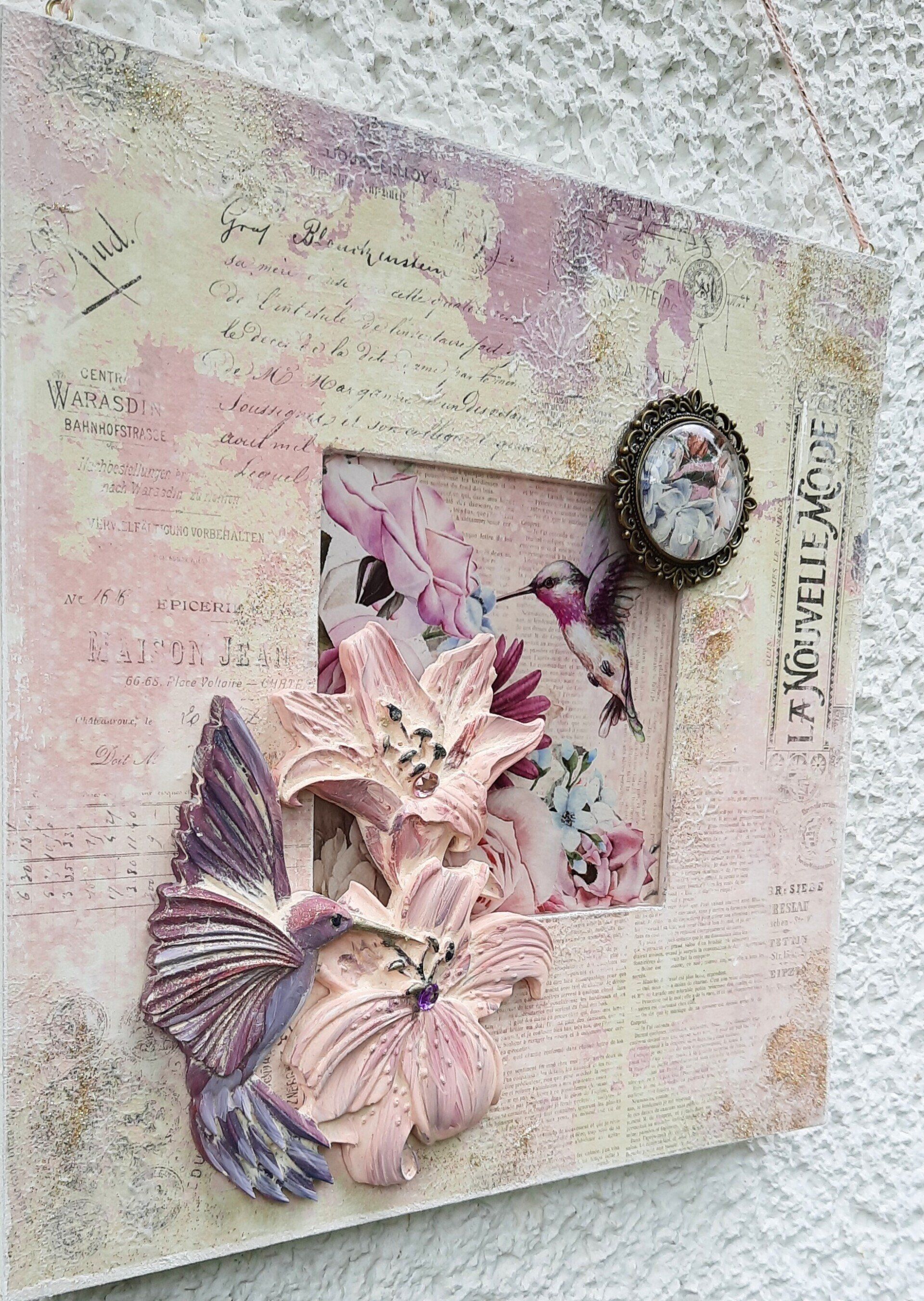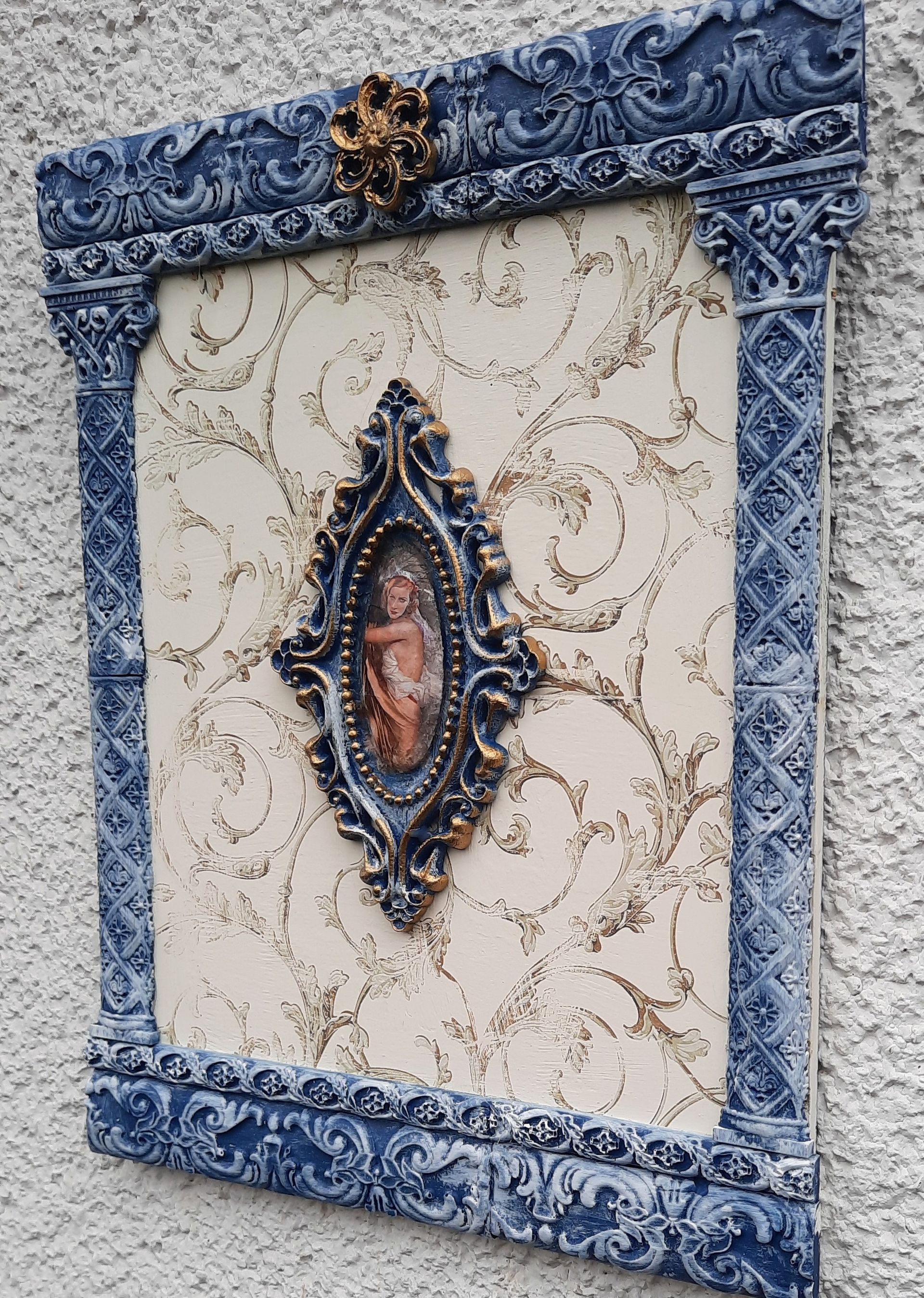 Romantisches Deko Bild aus 2 Holzrahmen aufwändig gestaltet, teilweise mit Resin überzogen, ca.35x40cm - 35,-€ auf Anfrage