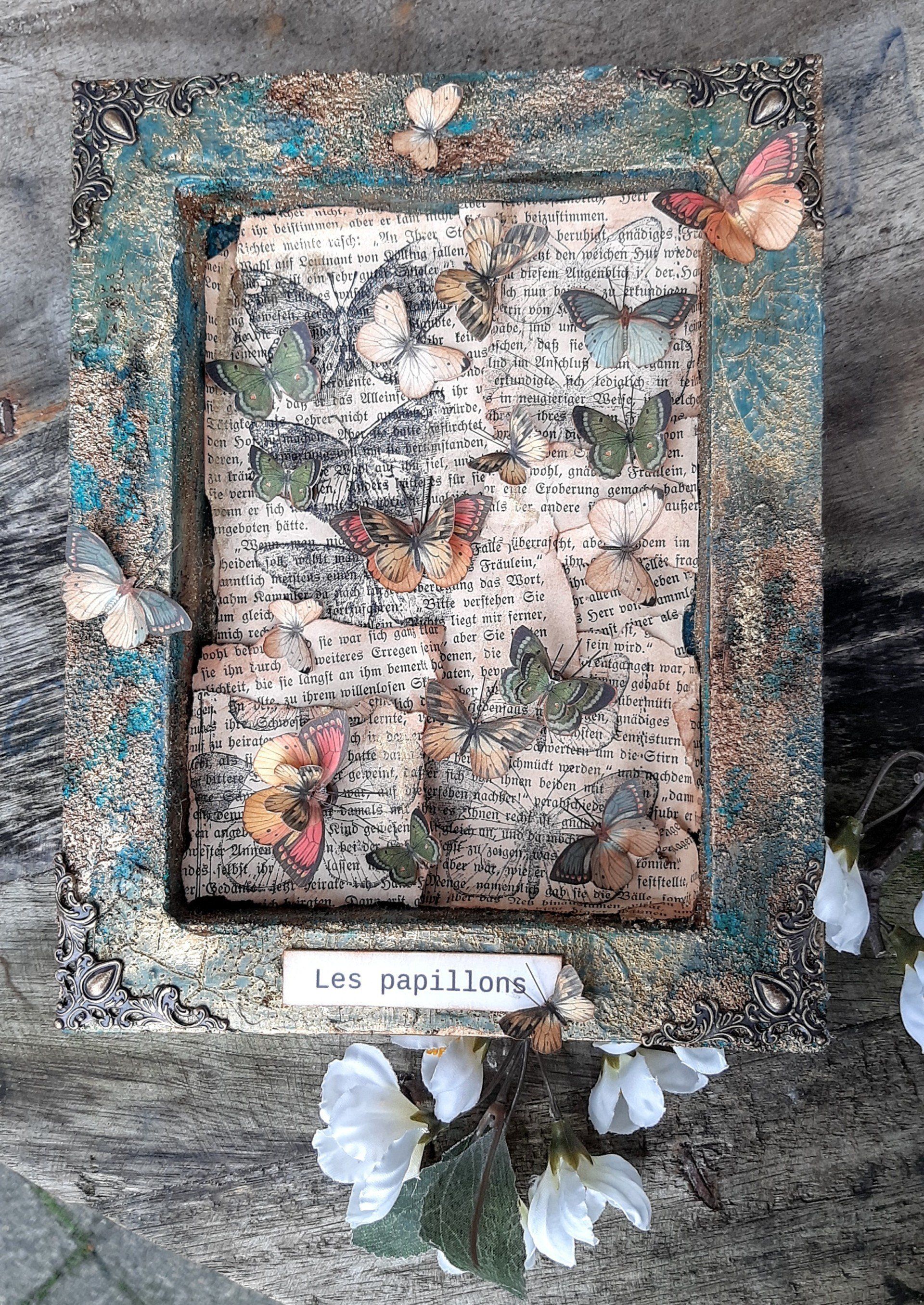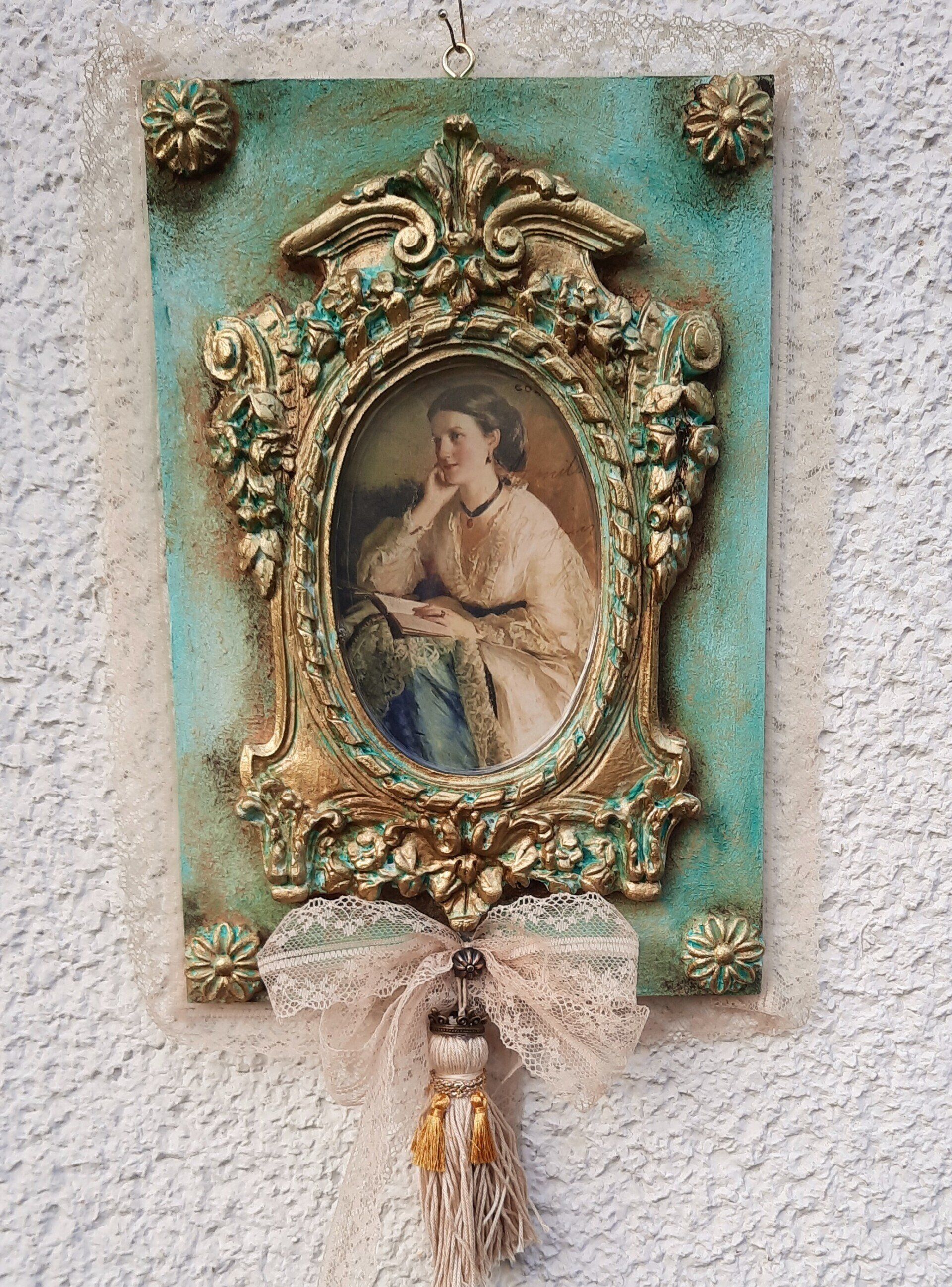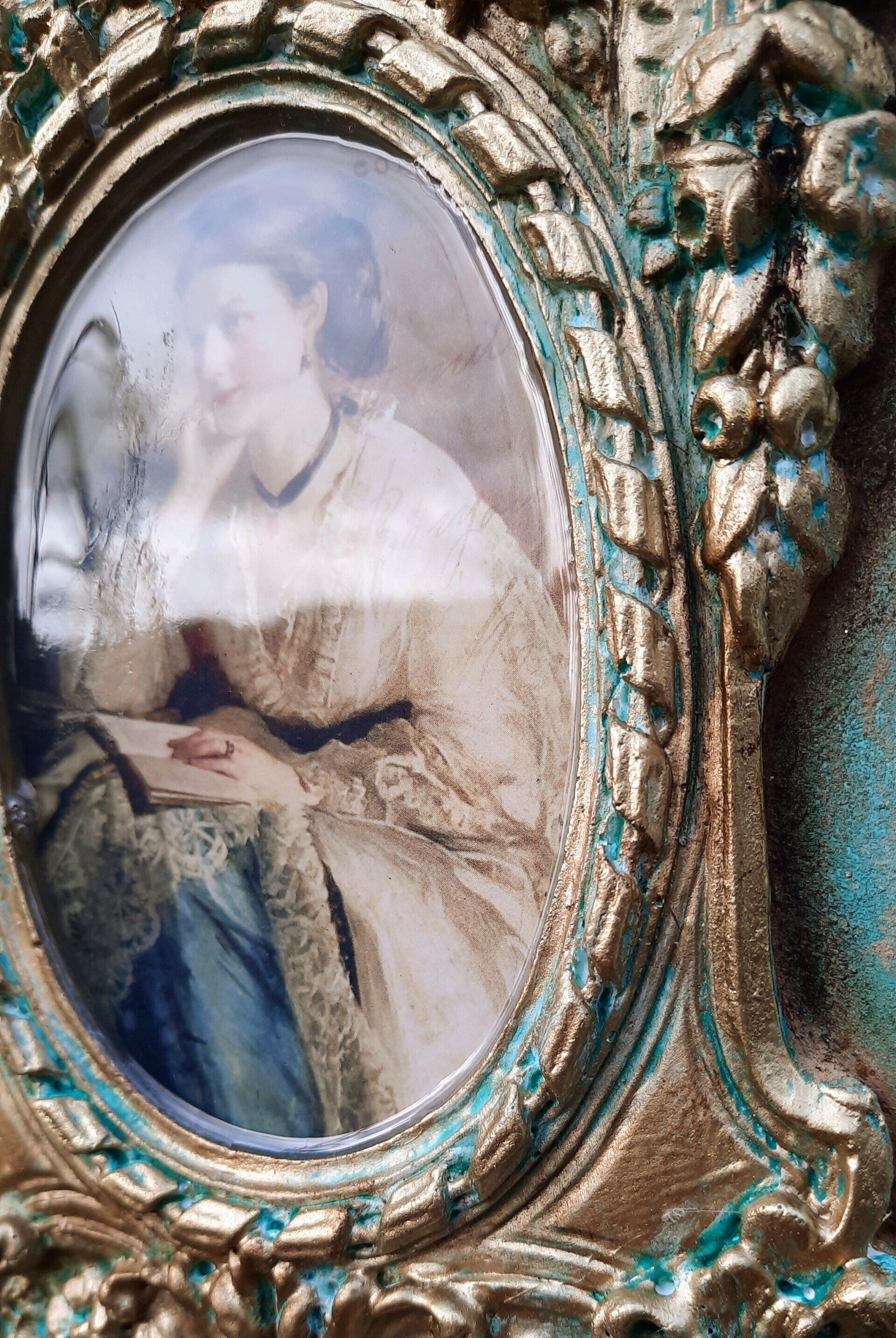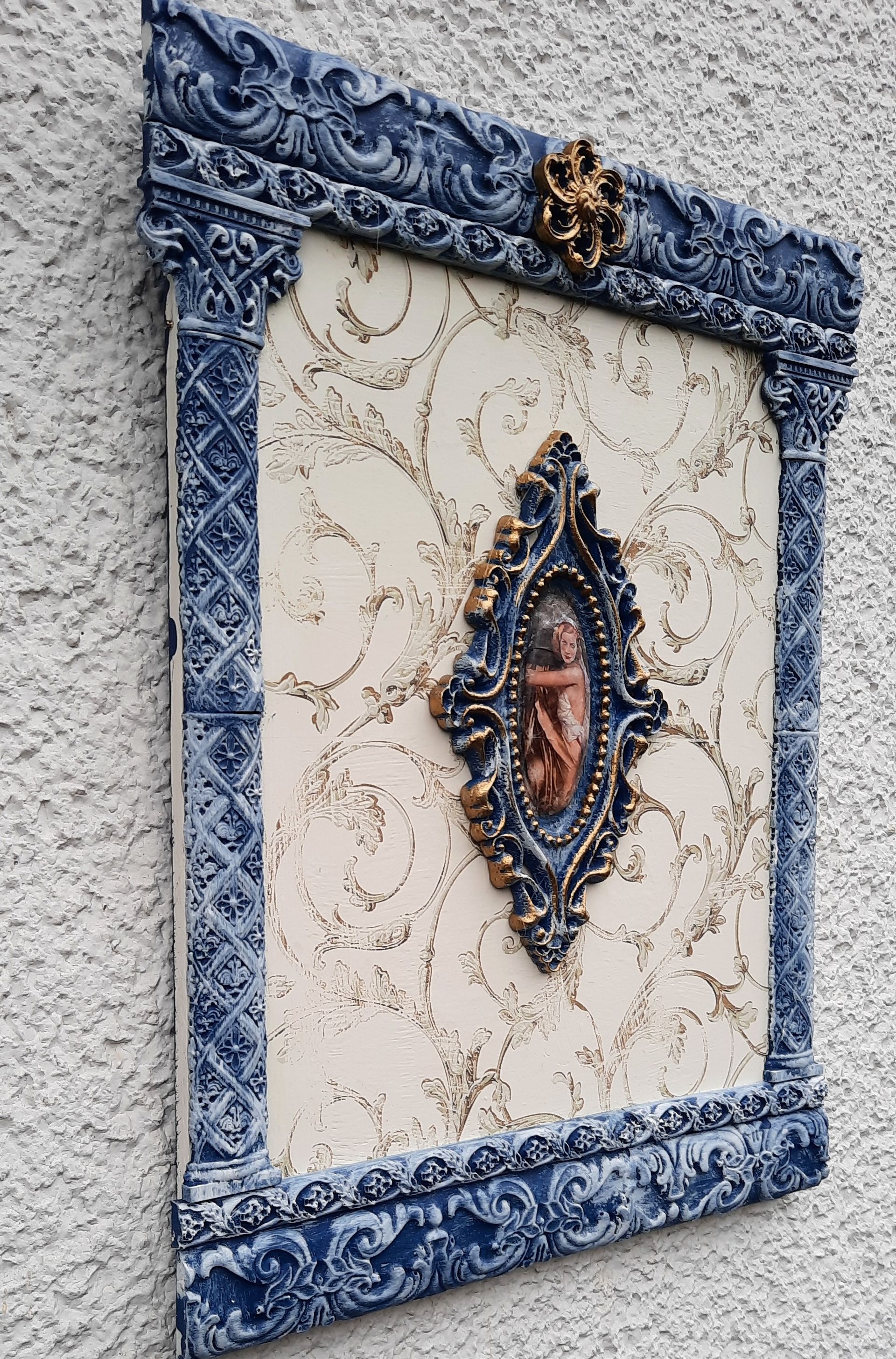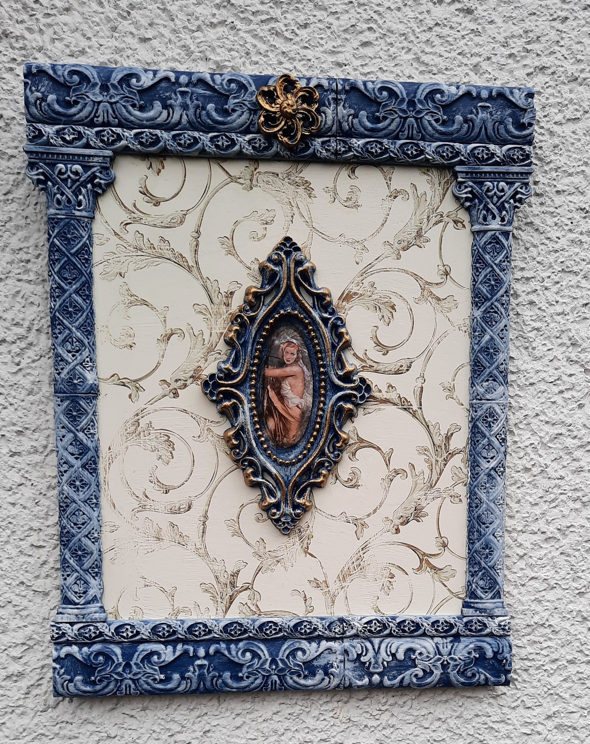 Romantisches Deko Bild aus 2 Holzrahmen aufwändig gestaltet, teilweise mit Resin überzogen, ca.35x40cm - 35,-€ auf Anfrage