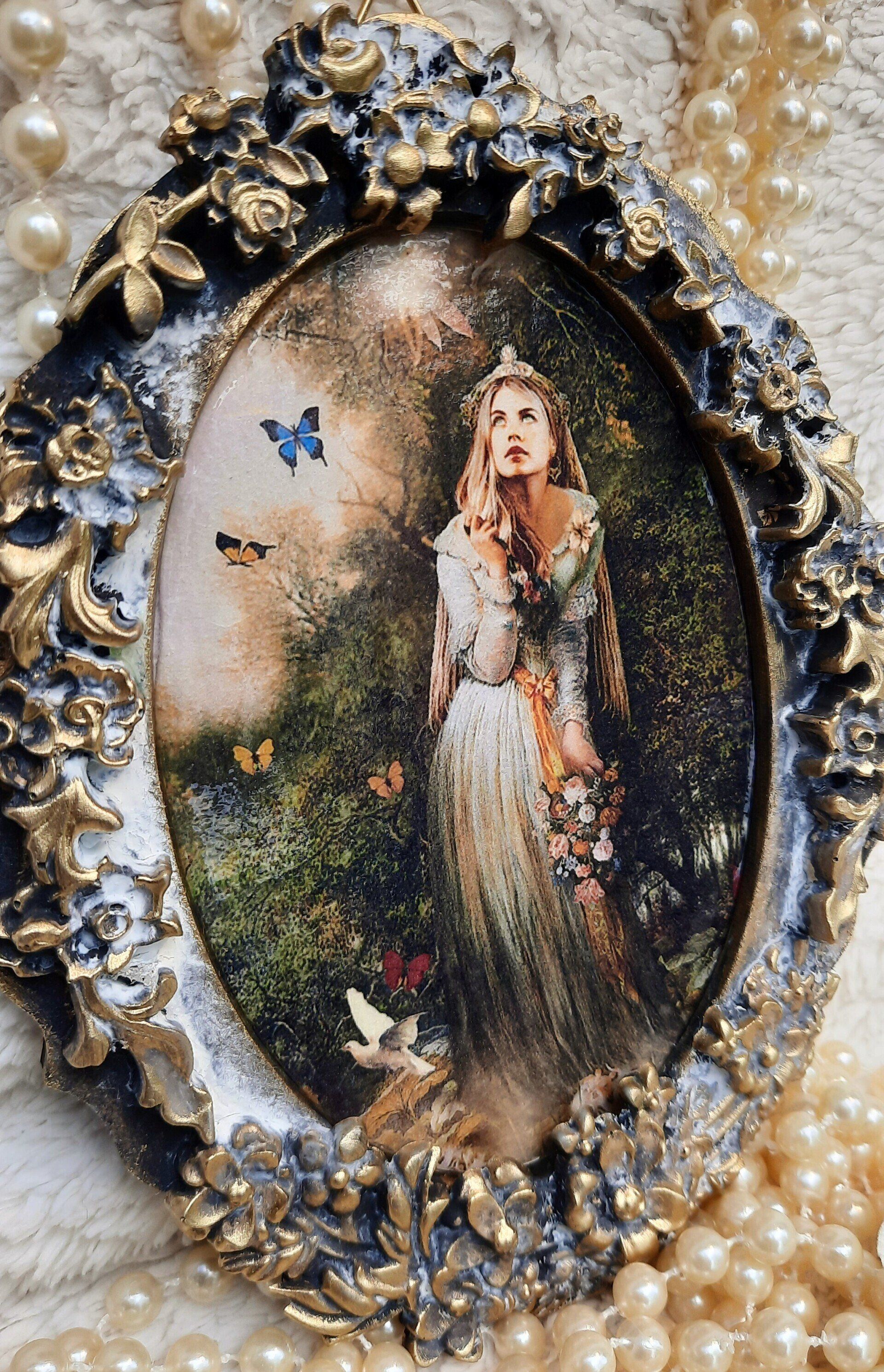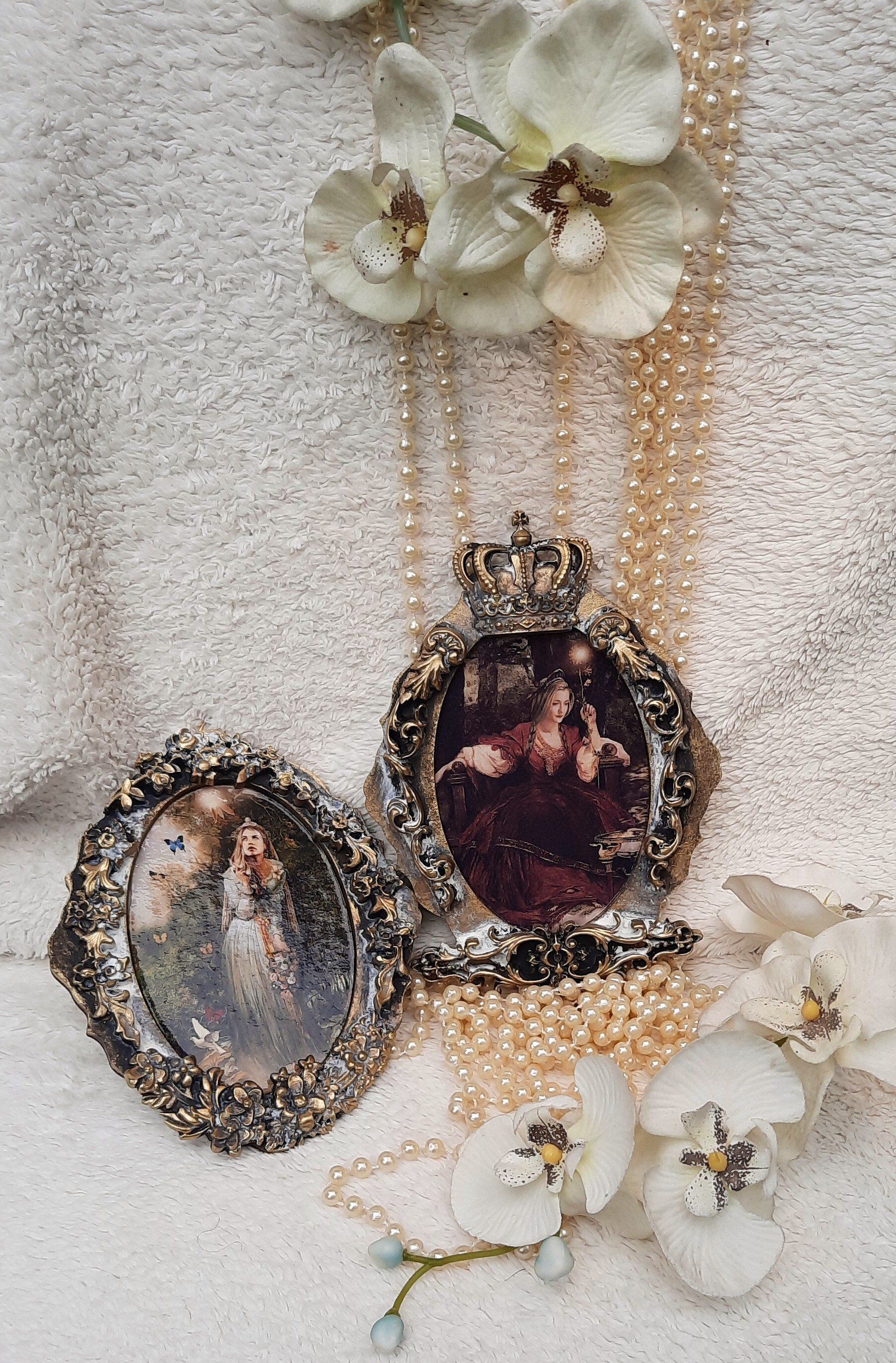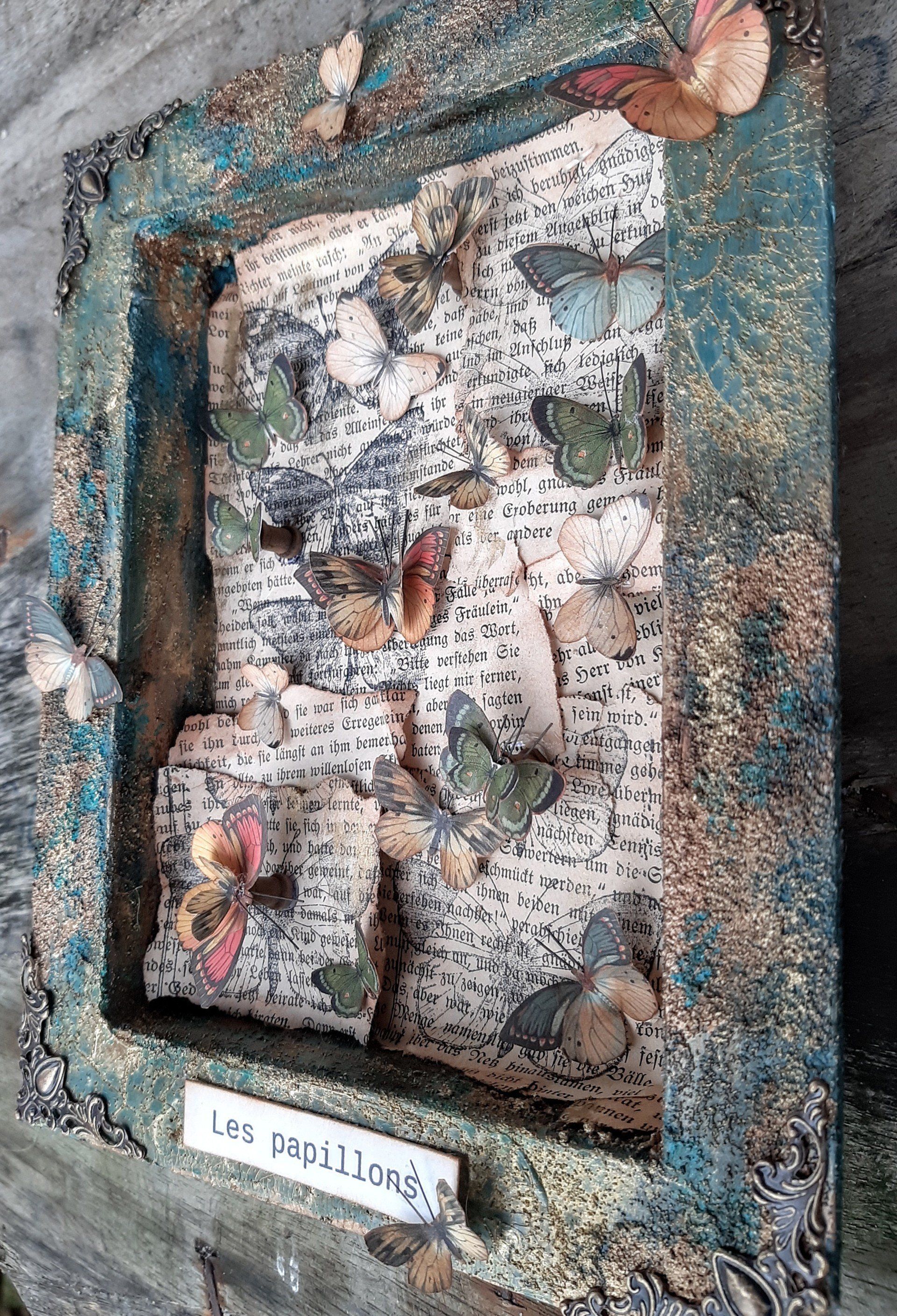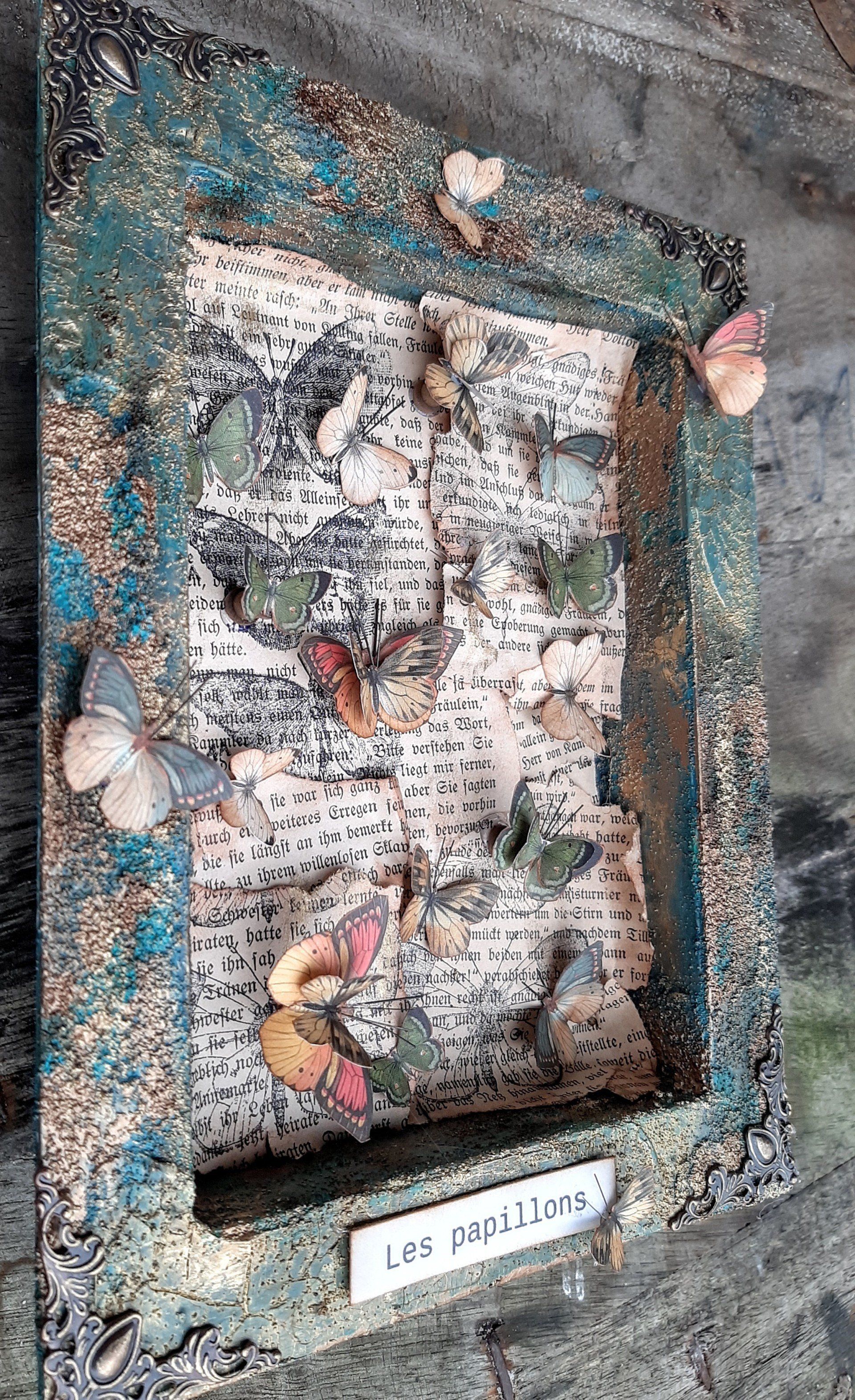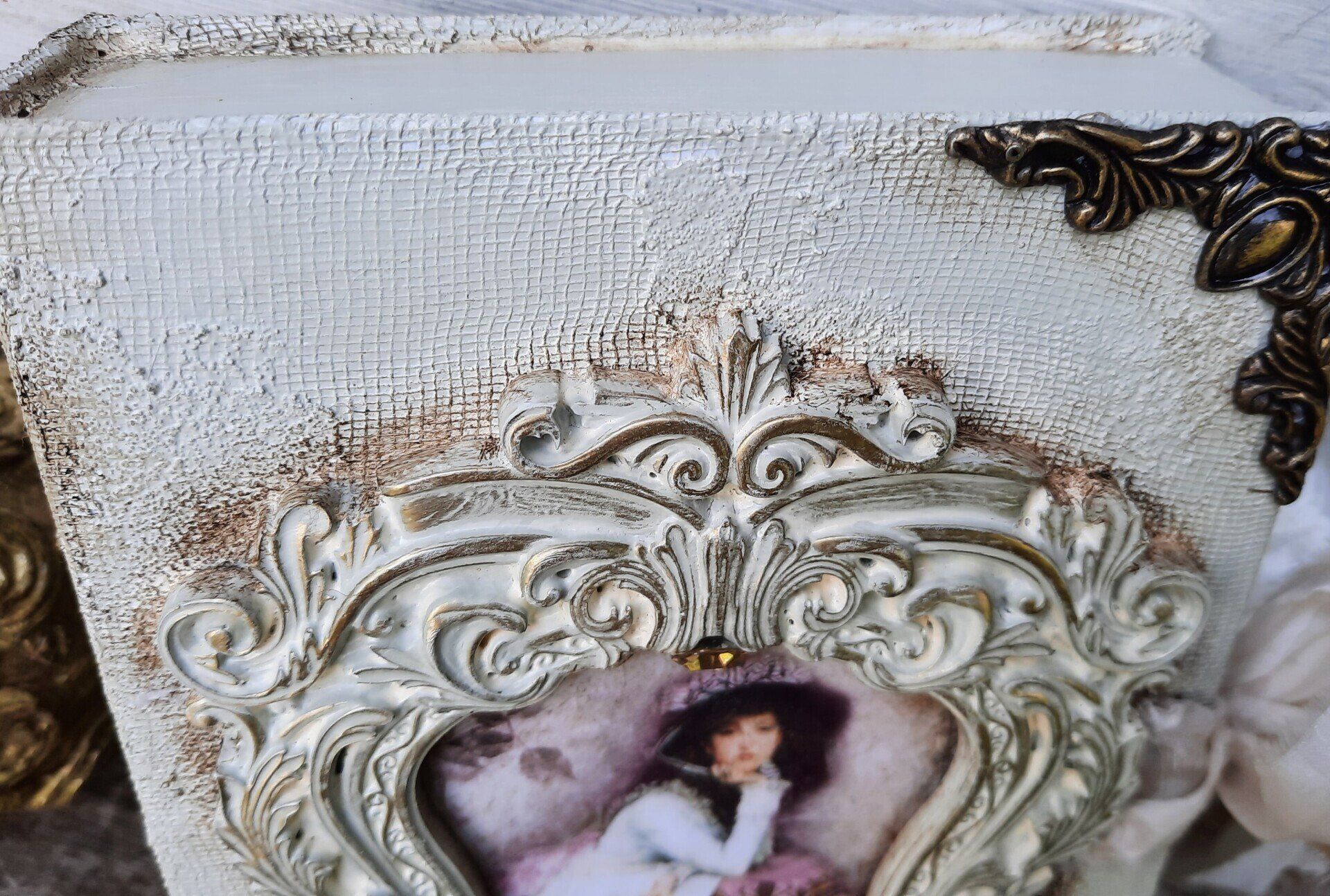 Romantisches Deko Bild aus 2 Holzrahmen aufwändig gestaltet, teilweise mit Resin überzogen, ca.35x40cm - 35,-€ auf Anfrage