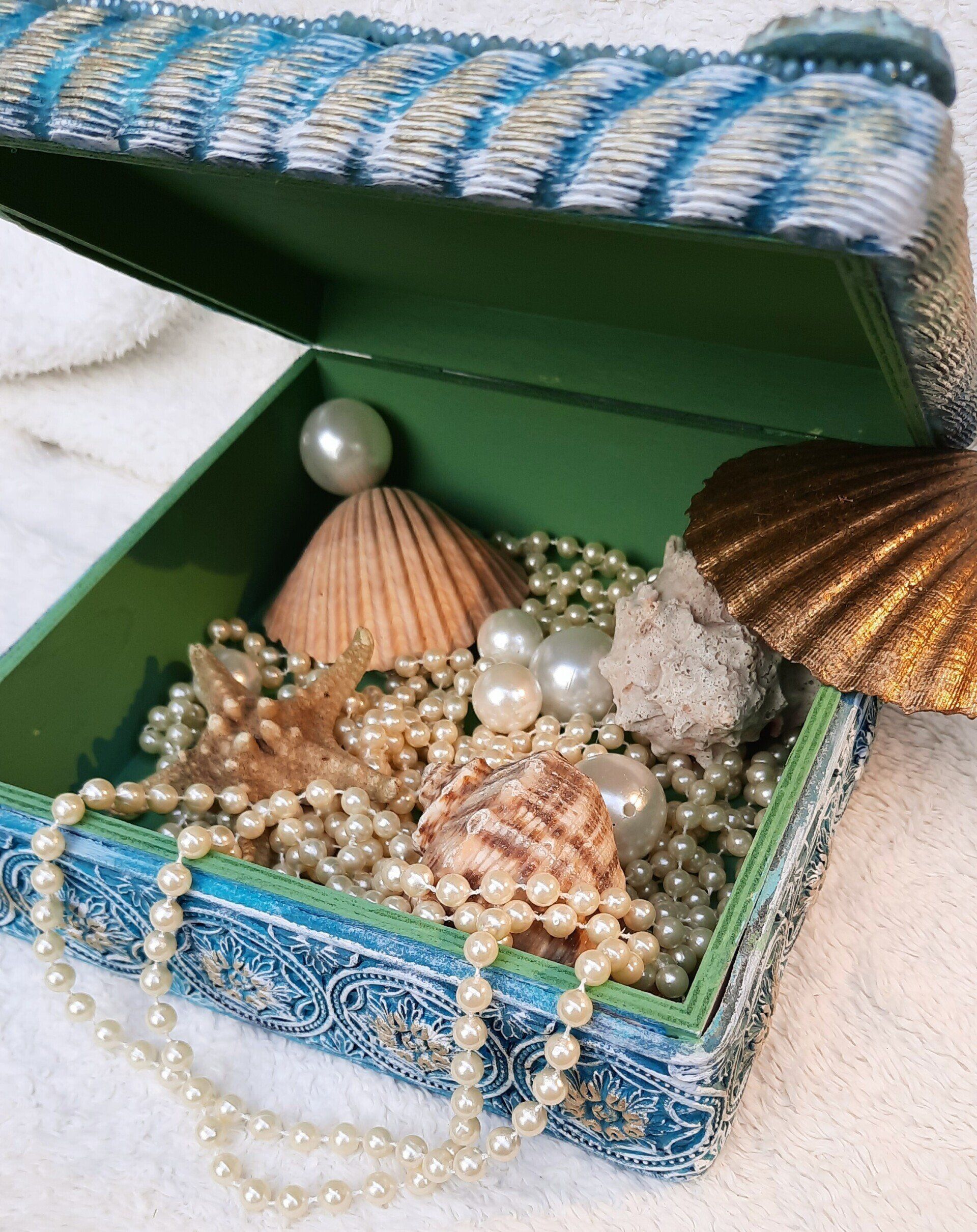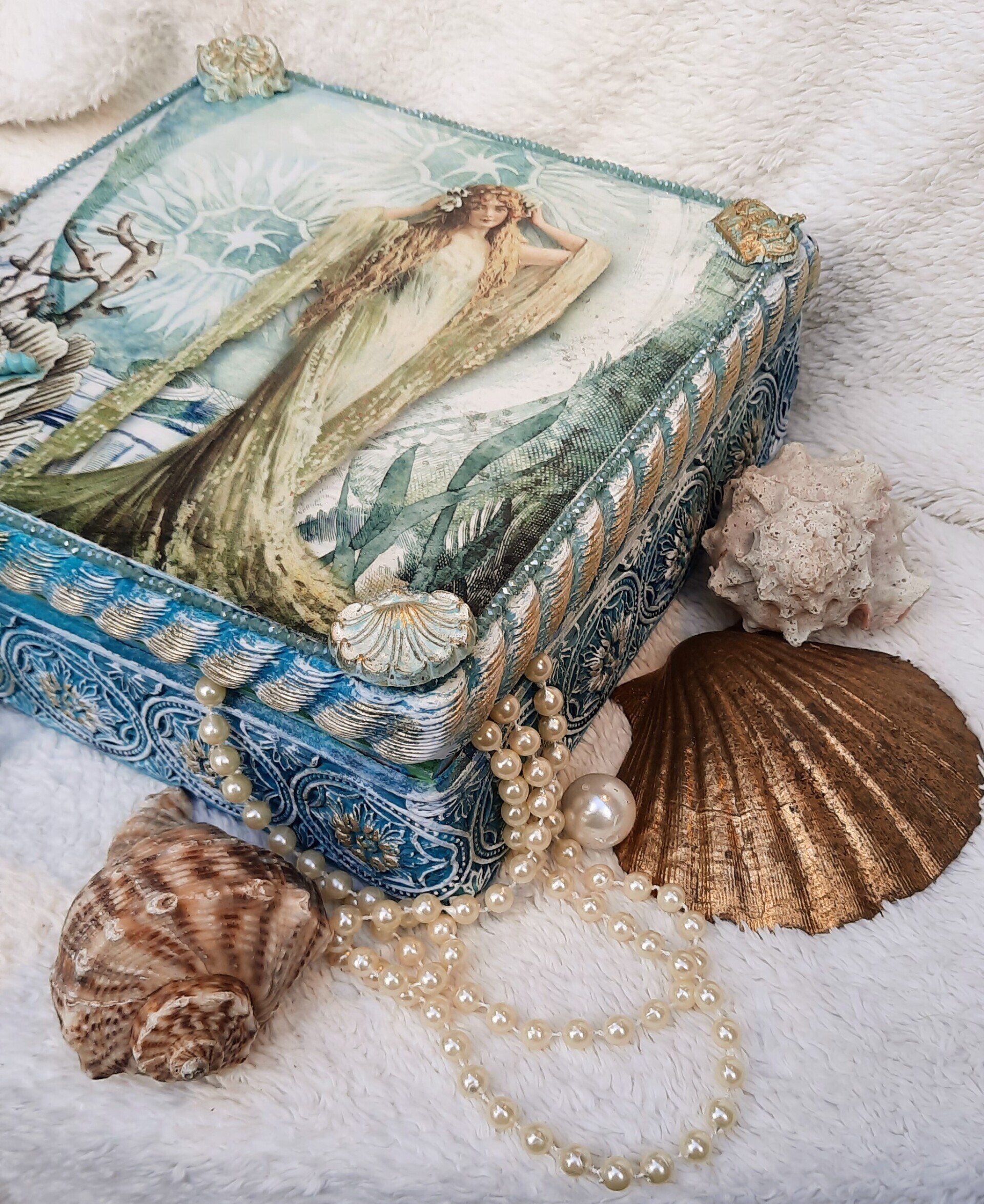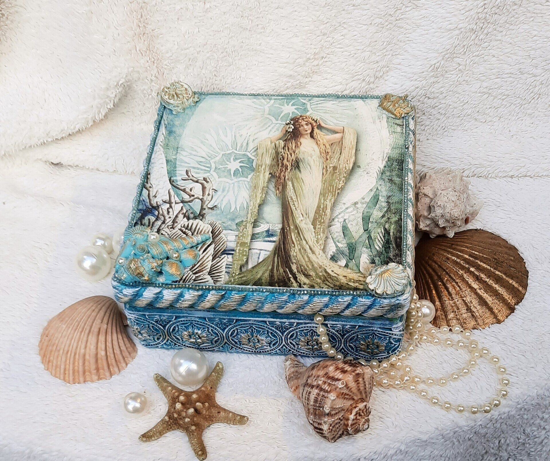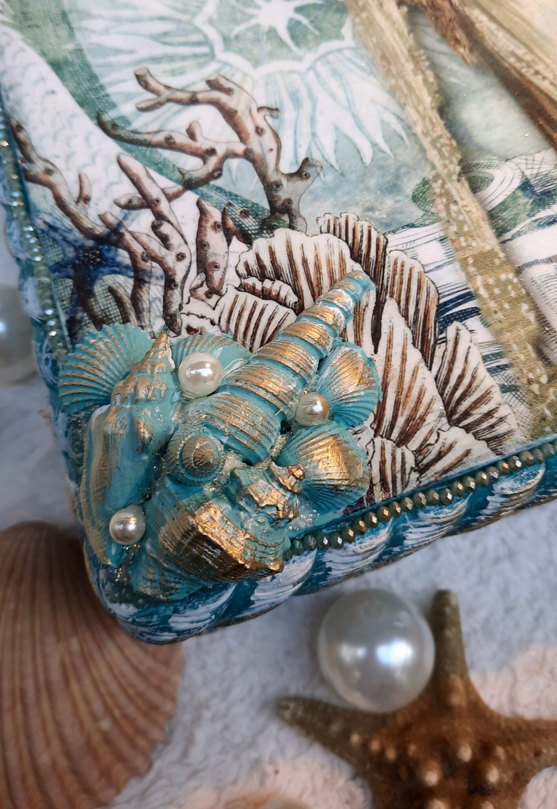 Eine schwere Holzbox aufwändig, fantastisch und maritim gestaltet, ca, 22x22cm, 11cm hoch - 29,-€ auf Anfrage