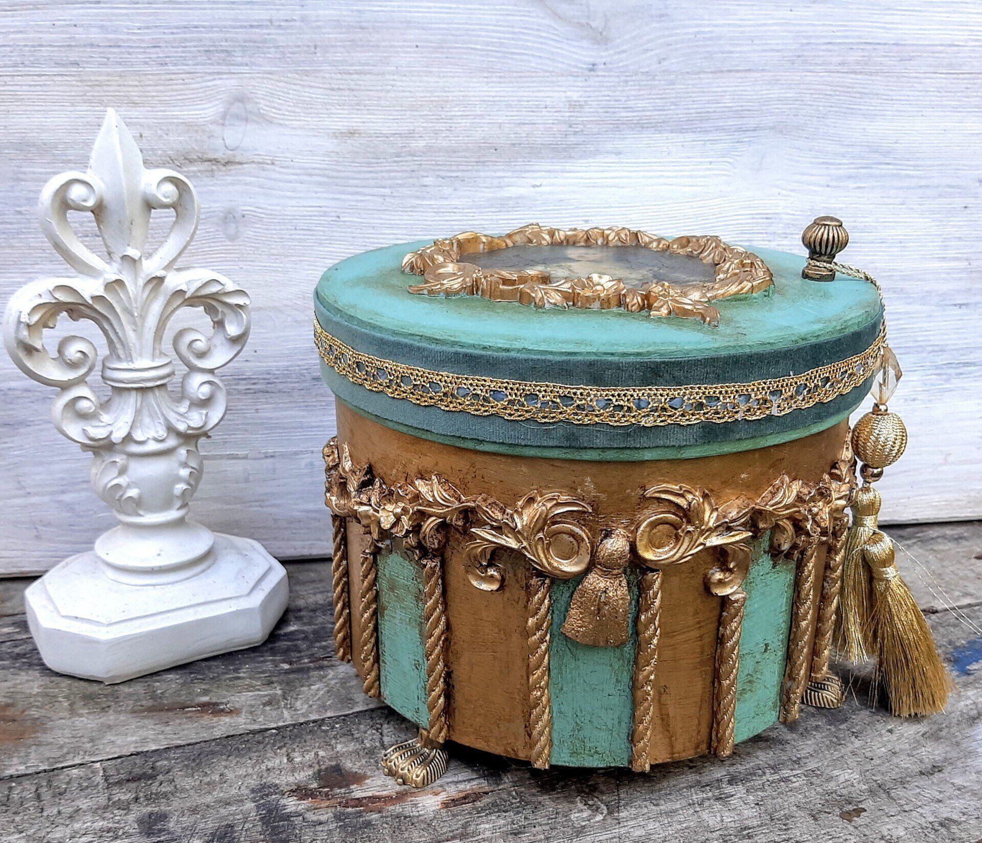 Barock-Dose, vintage, opulent gestaltet. ca. 19cm Durchmesser, 16cm hoch, für kleine Schätze....35€ auf Anfrage