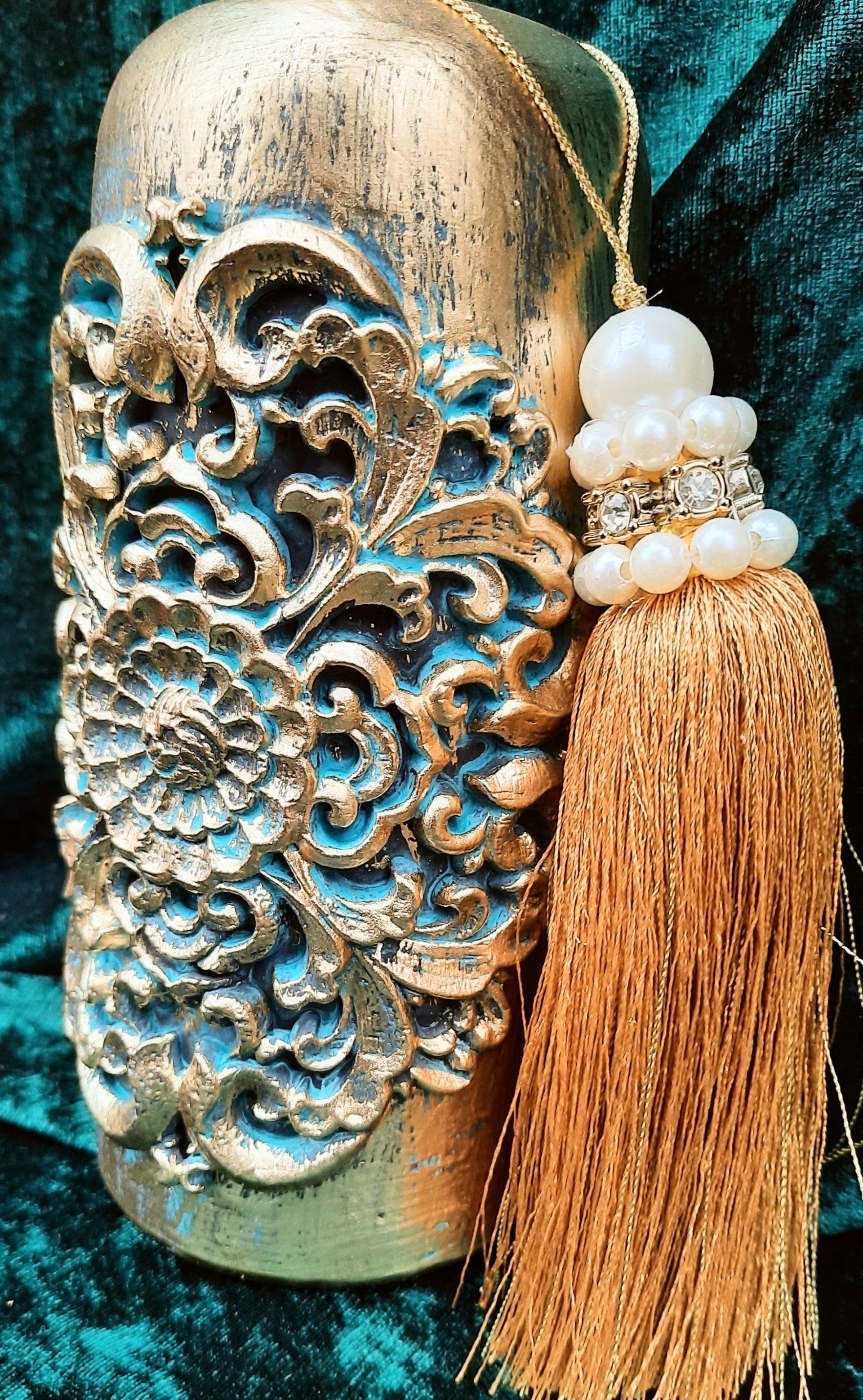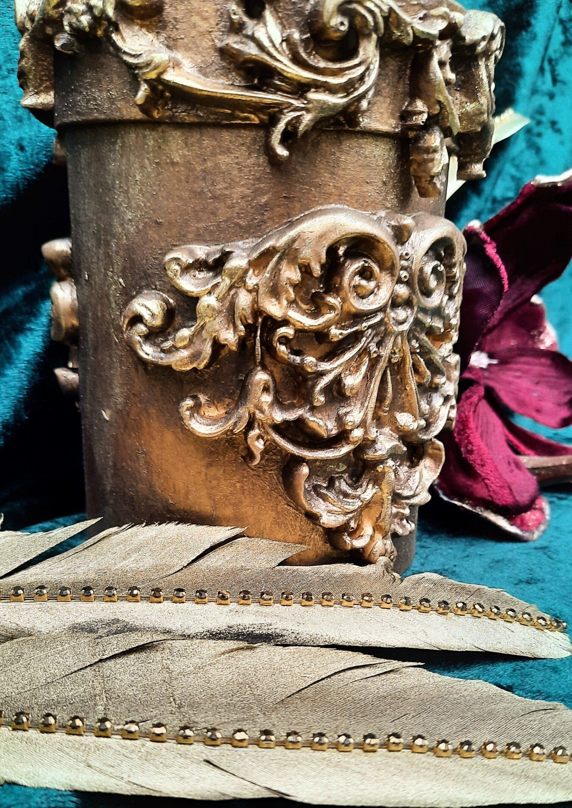 Aufgepimpte (Papp-) Dose für royale Aufbewahrung / Kerzenständer, ca 25cm hoch (ohne Kerze) ... 19€ auf Anfrage