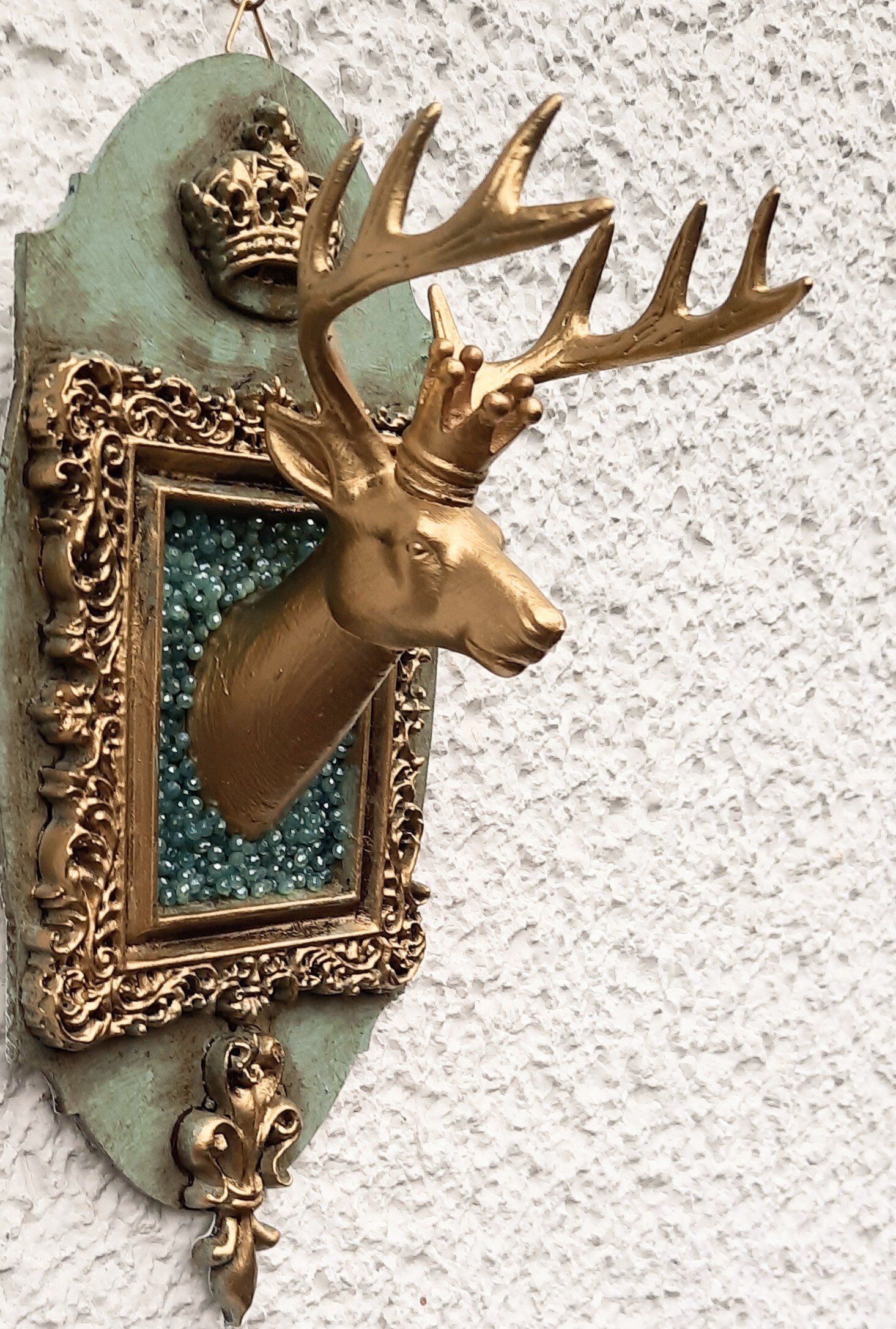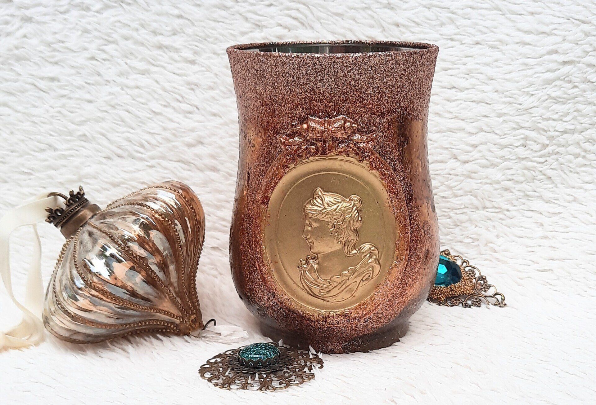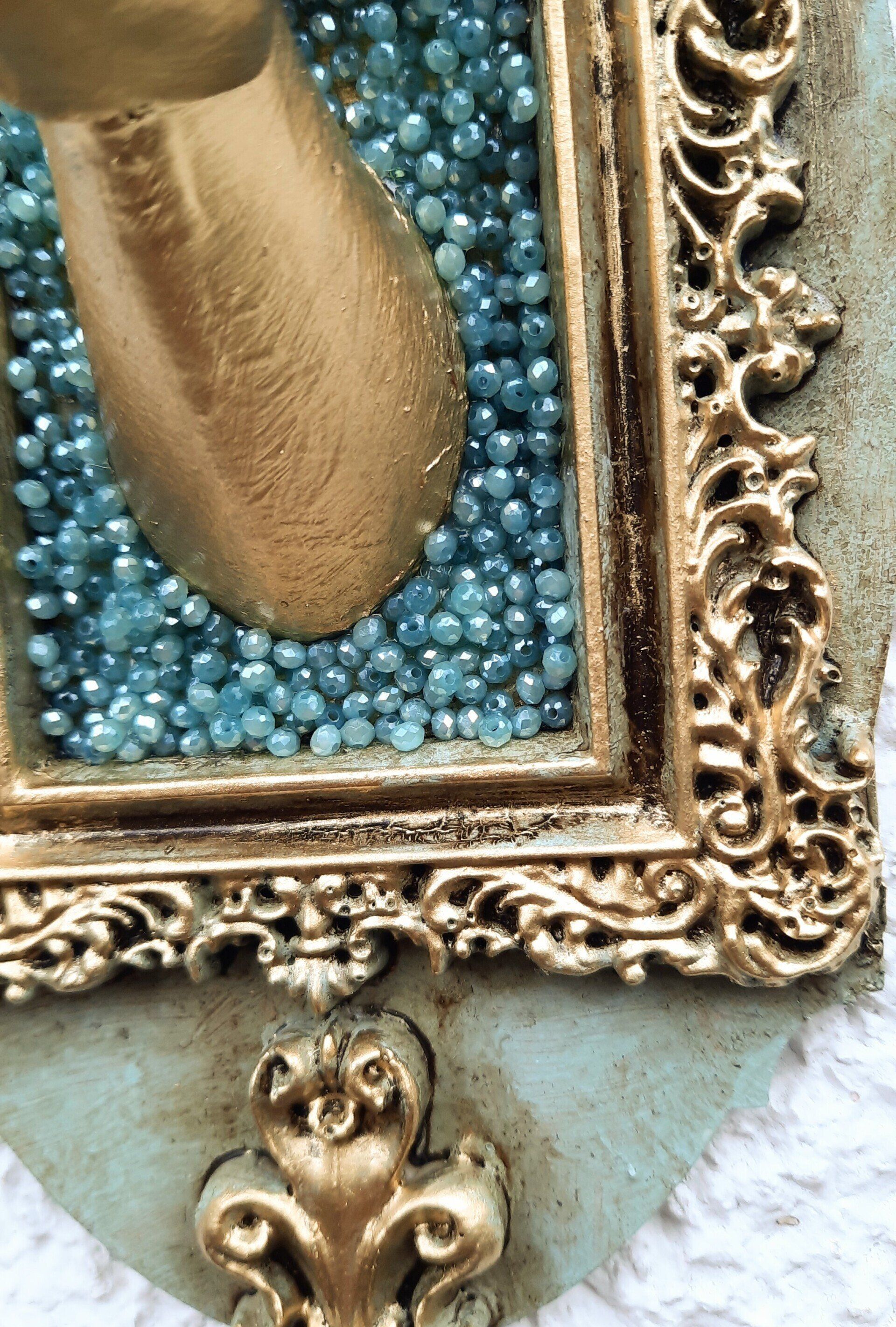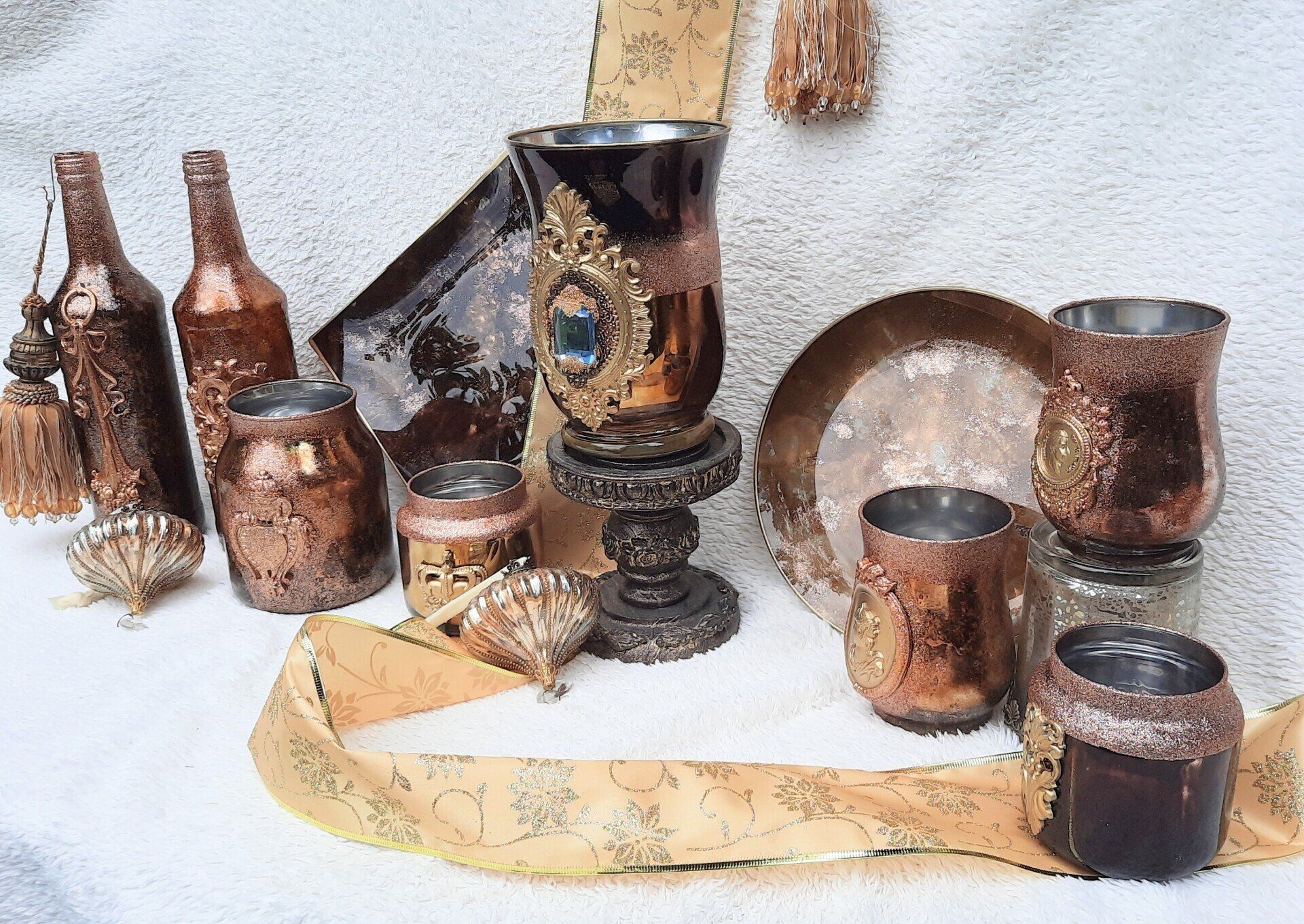 Luxuriöse Deko aus Glas, opulent gestaltet mit Glitterfarben und Blattgold