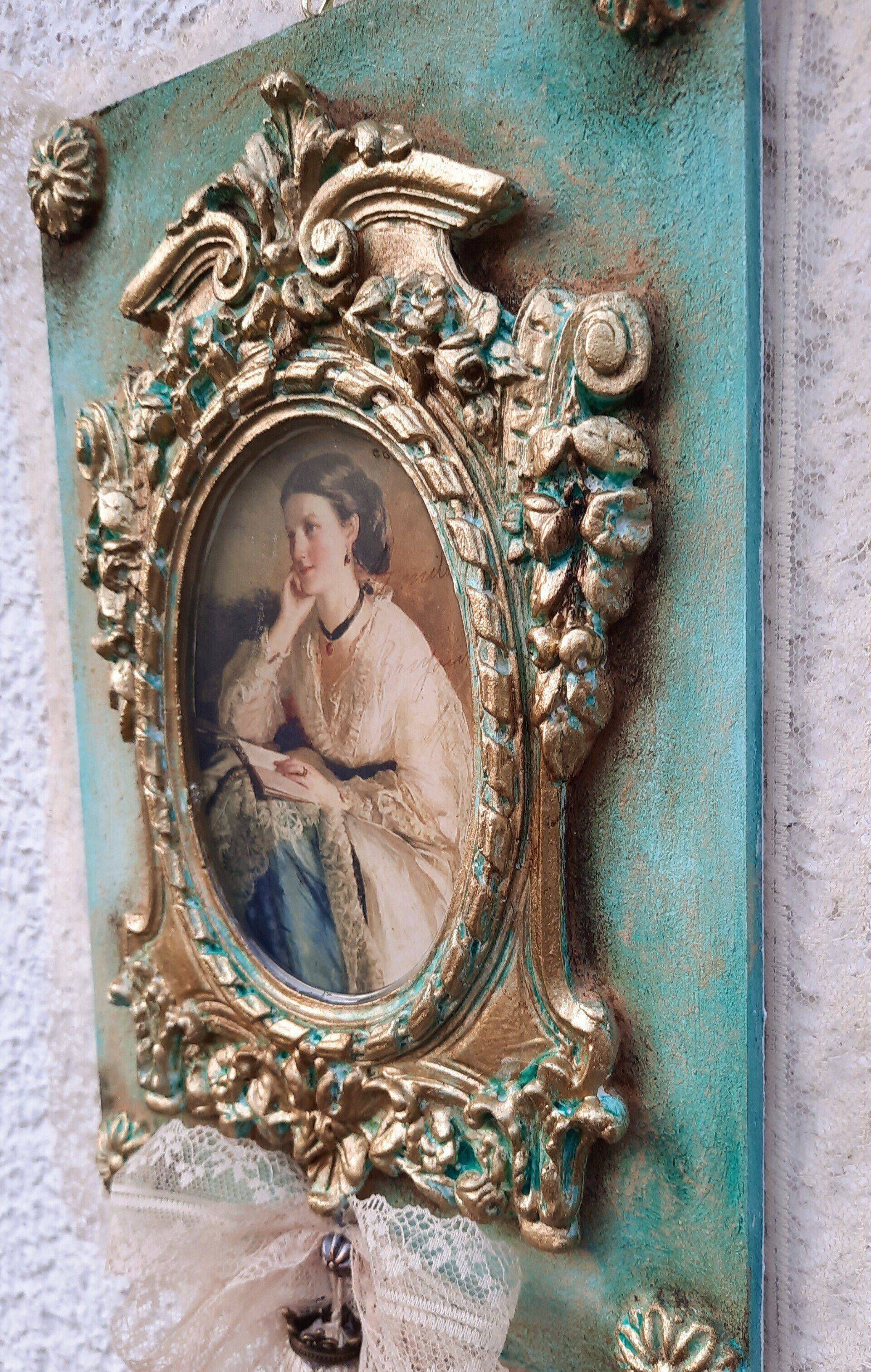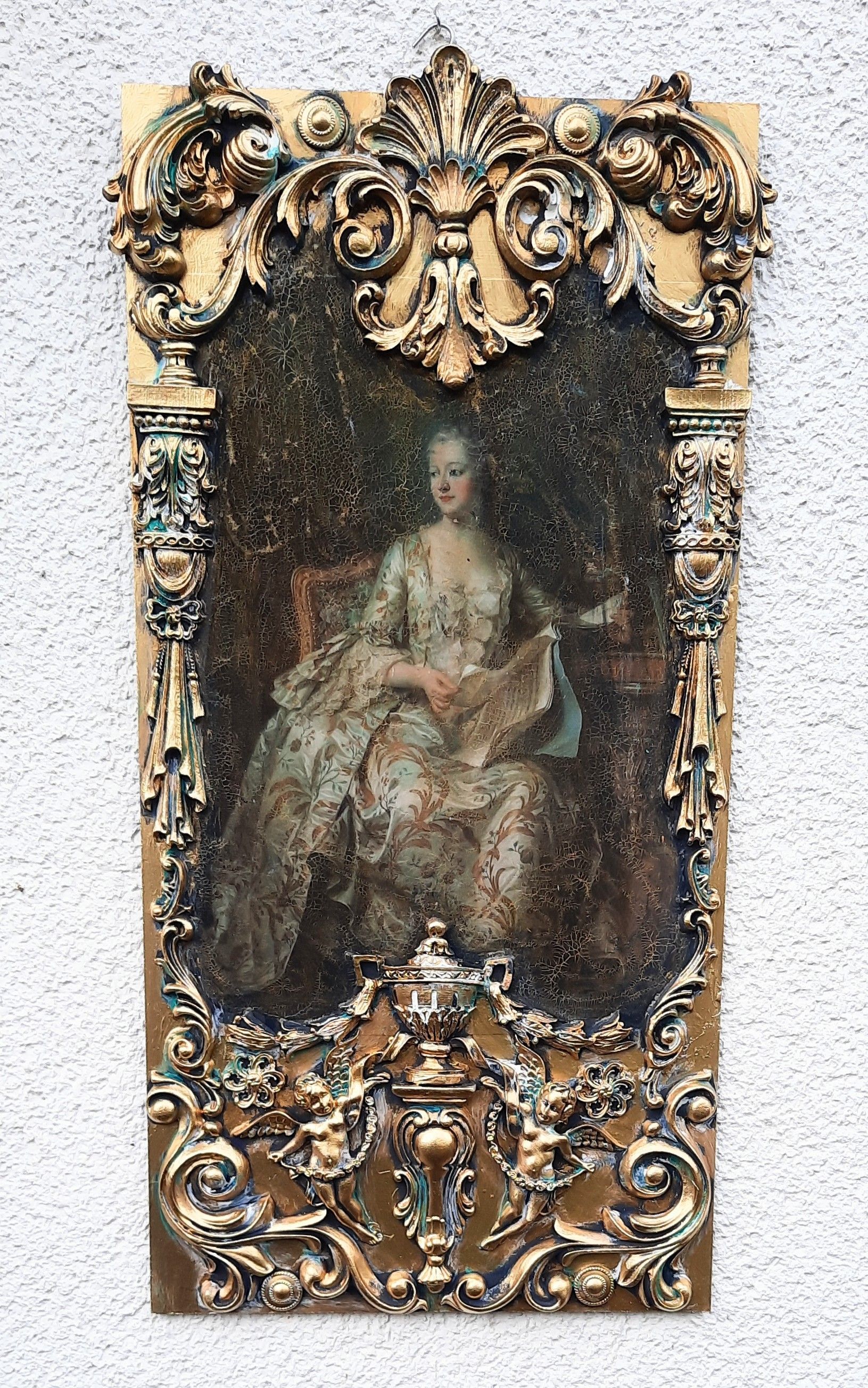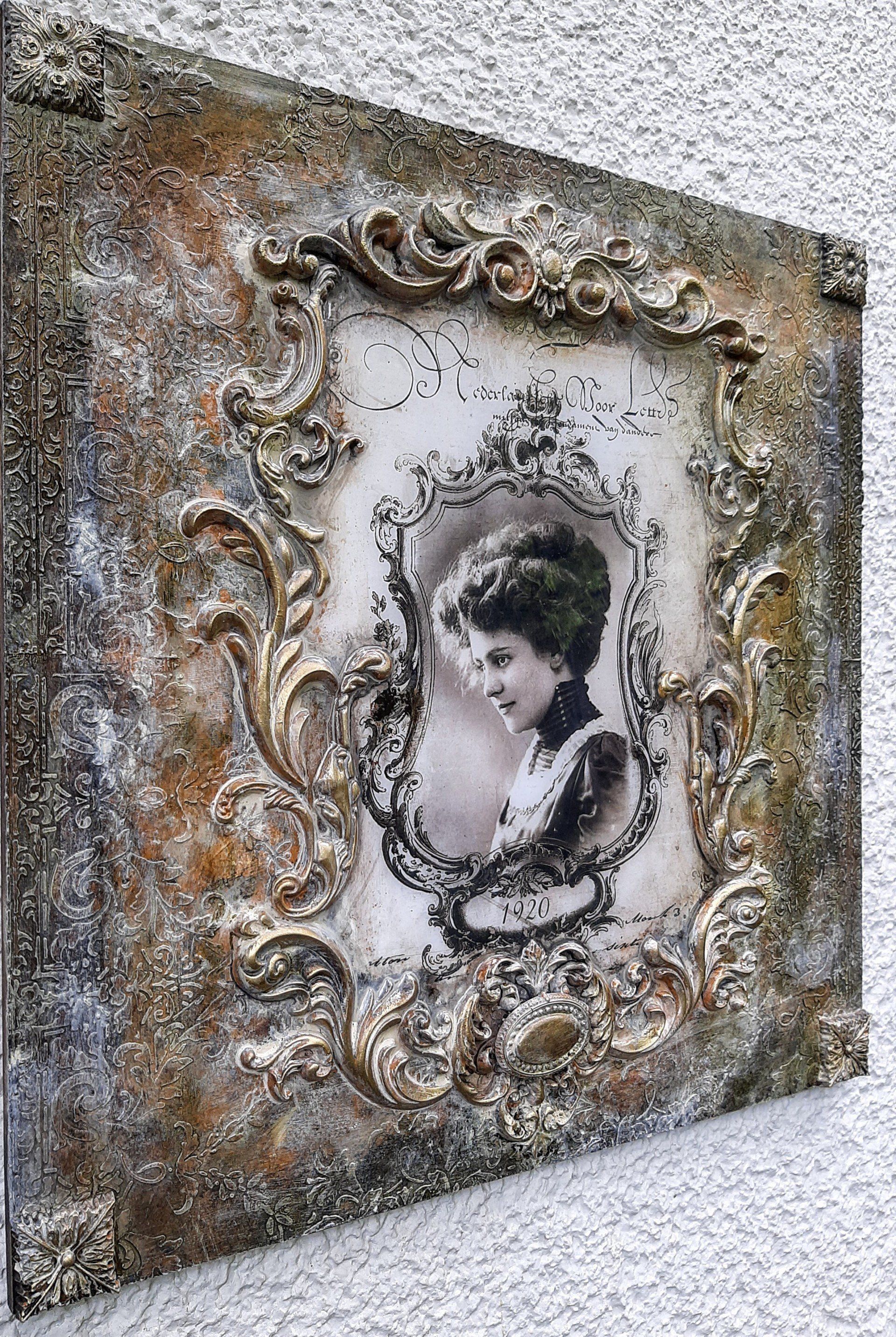 Opulentes MixedMedia Bild "Madame Pompadou" auf MDF 40x80cm, sehr aufwändig gestaltet - 129,-€ auf Anfrage