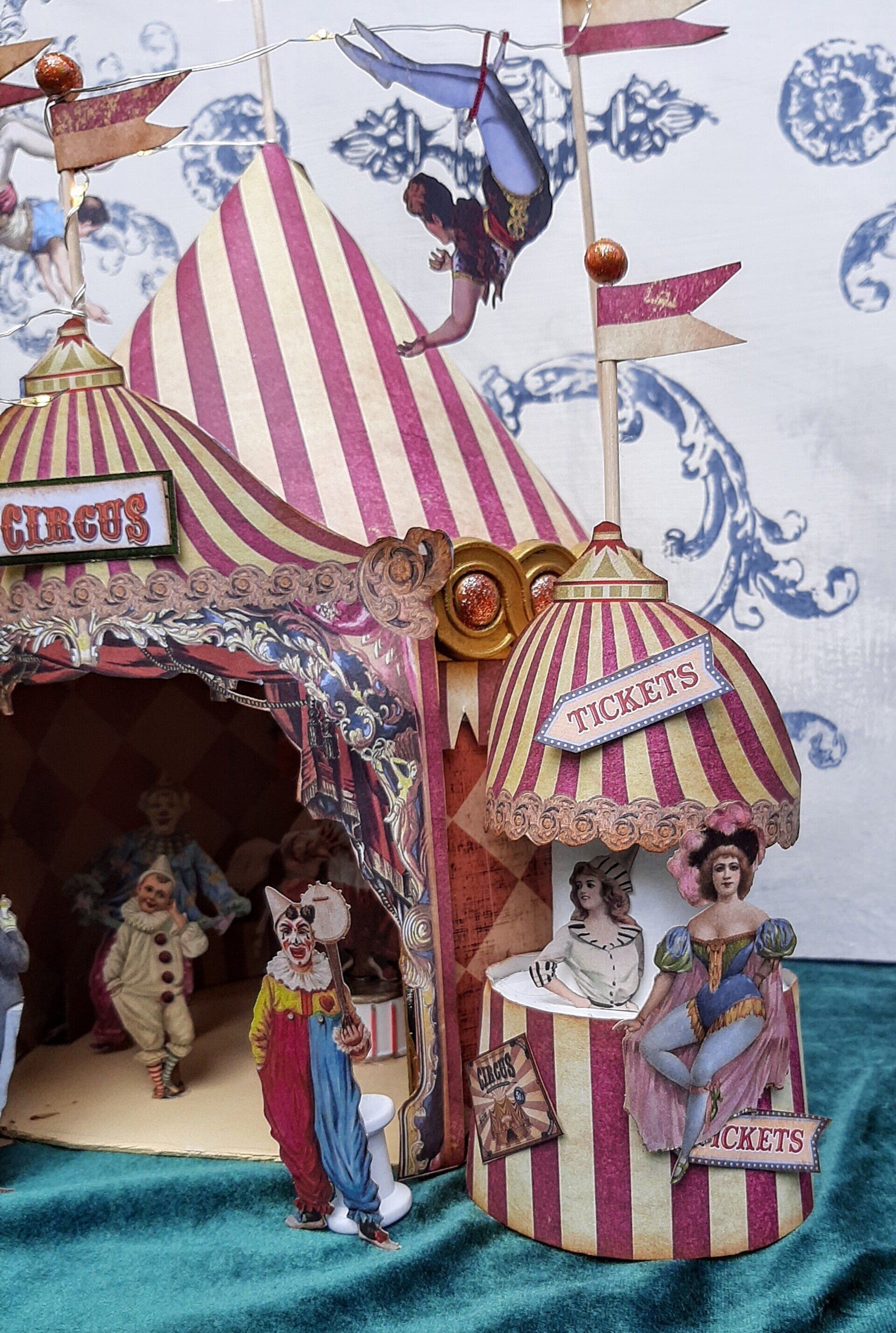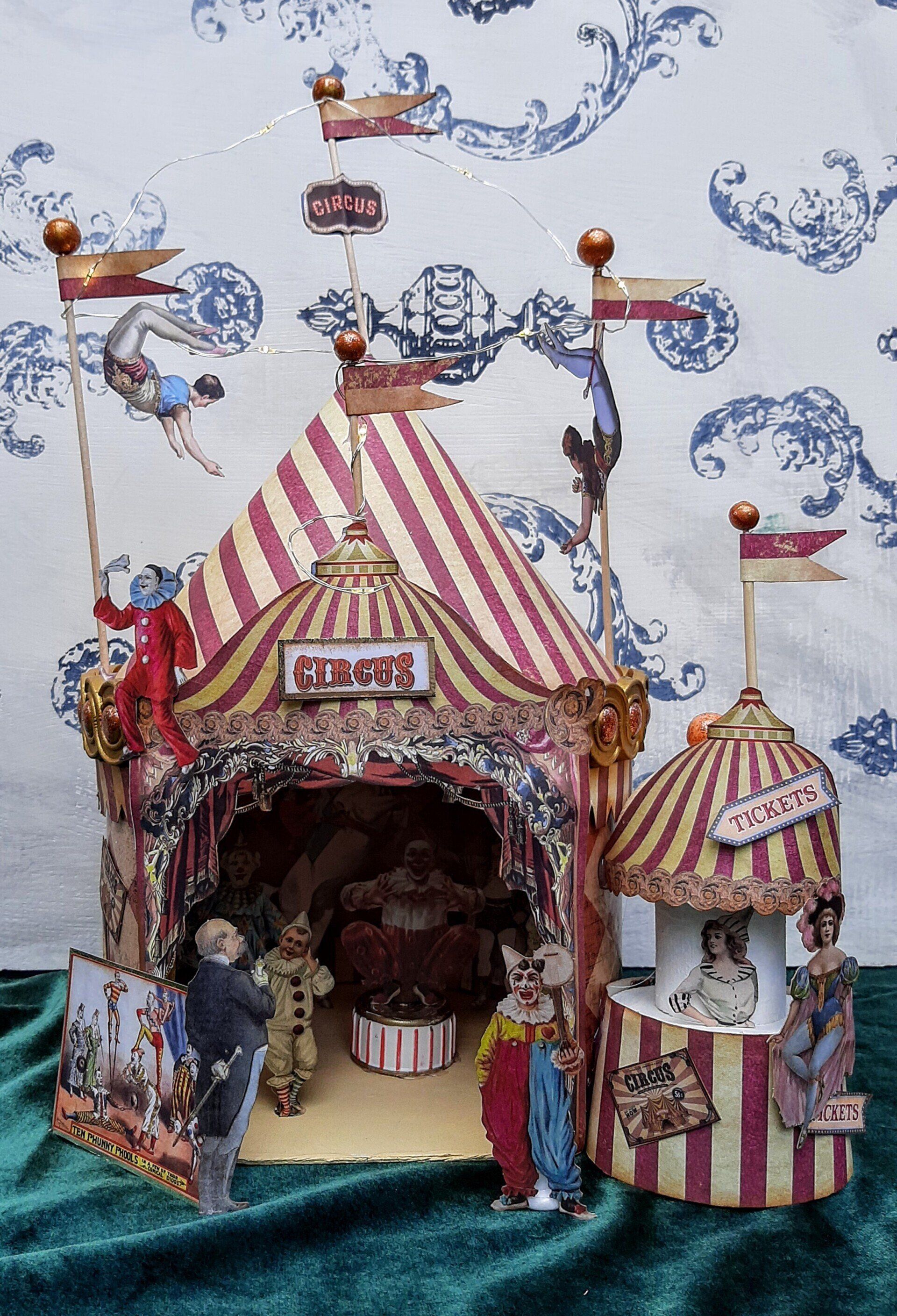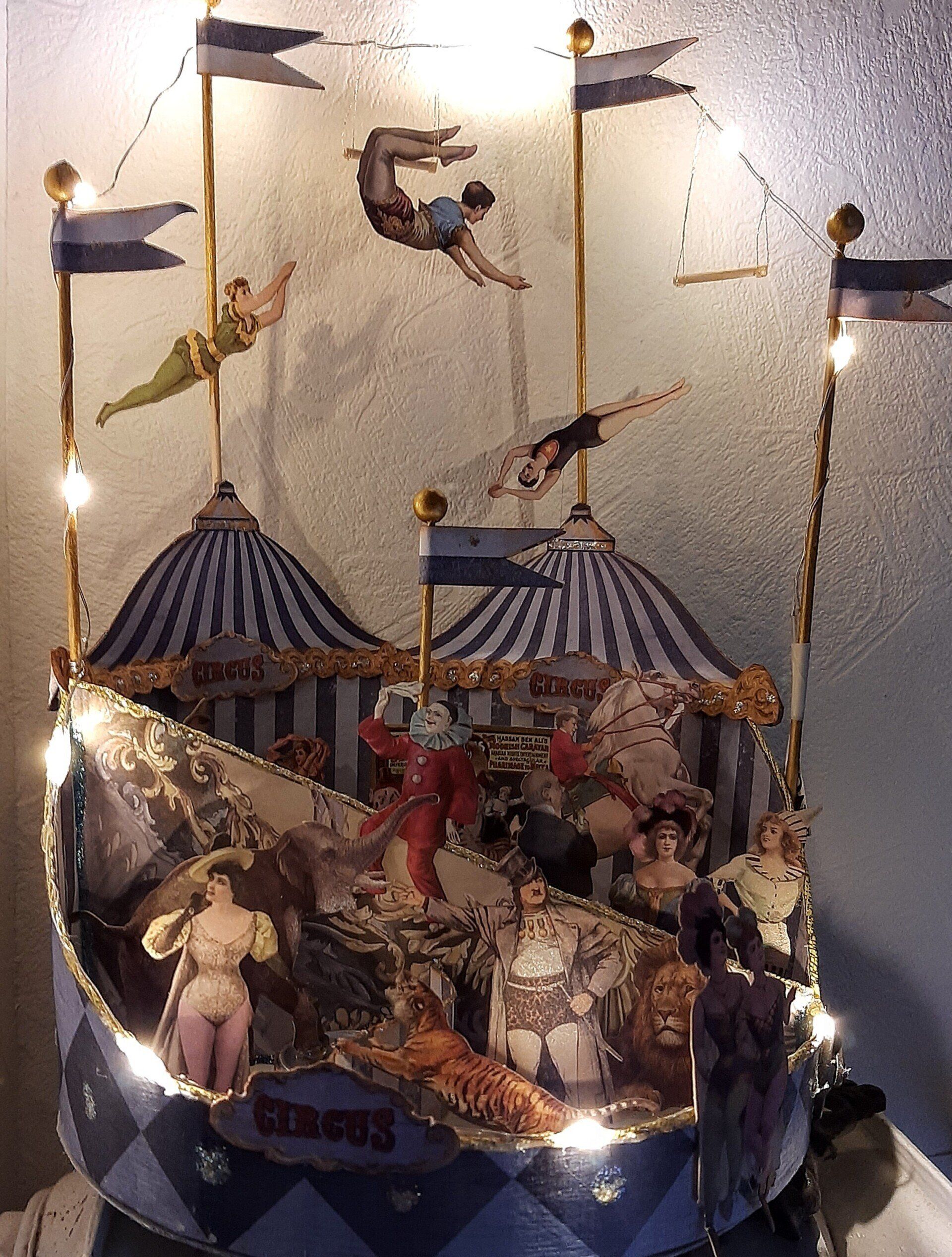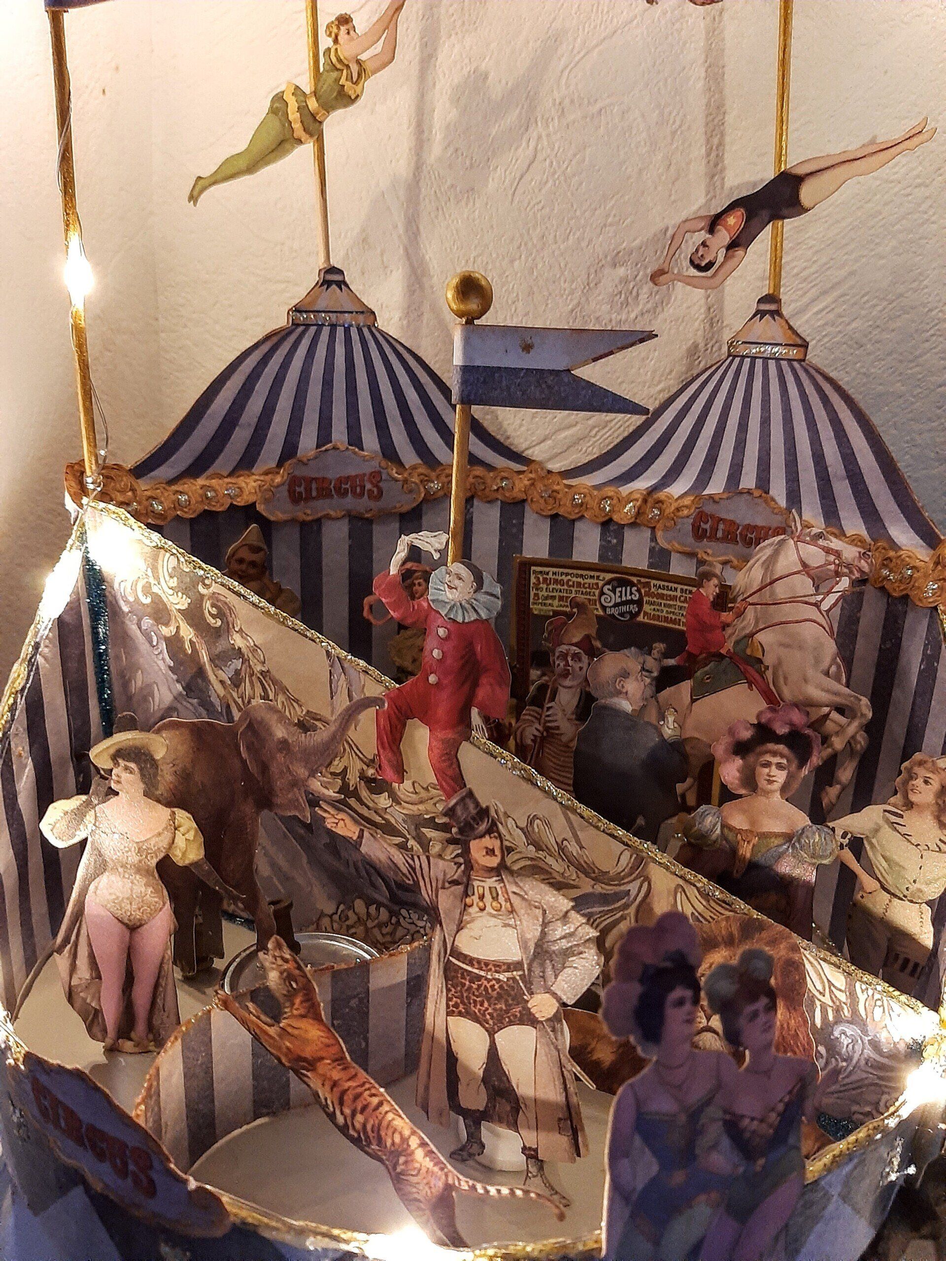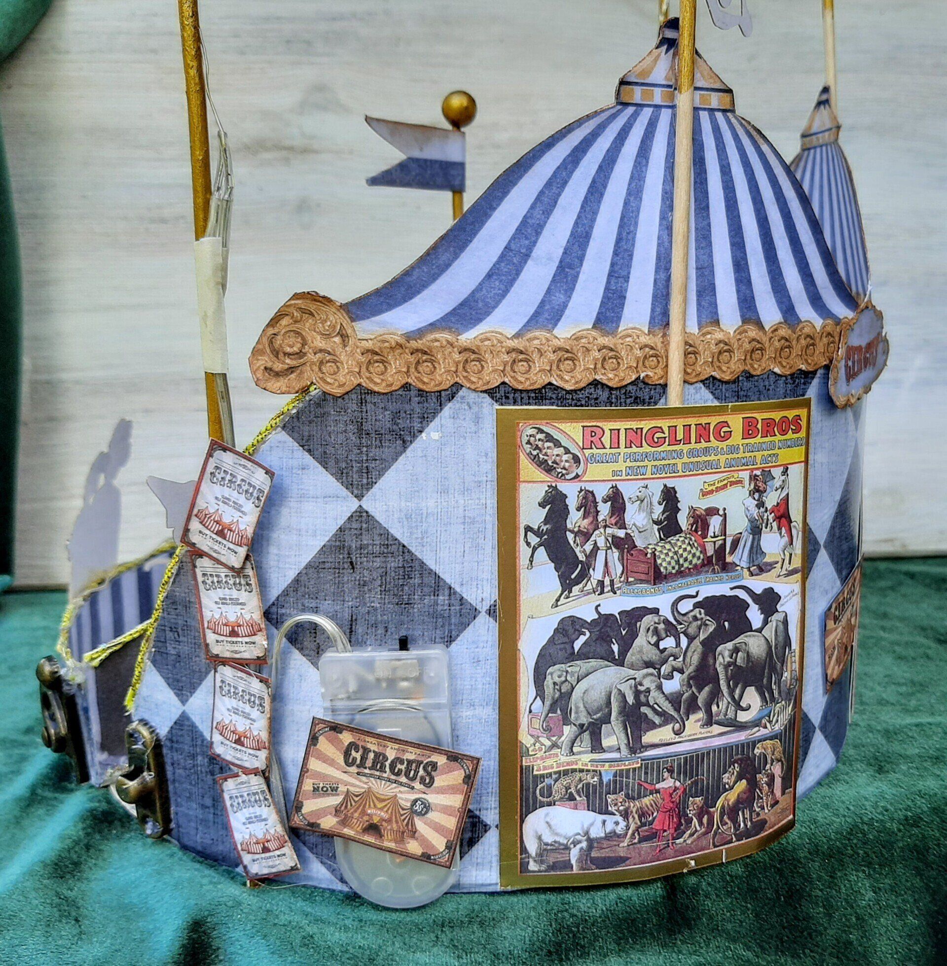 Einmalige Dekoration aus Papier gestaltet. Ein beleuchtetes Zirkuszelt! Ca. 26cm breit und 40cm hoch.... 39€ auf Anfrage