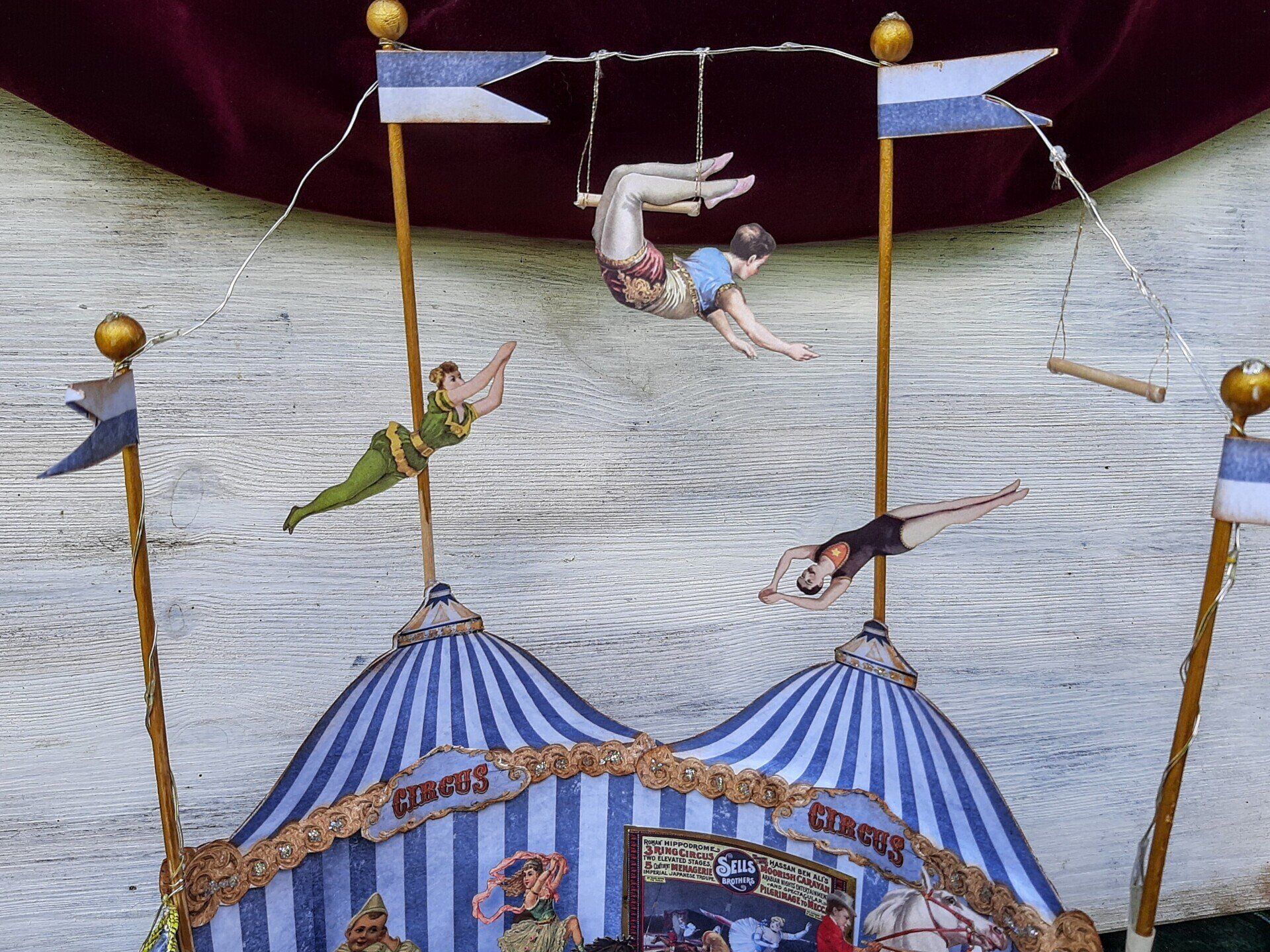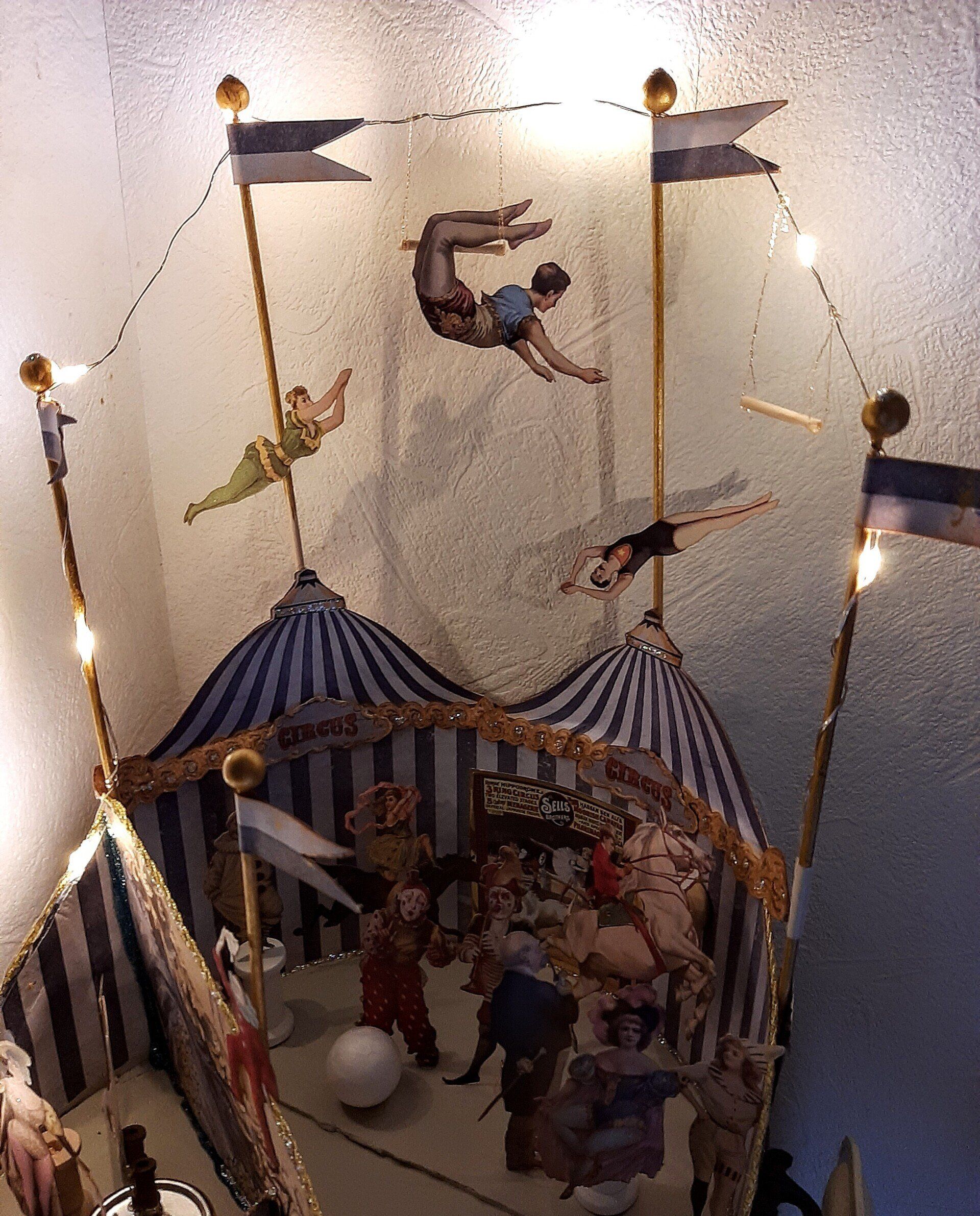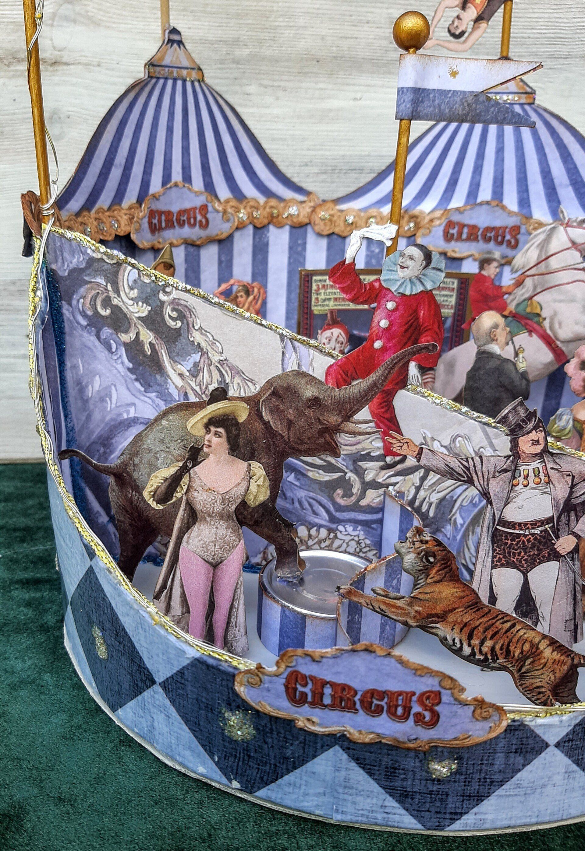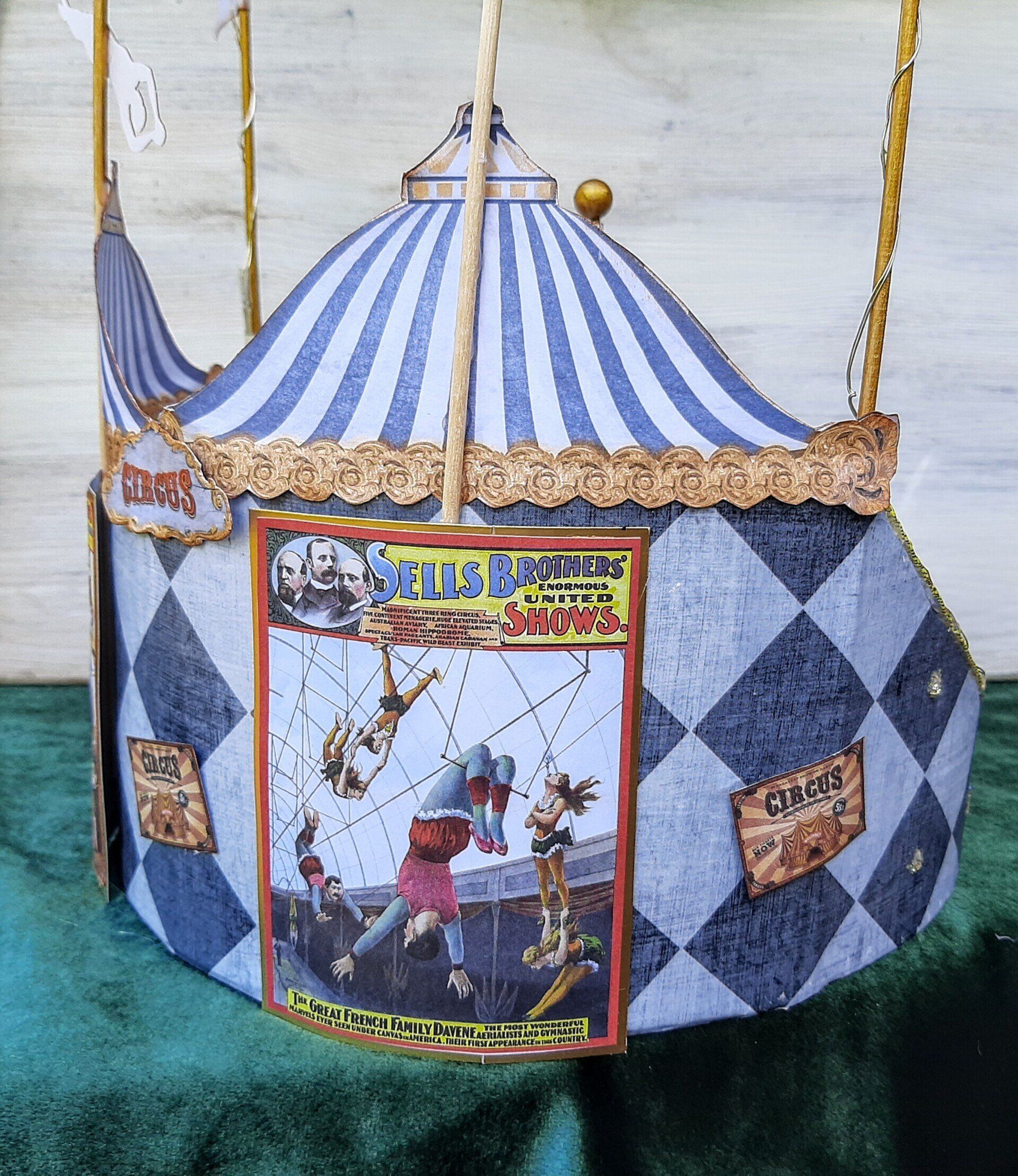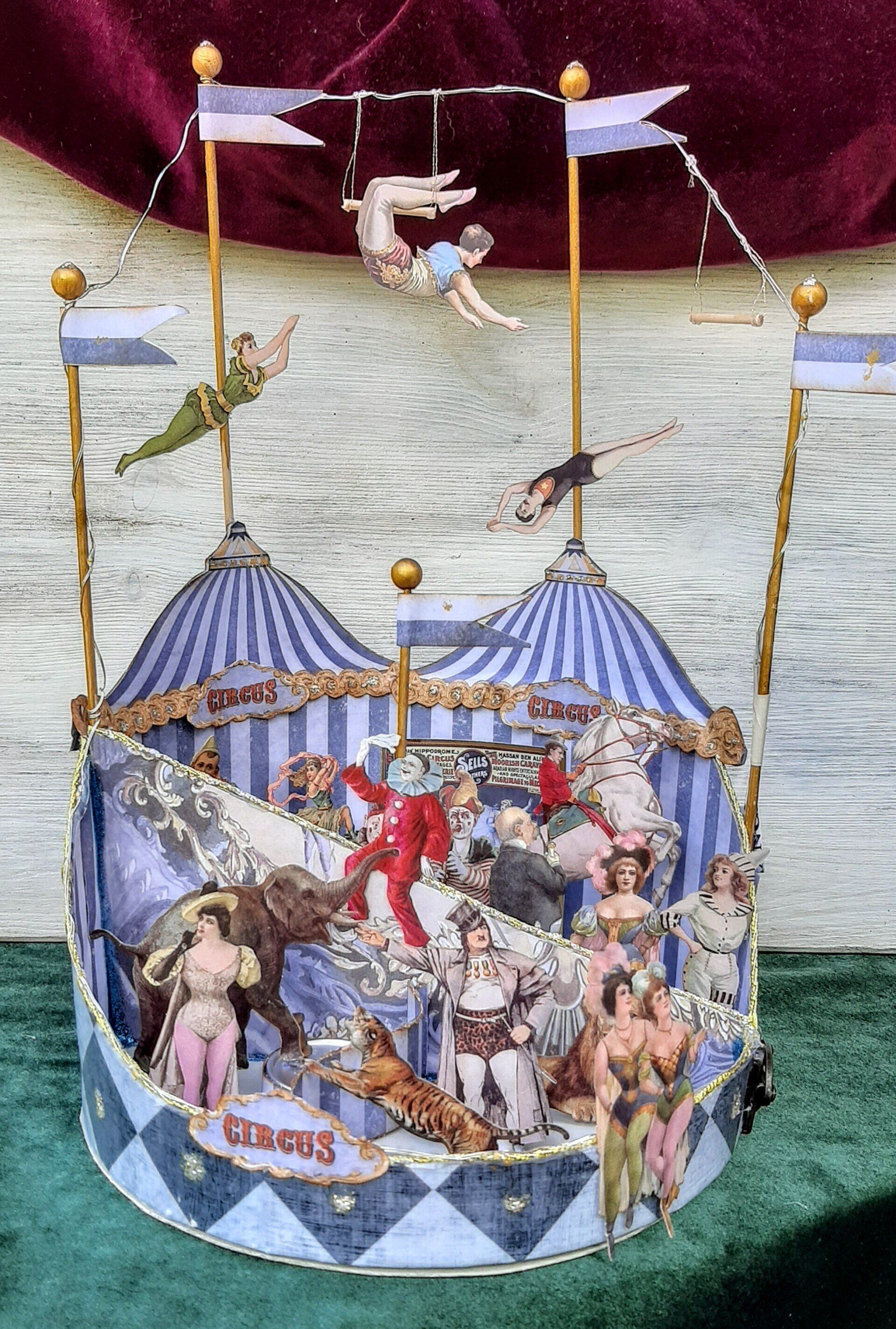 Einmalige Dekoration aus Papier gestaltet. Ein beleuchtetes Zirkuszelt! Ca. 26cm breit und 40cm hoch.... 39€ auf Anfrage