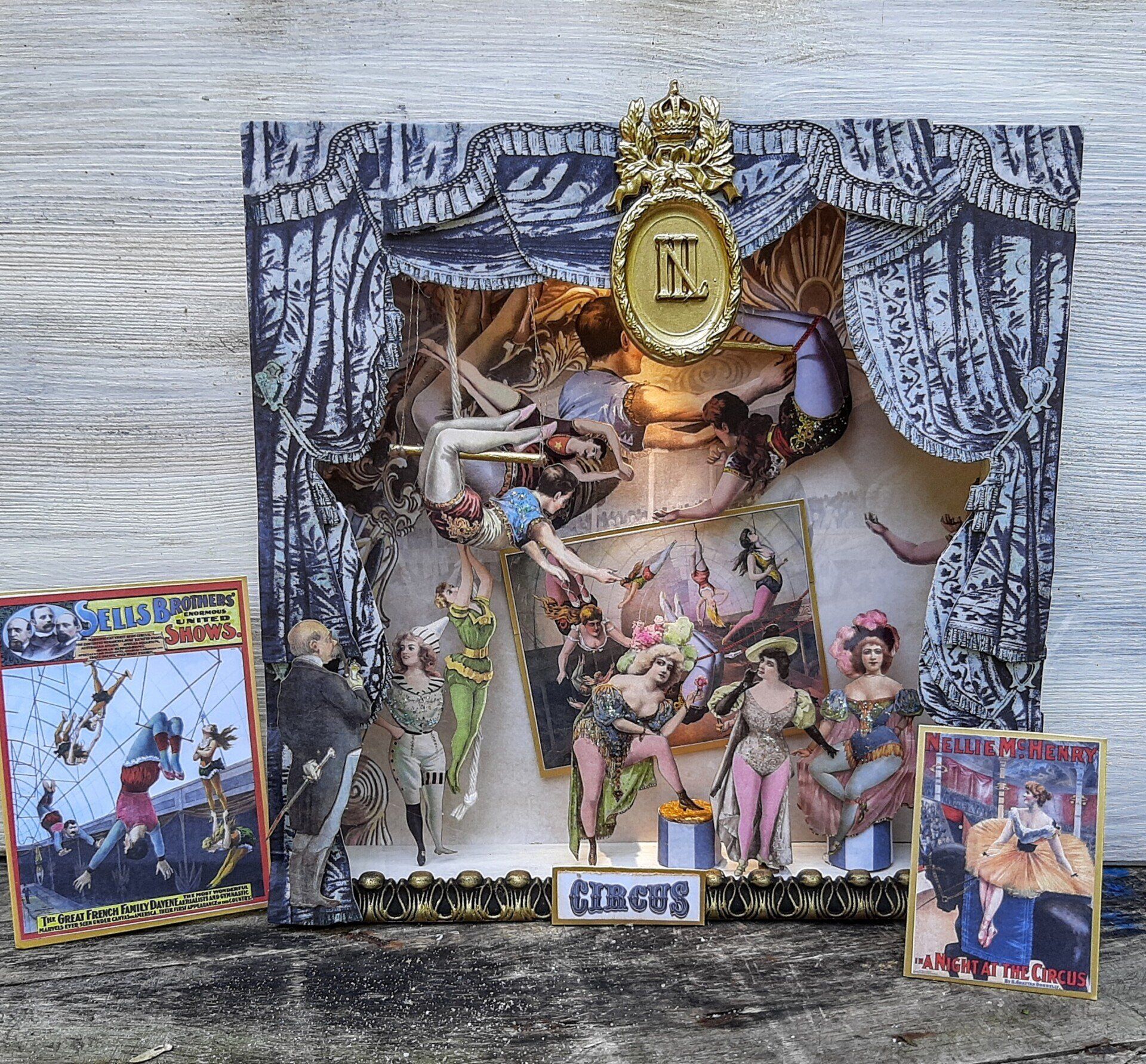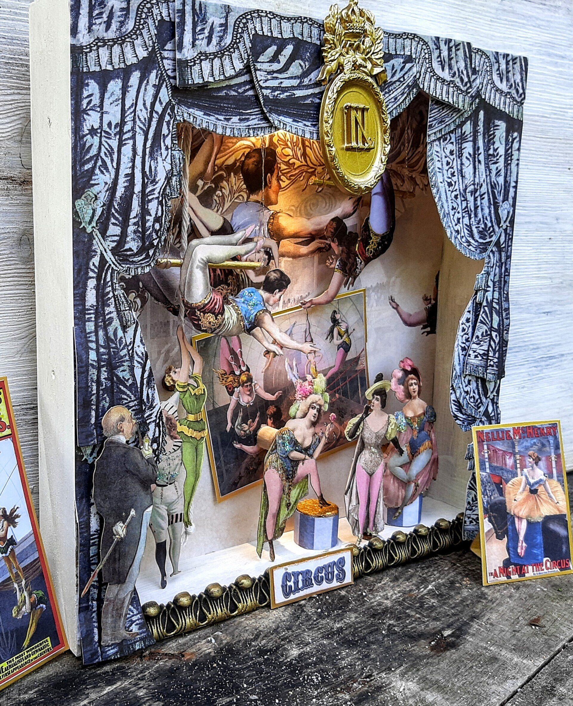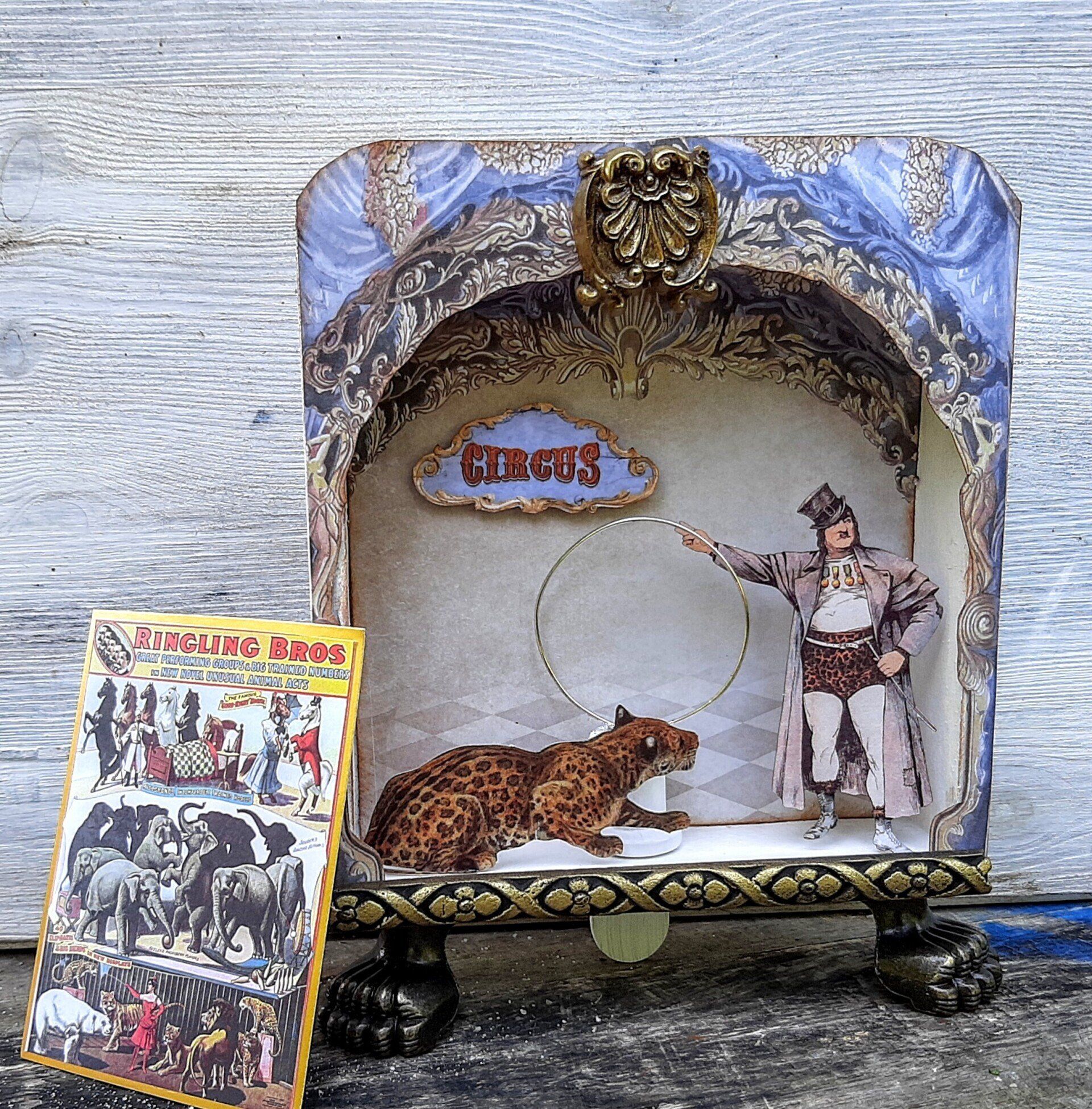 Einmalige Dekoration aus Papier gestaltet. Eine beleuchtete Zirkus manege zum Aufklappen. Ca. 22cm breit und 20cm hoch... 35,-€ auf Anfrage.