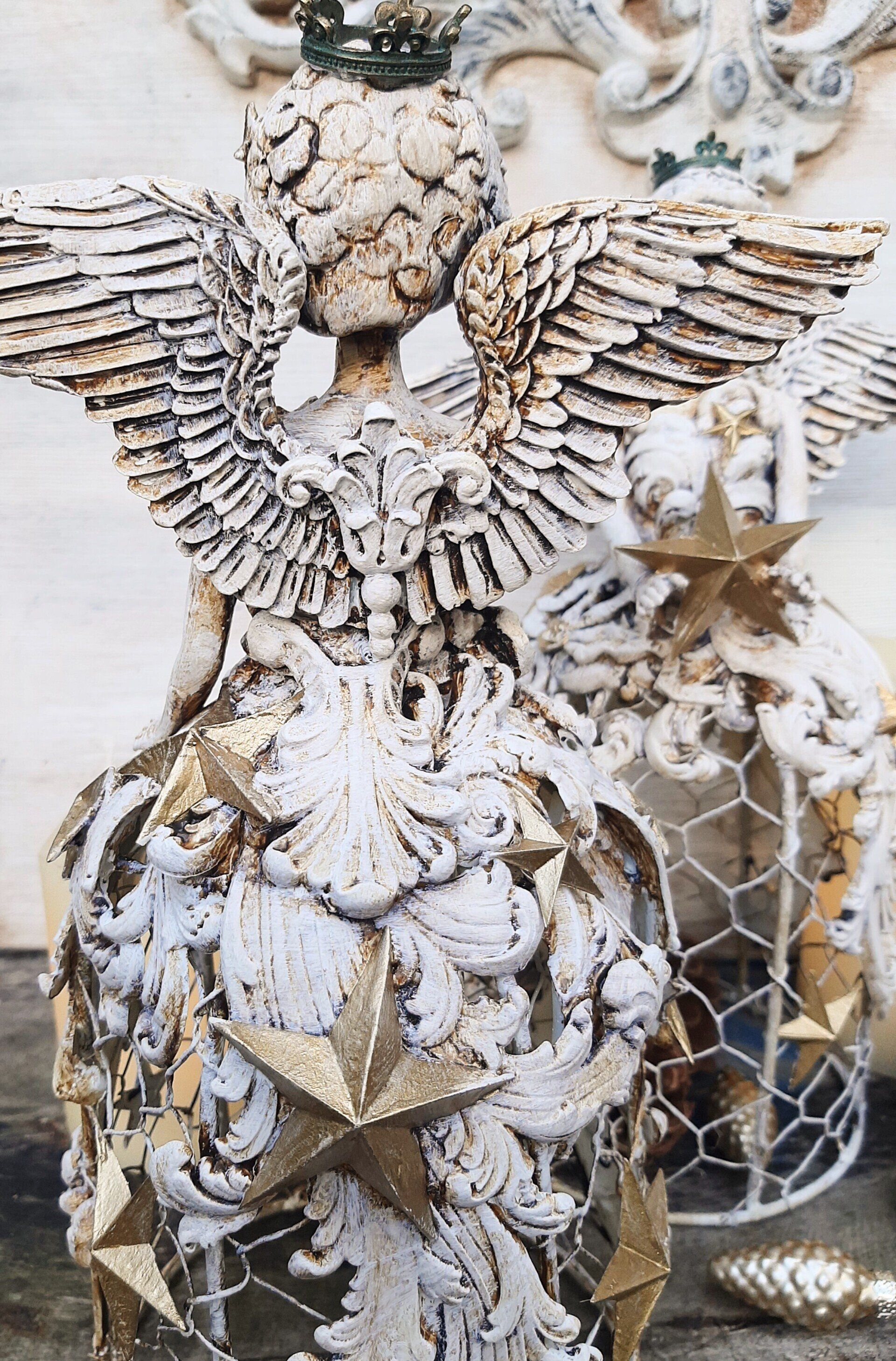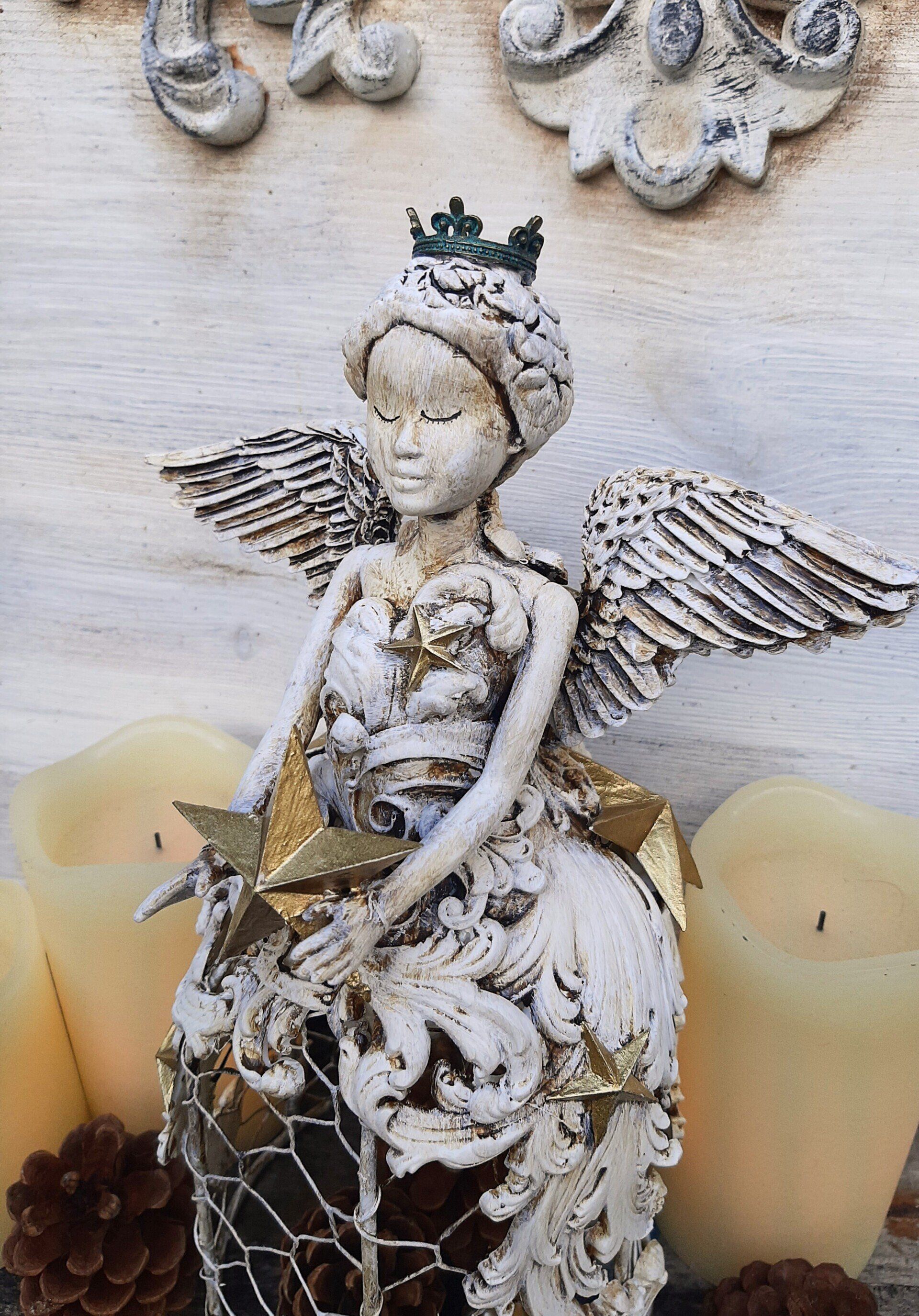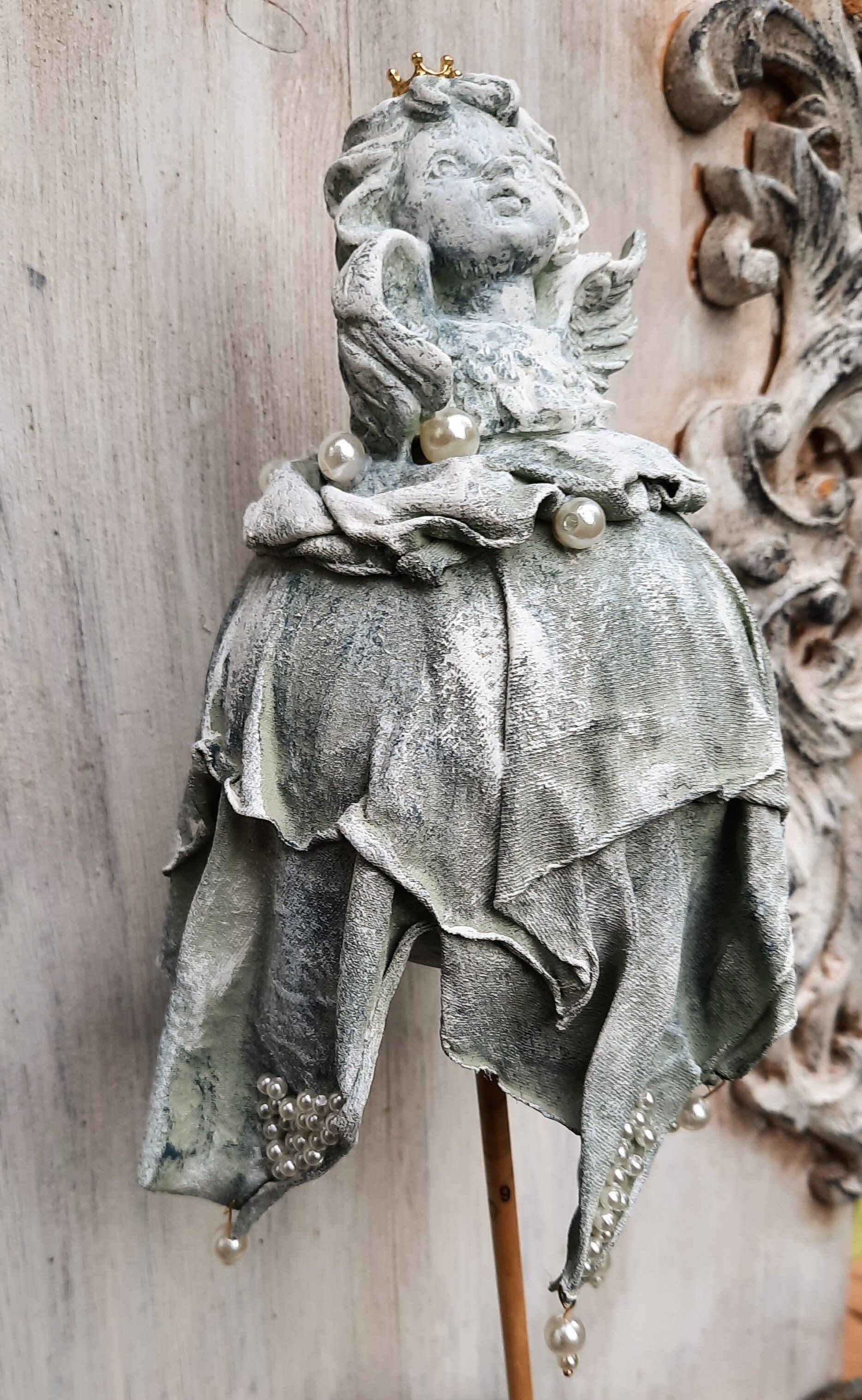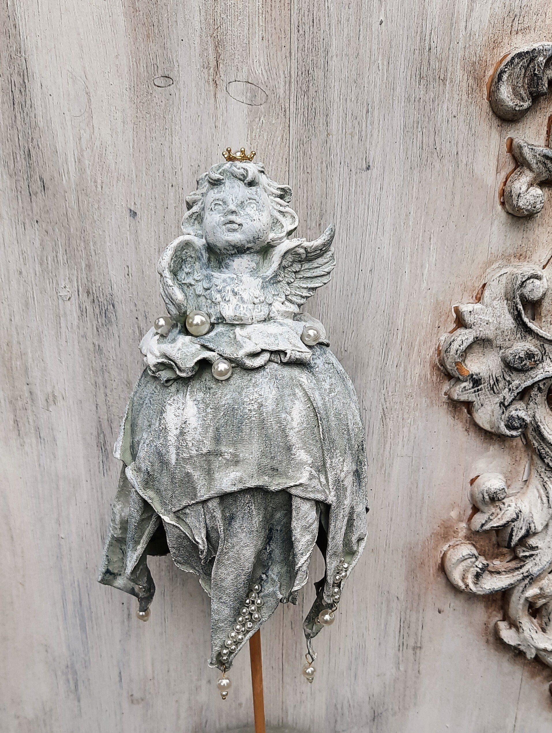 2 extravagante Shabby Engel gestaltet aus außergewöhnlichen Materialien, je ca. 30cm hoch, je 35,- € auf Angfrage