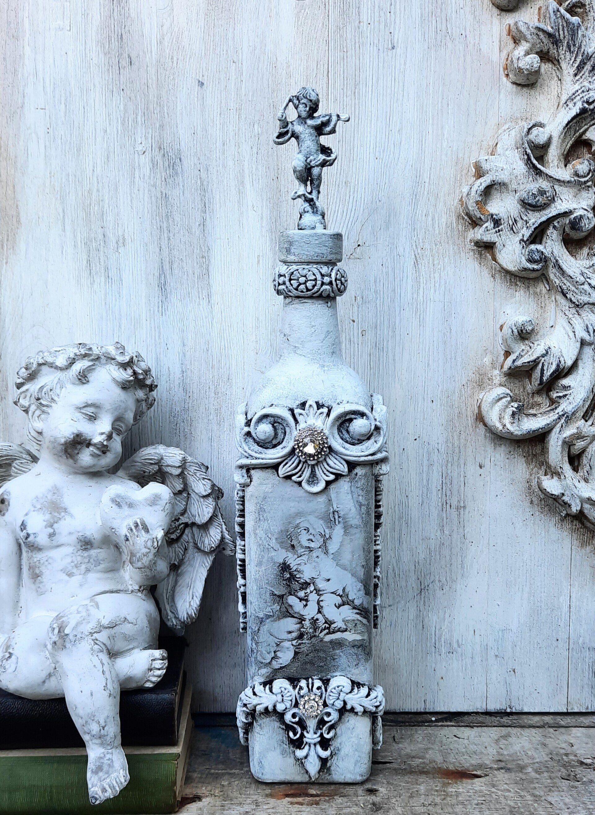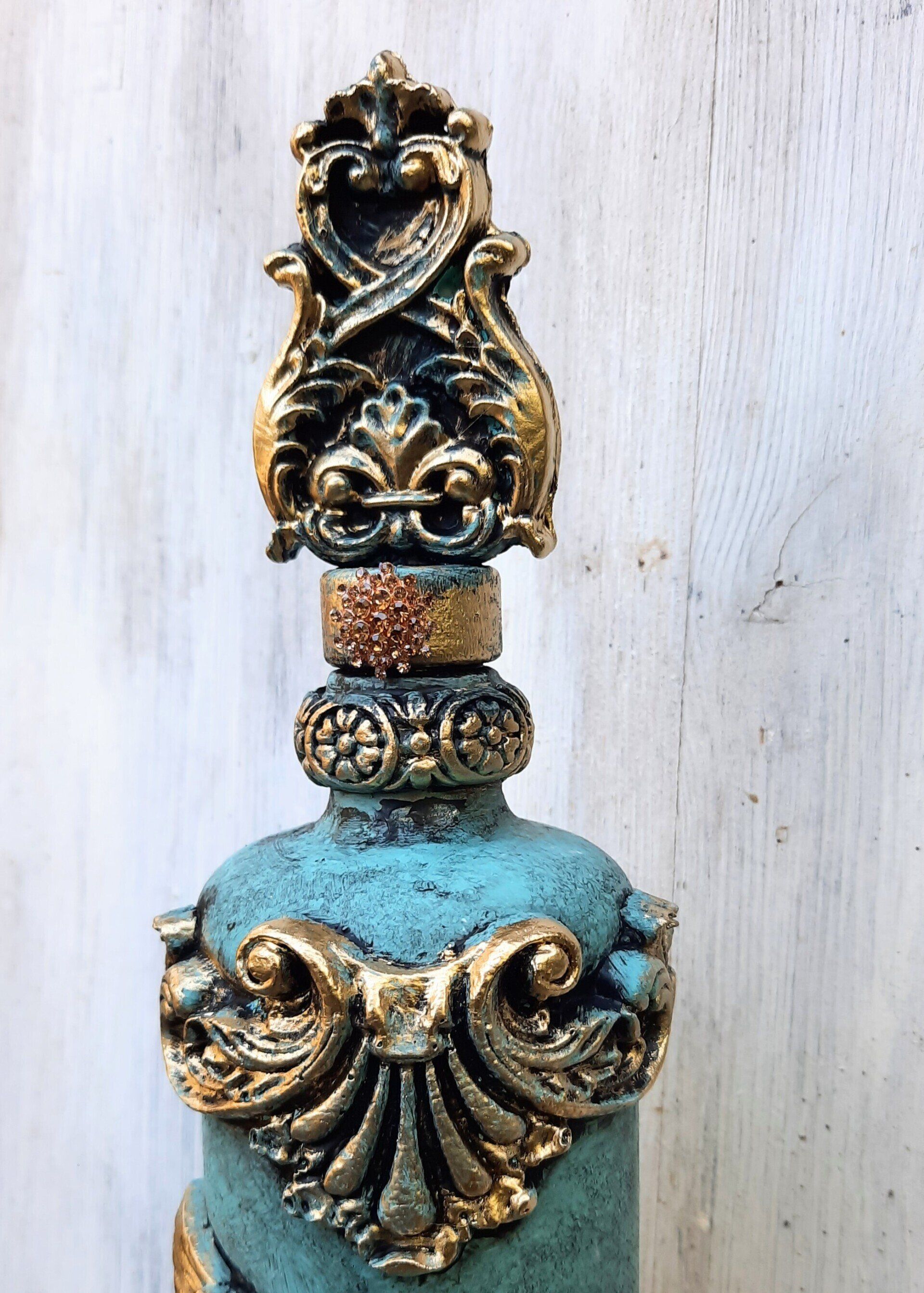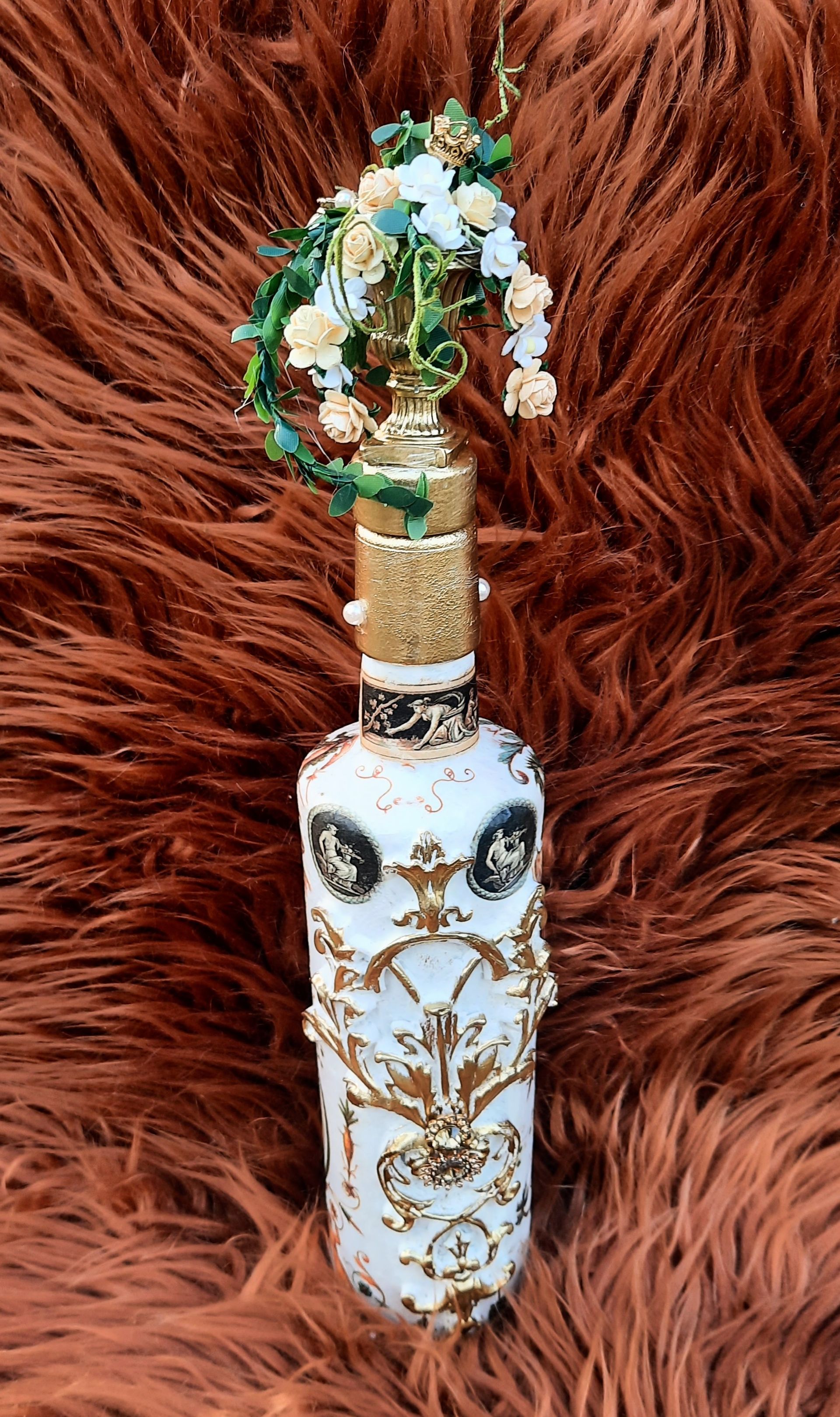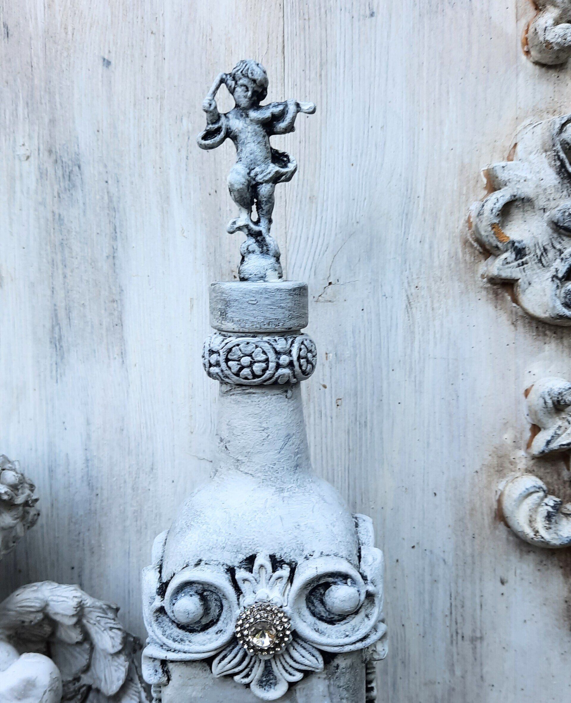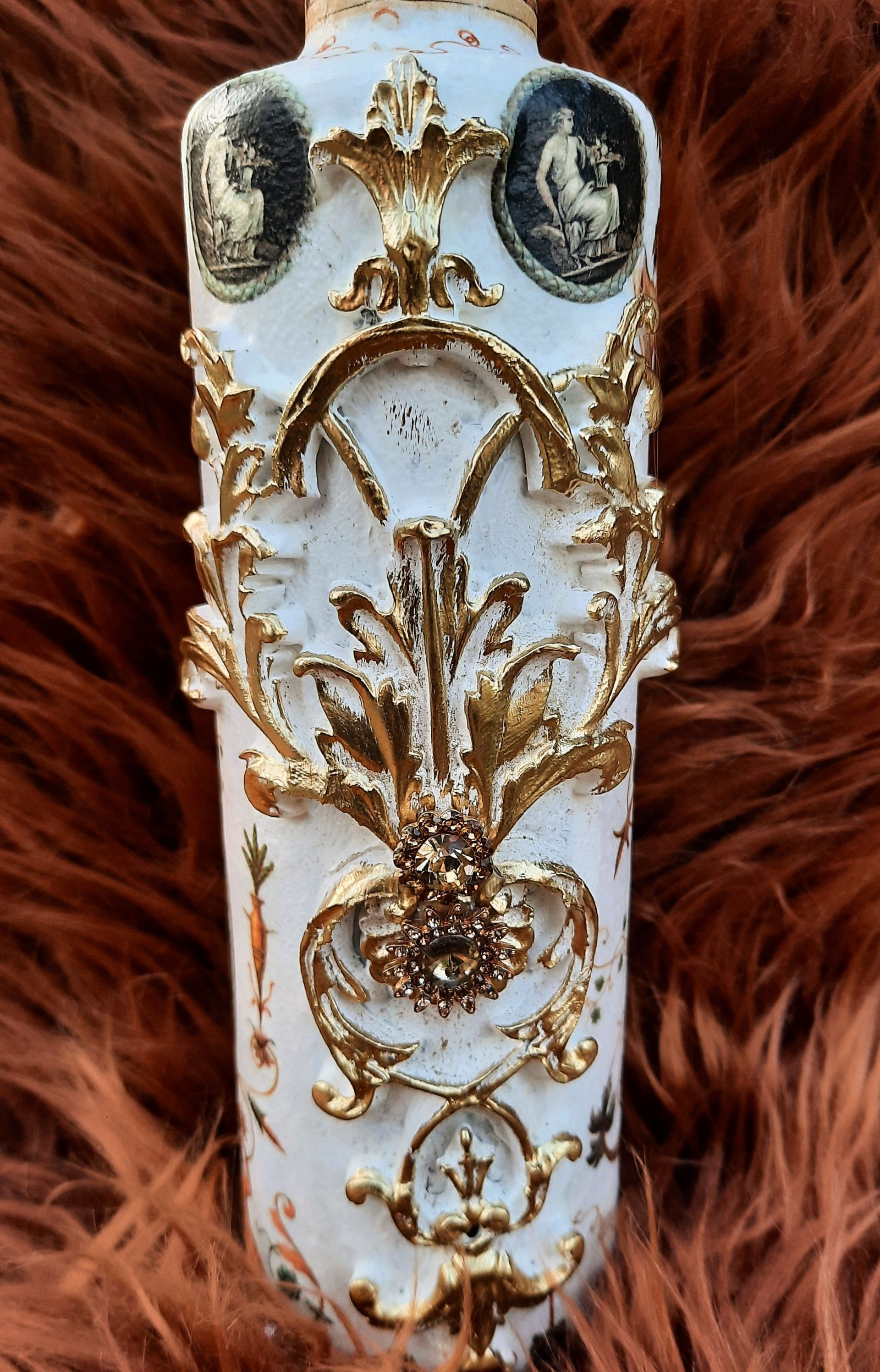 Upcycling einer alten Glasflasche, sehr opulent gestaltet mit einer Amphore auf dem Korken - ca. 37cm hoch - 19,-€ auf Anfrage - Ein Anleitungsvideo gibt es in der Rubrik "Bastelanleitungen / Videos"