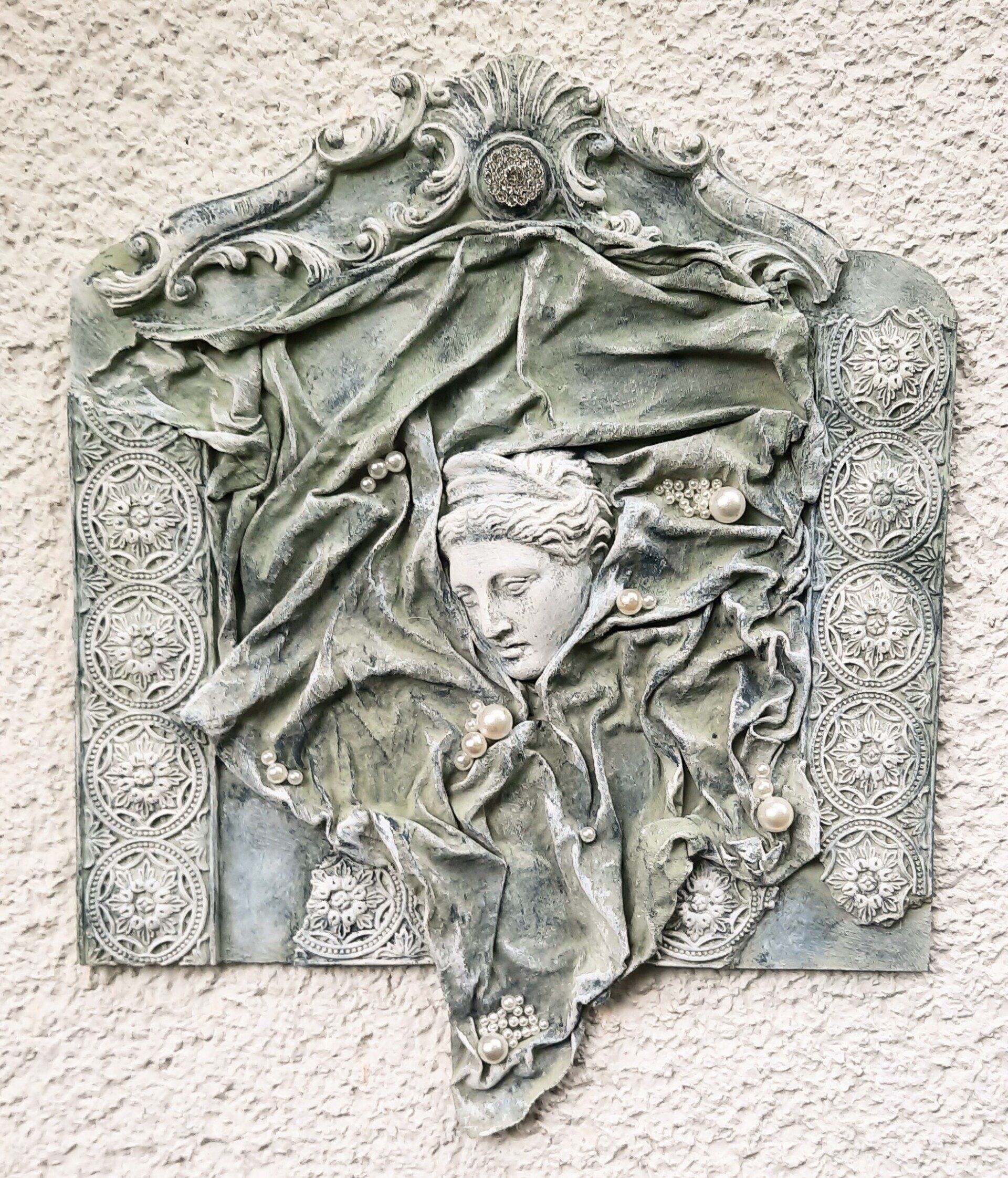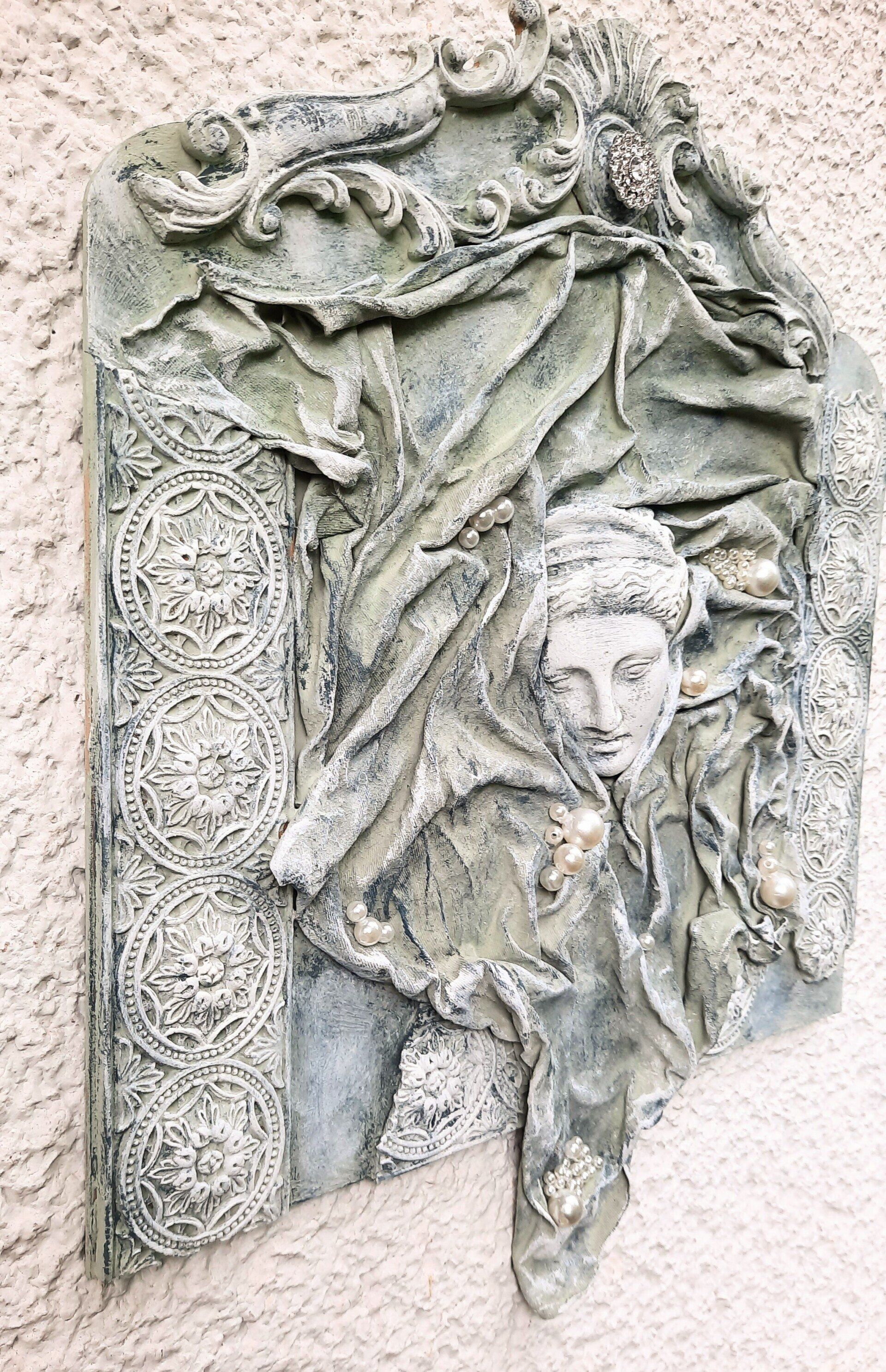 Ein MixedMedia Projekt, eine antike Göttin im antiken Stein Look, 40x40cm - 59€ auf Anfrage