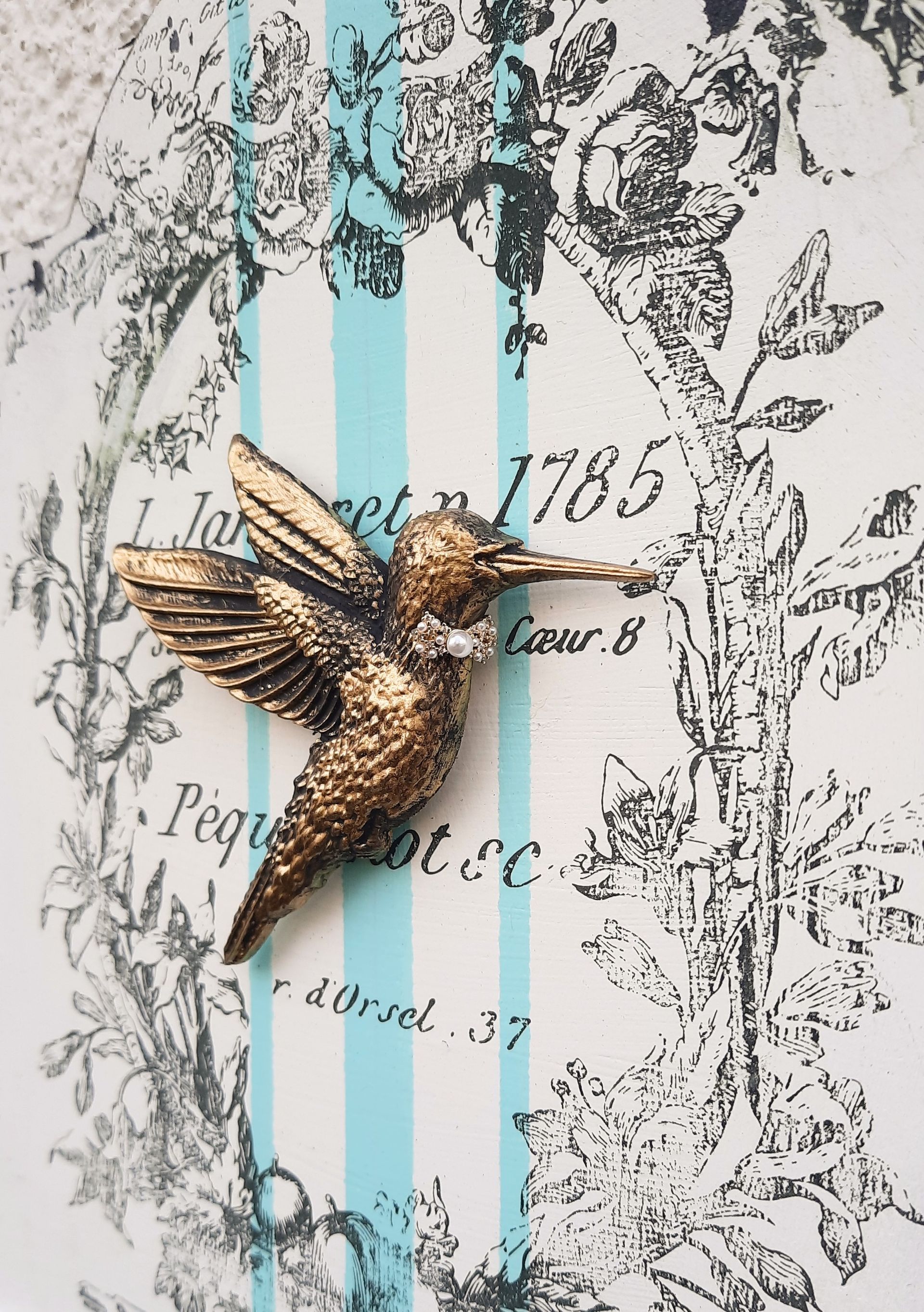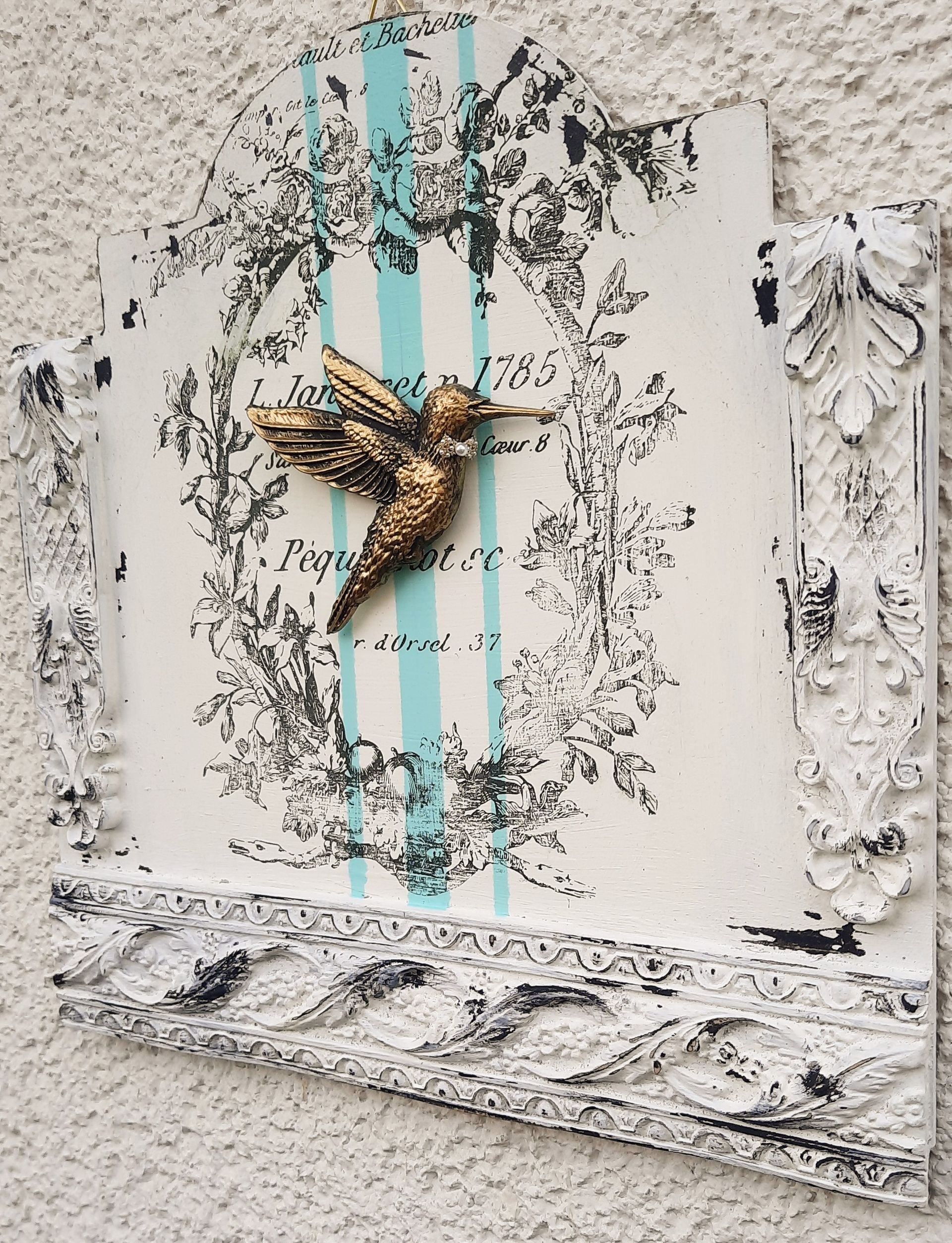 Shabby Look mit goldenem Kolibri - ca.36x36 cm - 25,-€ auf Anfrage