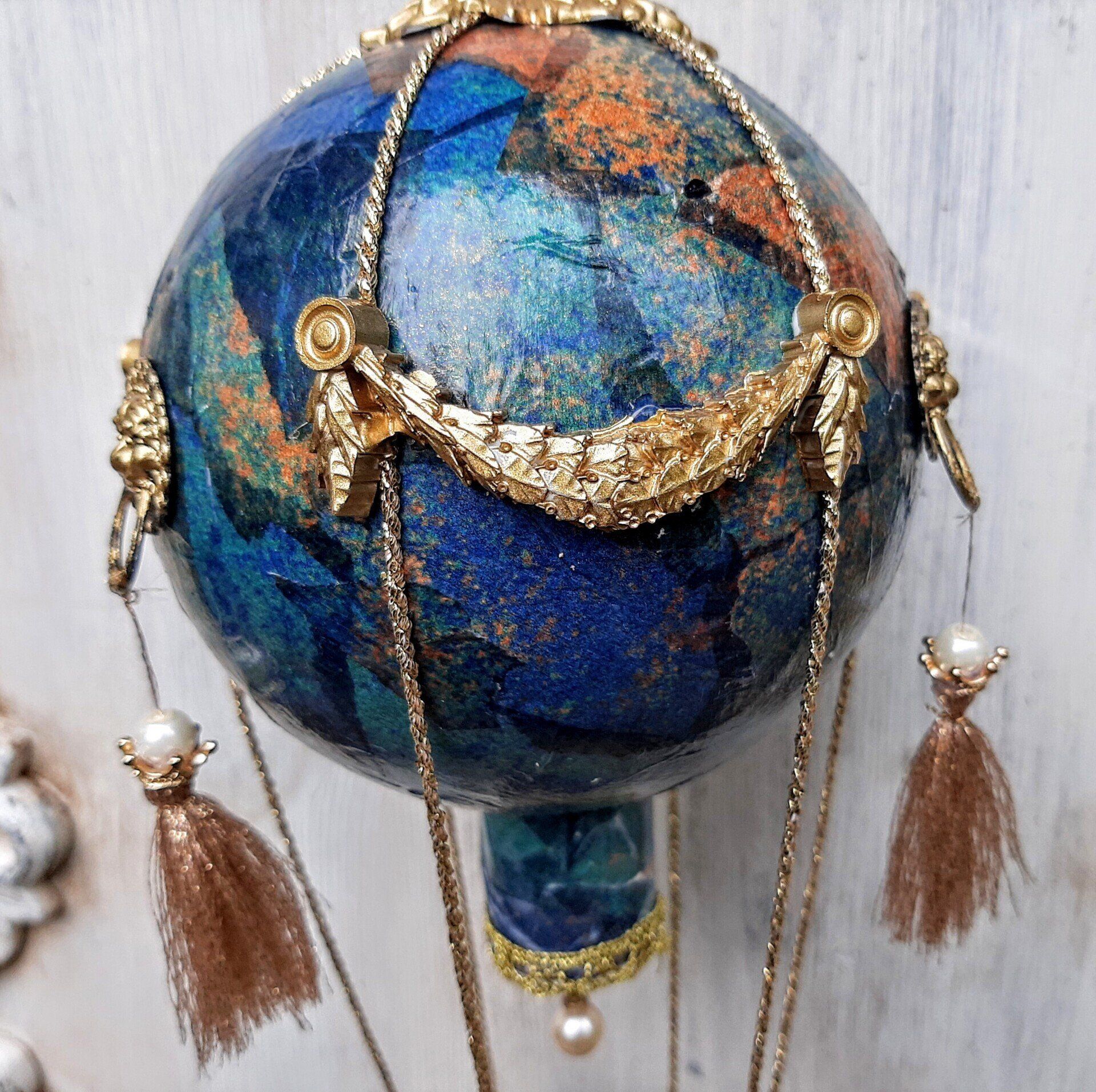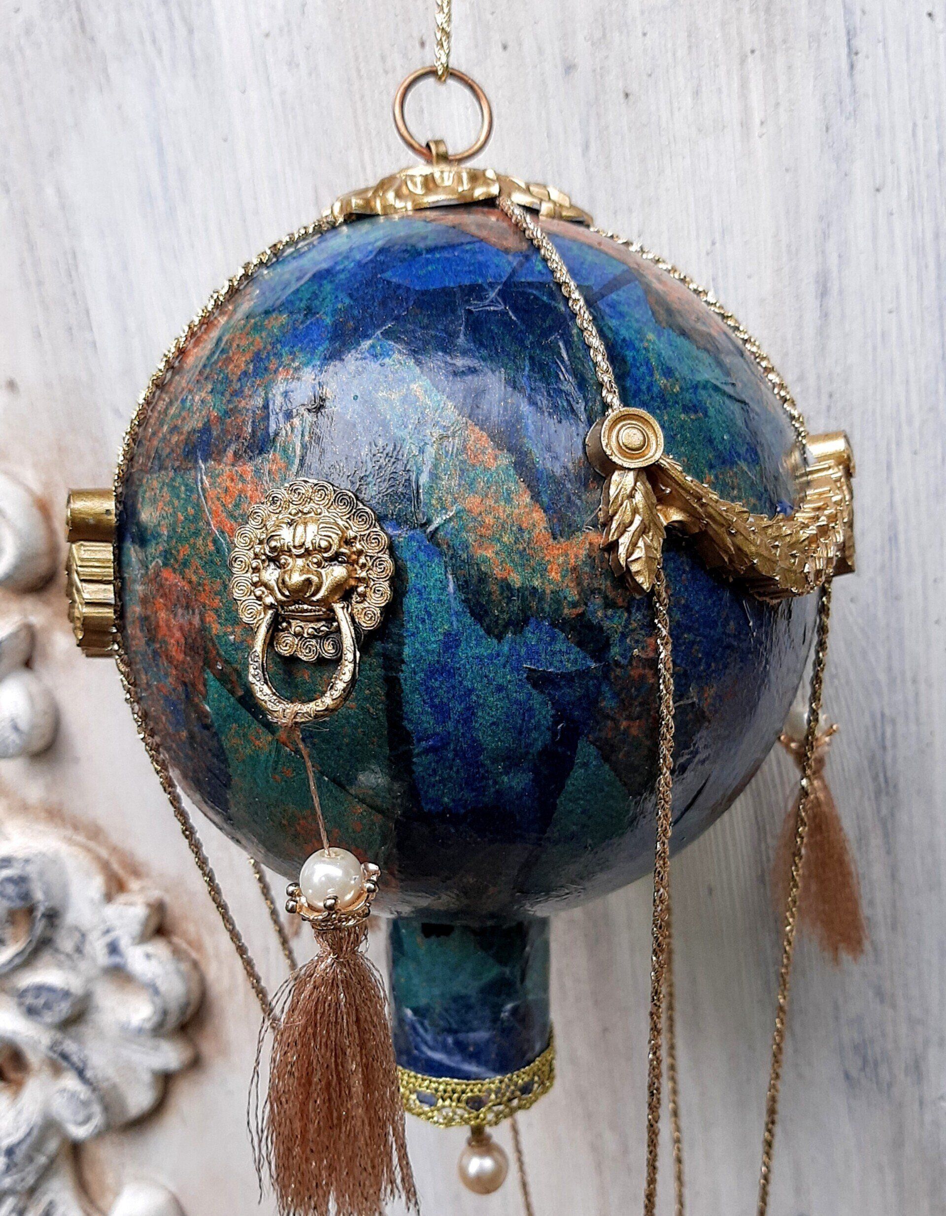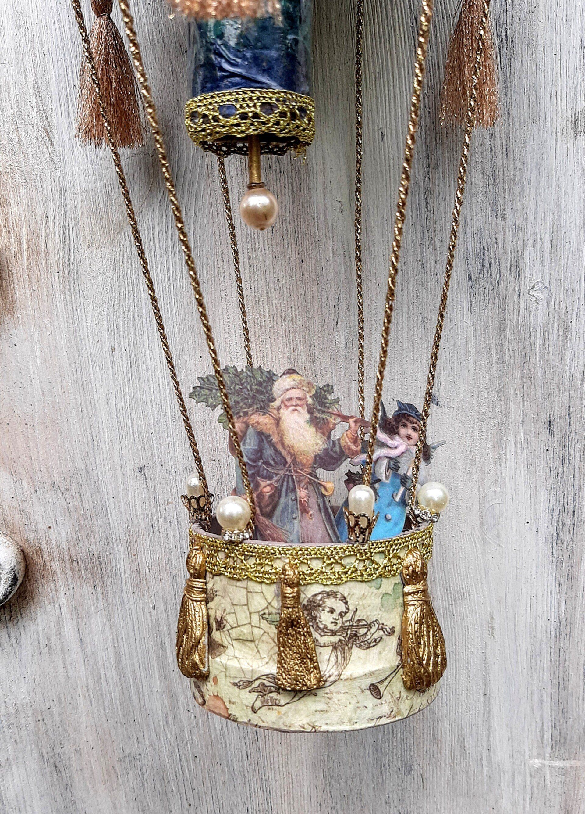 Heißluftballon aus erlesenen Papier gestaltet, komplett ca. 38cm, Ballondurchmesser ca. 14cm ...35,-€ auf Anfrage