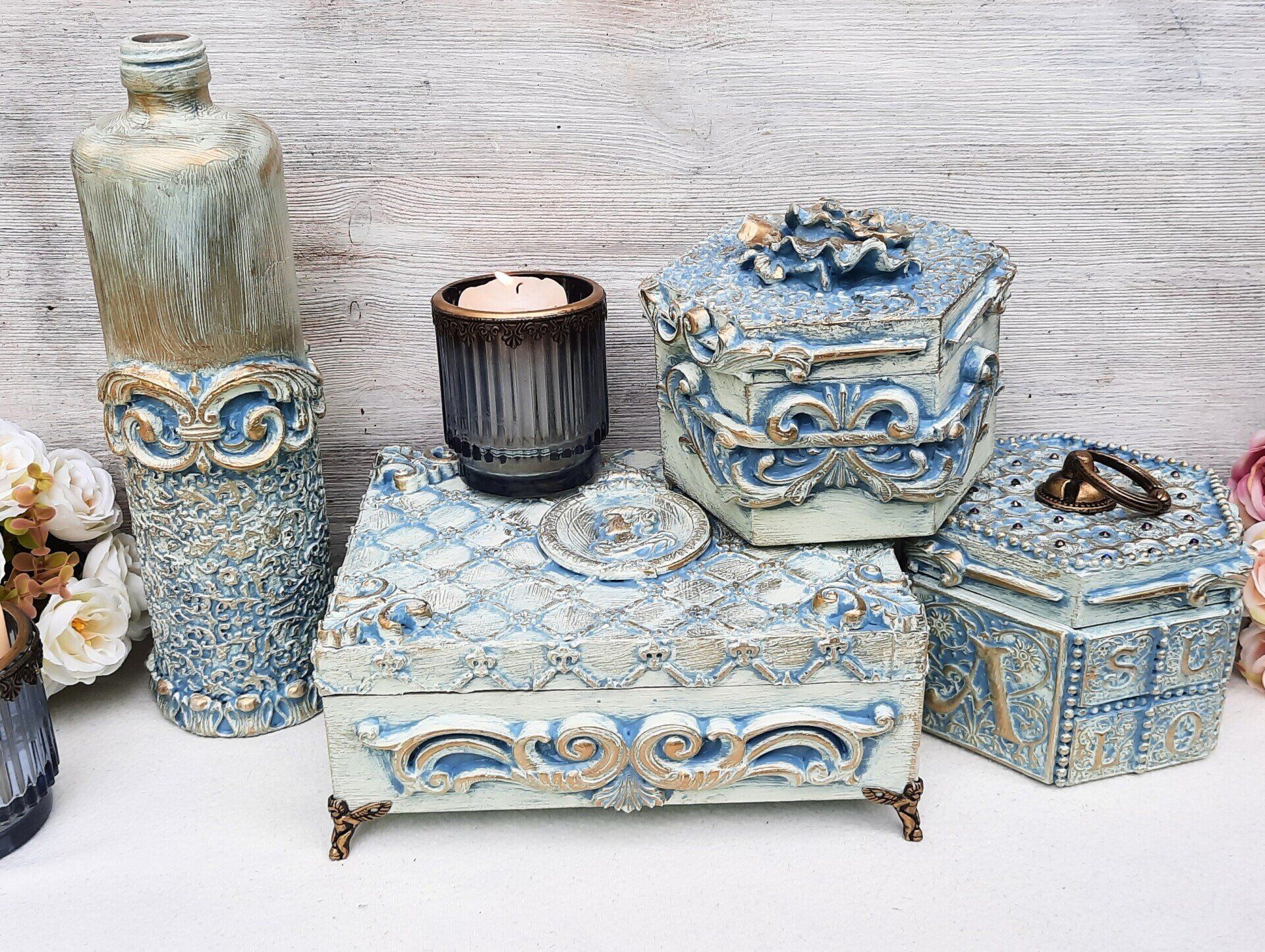 Shabby Dose / Kerzenständer "Royale"