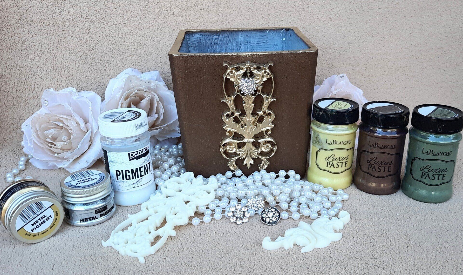 Meine Werke mit DecoupagePapier von "Decoupage Queen", Flexible Wood Bordüren und Ornamente von Dartelasticwood und Materialien von Pentart und LaBlanche. Für einige Werke wird es auch Anleitungsvideos geben.