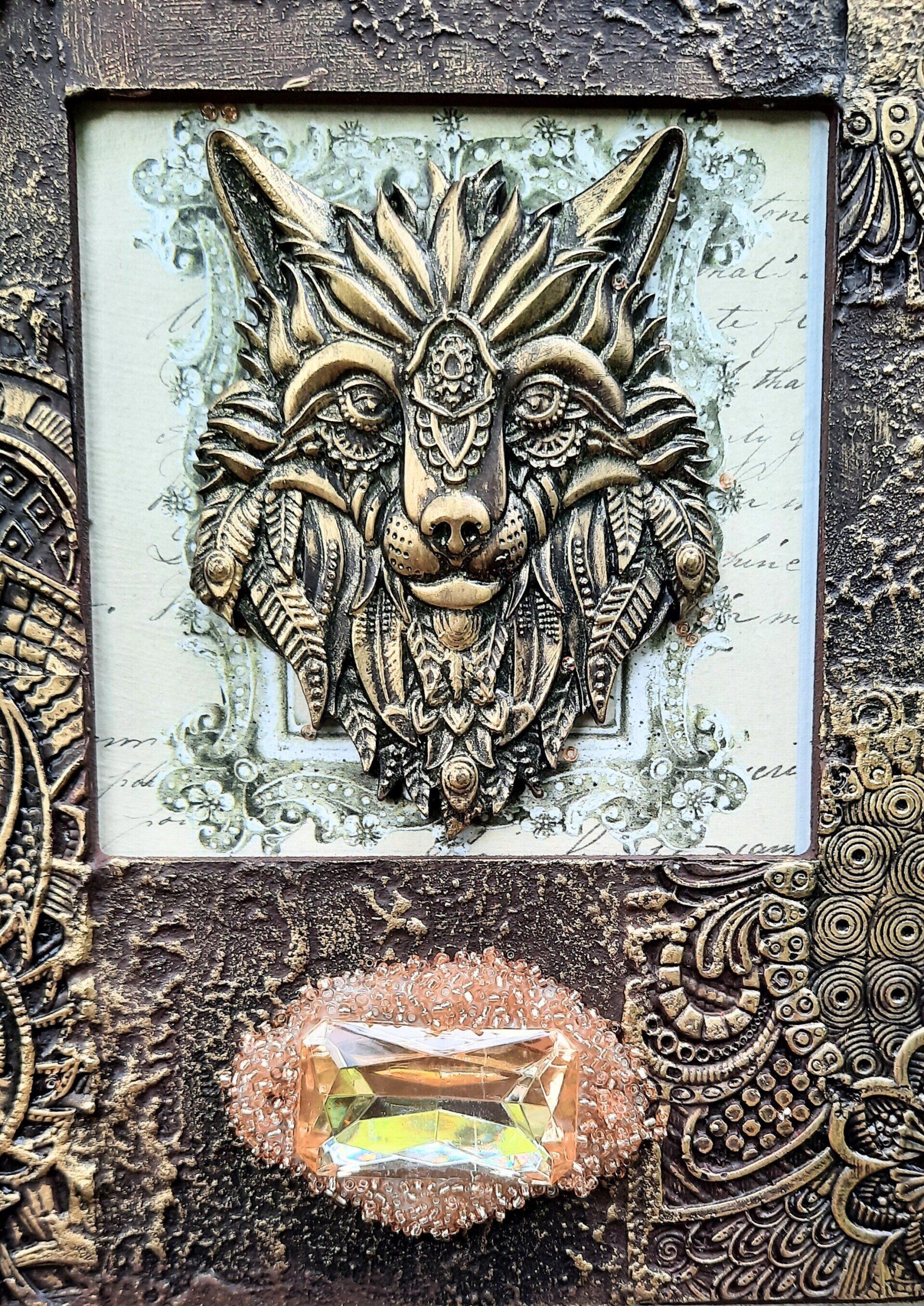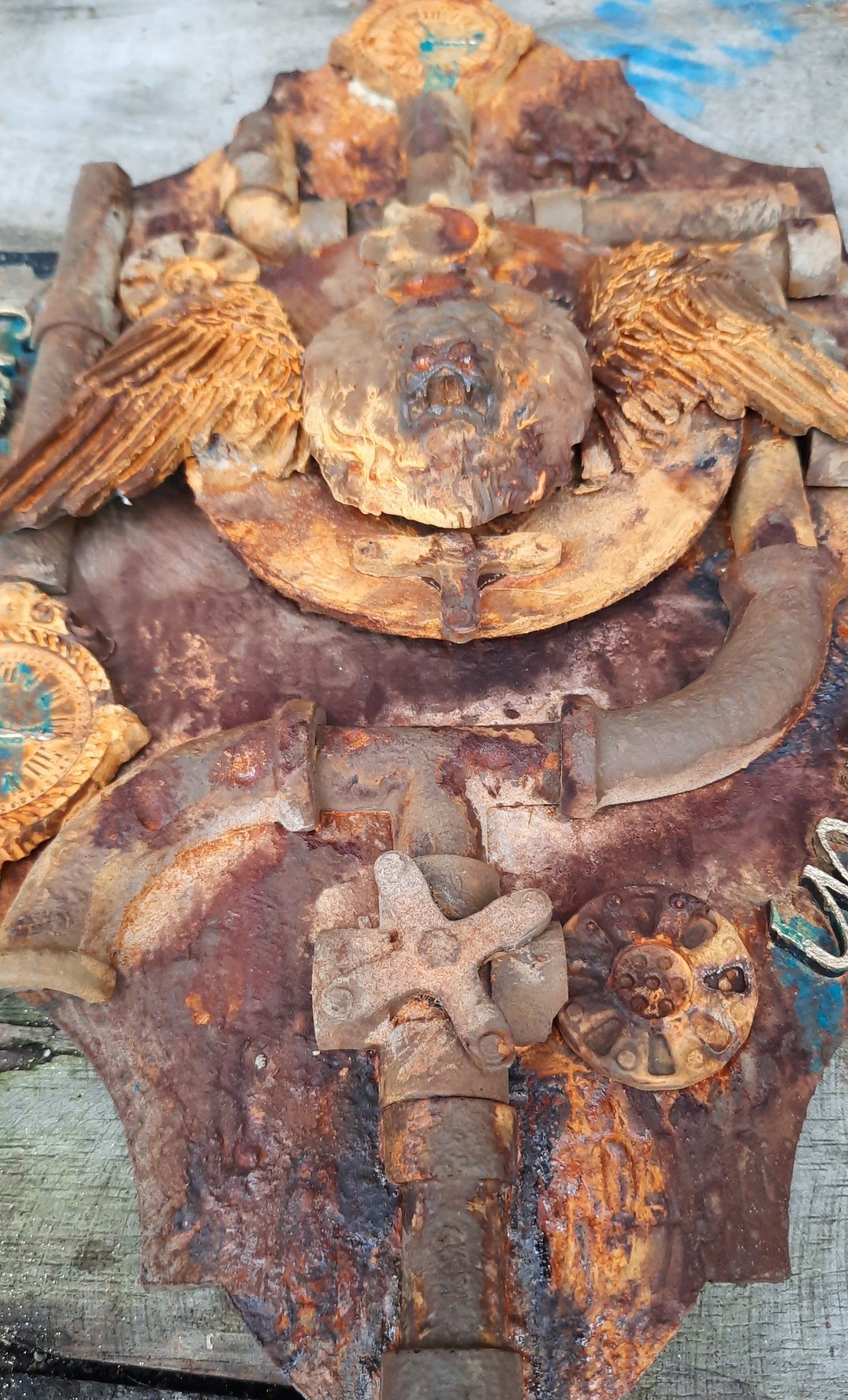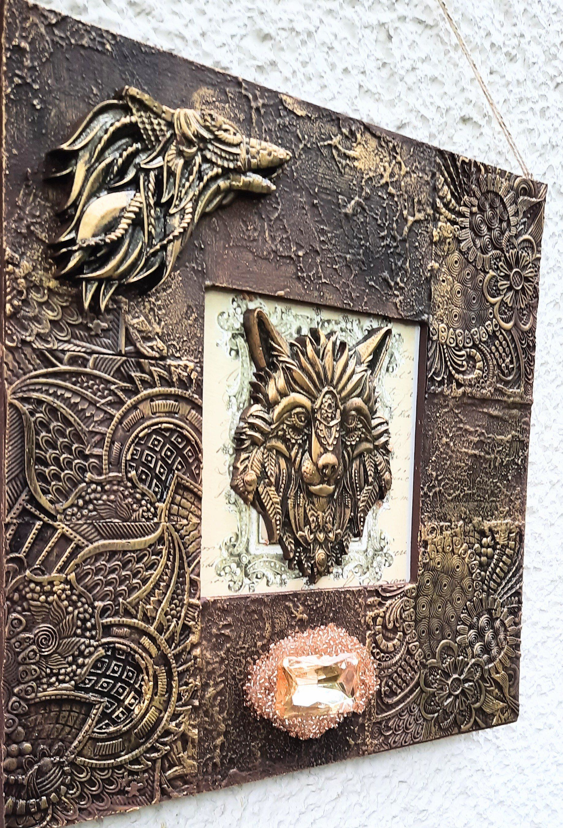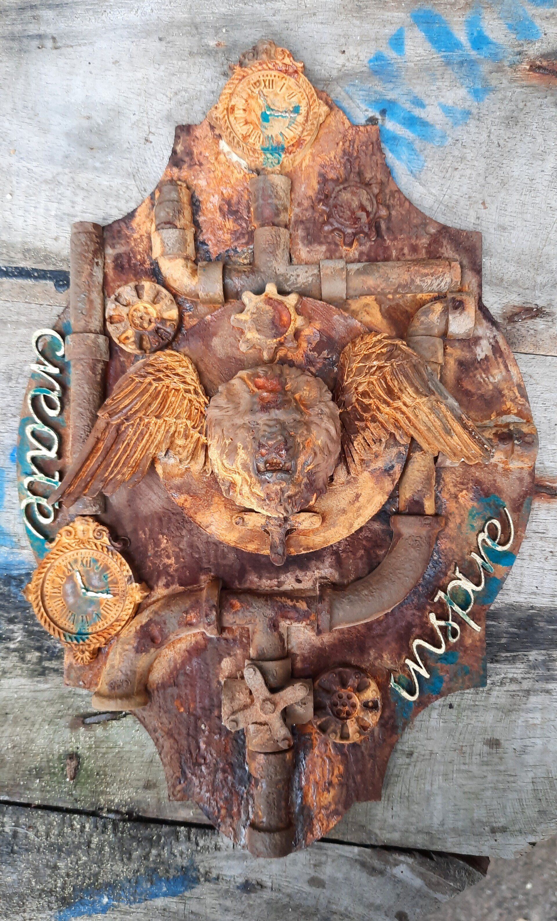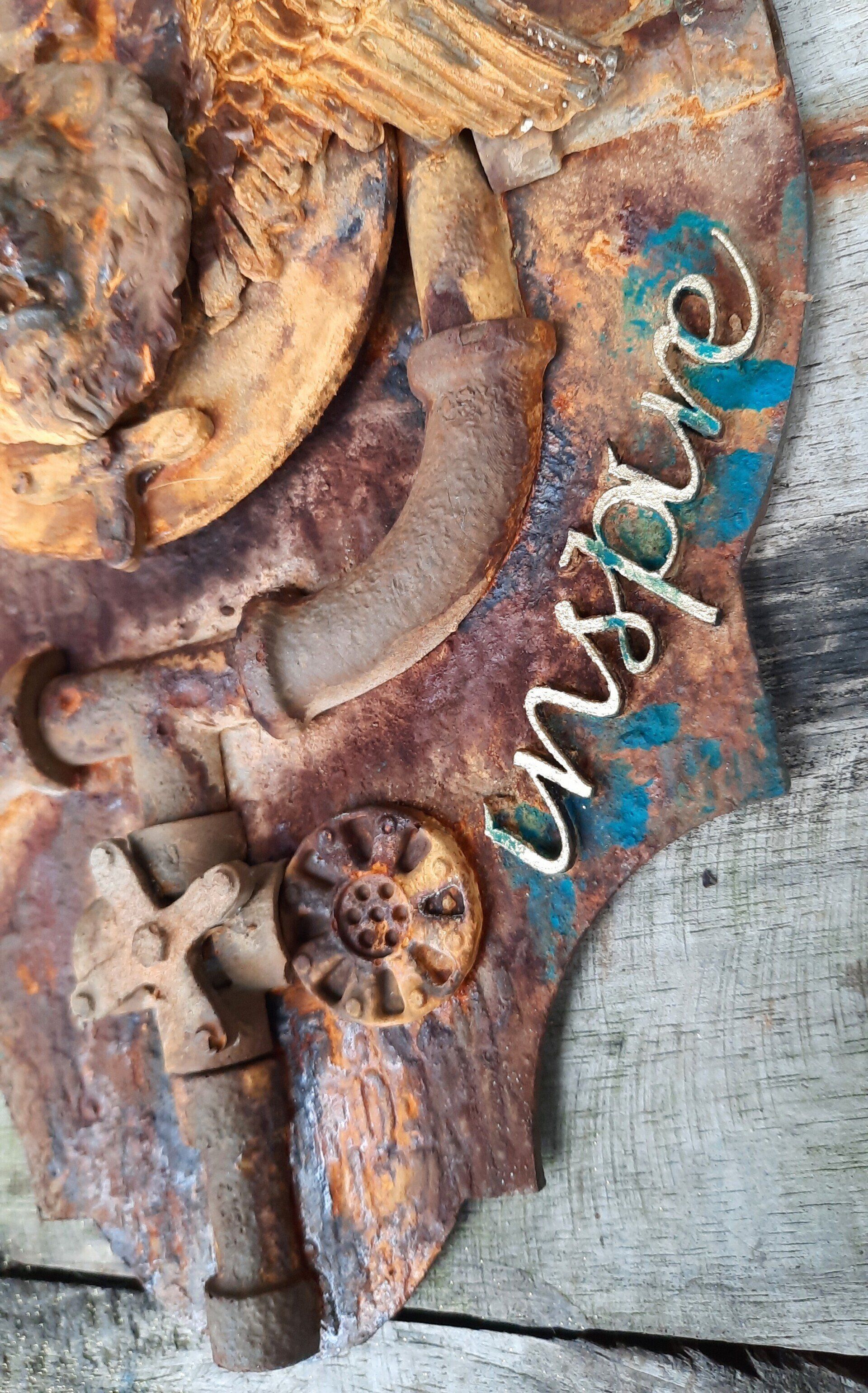 MixedMedia auf MDF, Steampunk, rostiger Löwenkopf mit Flügeln, ca. 32x22cm - 39,-€ auf Anfrage