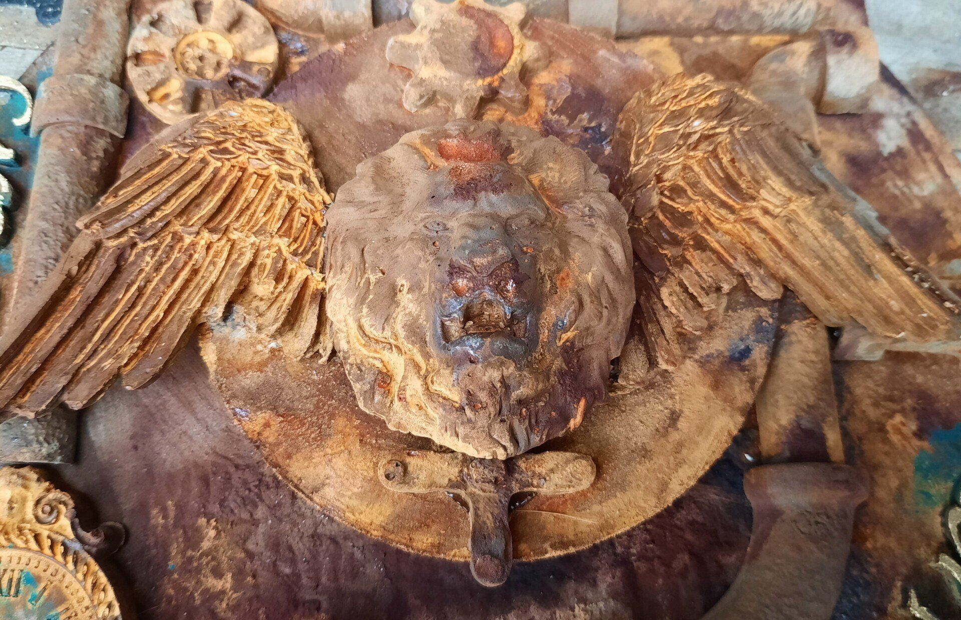 Wie ein Relikt aus einem alten Schloß oder Herrenhaus, verwittert und herrlich alt - MDF ca. 35x33cm - 25,-€ auf Anfrage