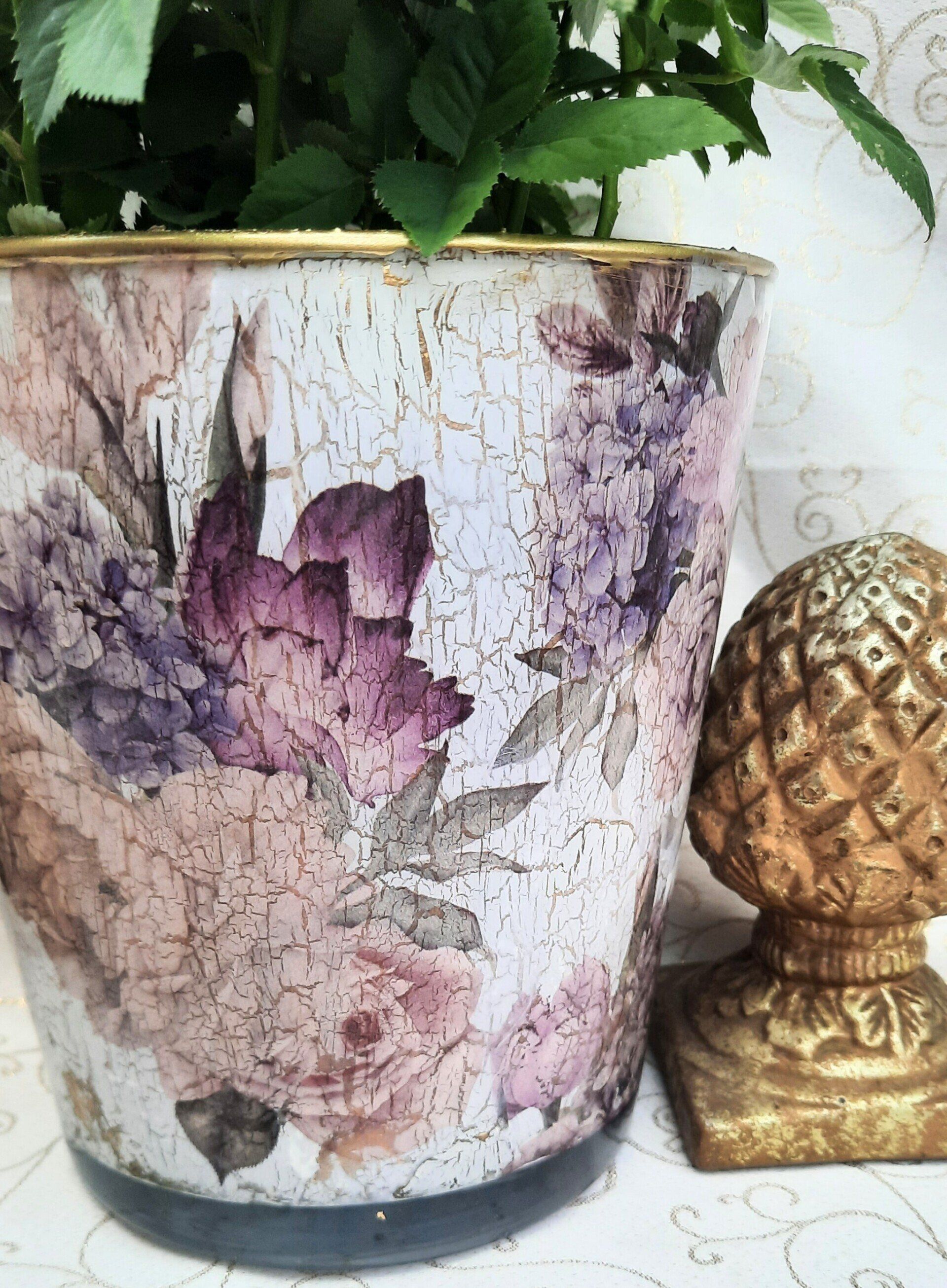 Metall-Blumentopf himmlisch umgestaltet - vorher-nachher