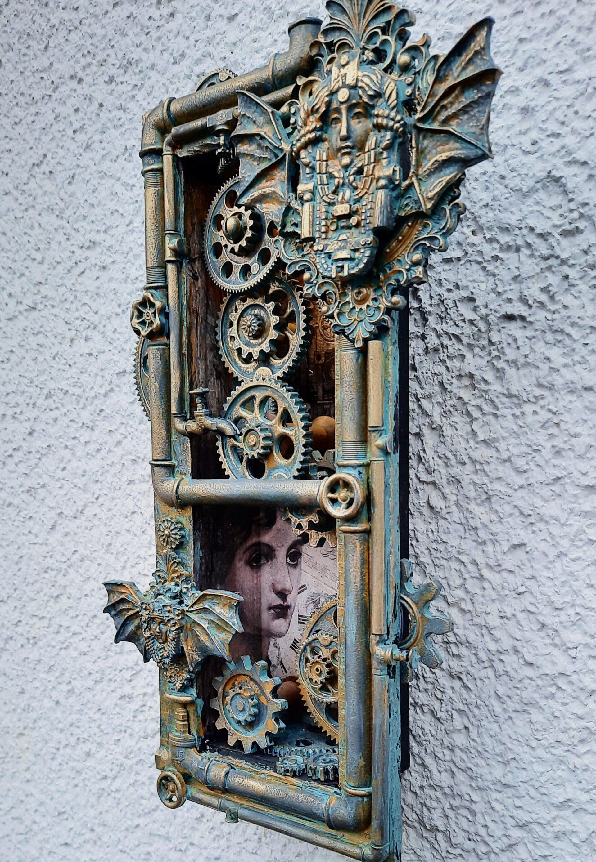 Steampunk Schild, ca. 20cm, aufwändig gestaltet mit erlesenen Farben und Wachsen....17,50€ auf Anfrage